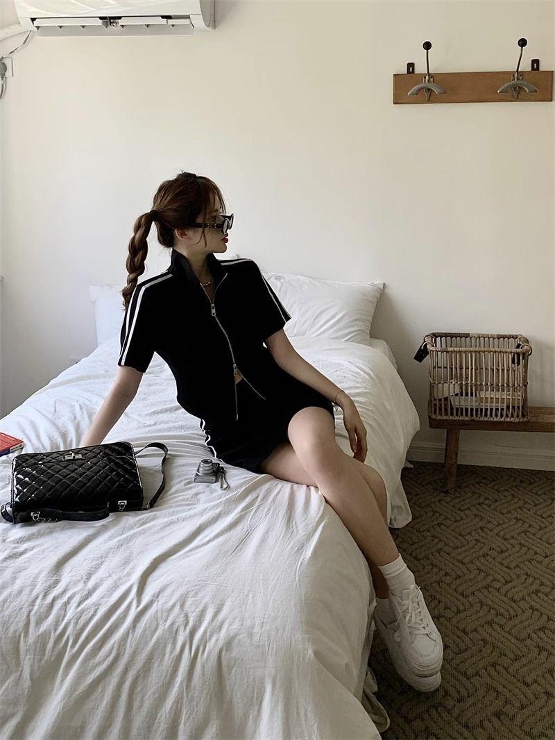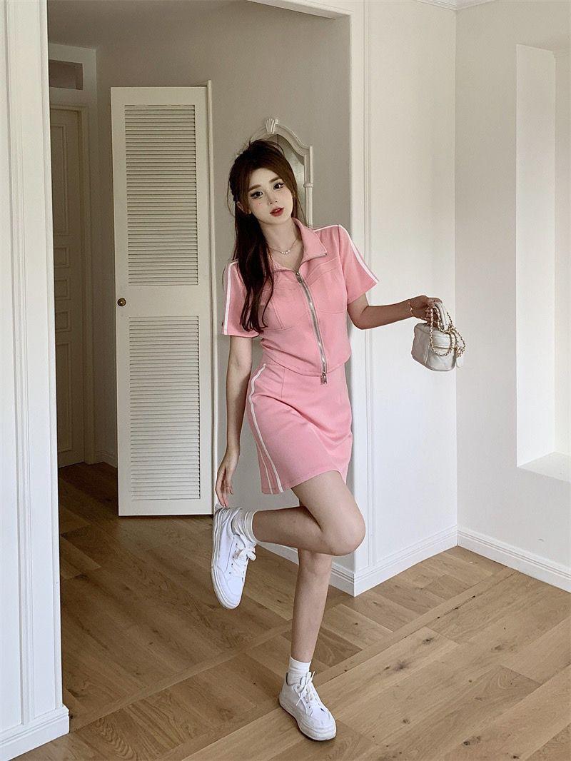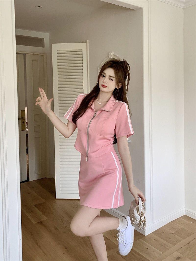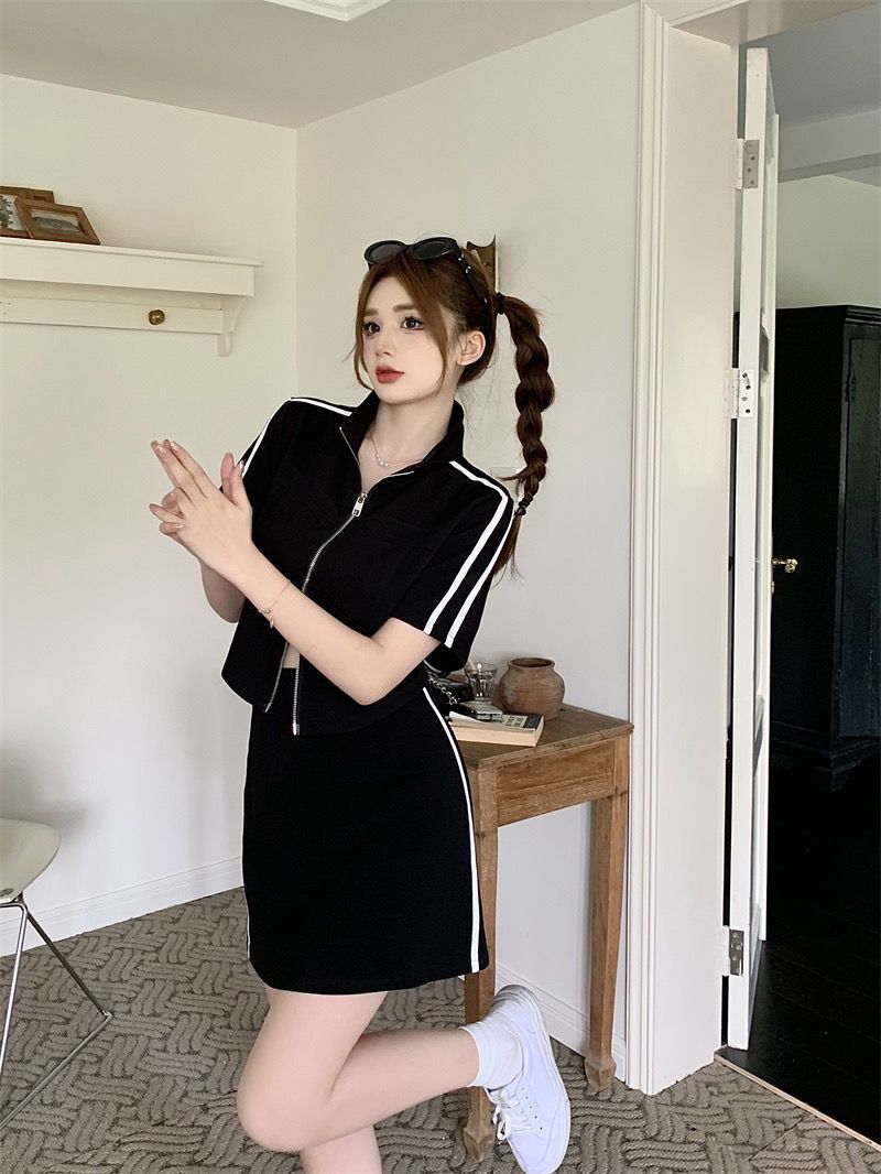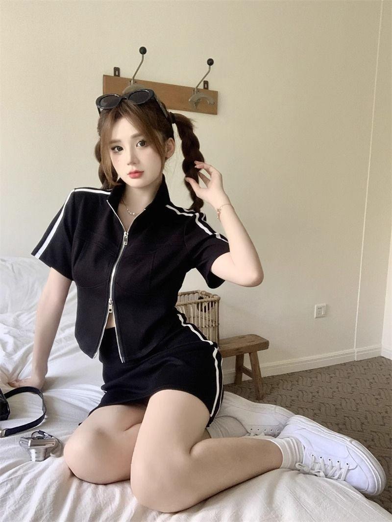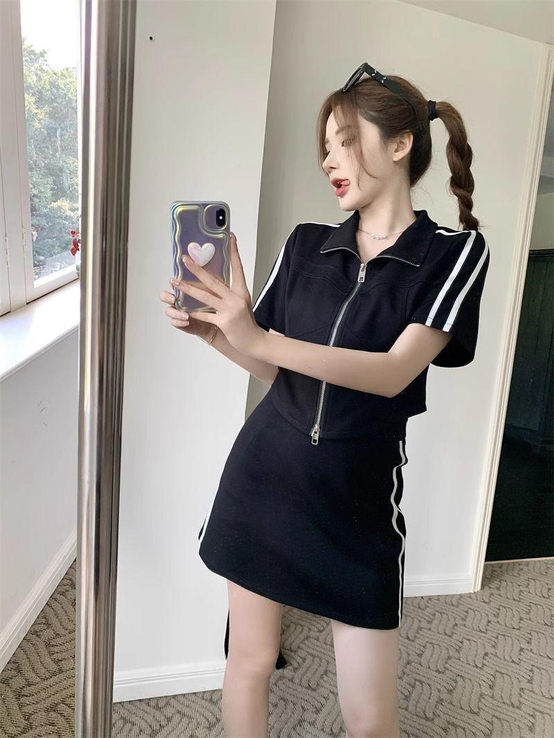 2025 Nuevo Verano Nuevo Estilo Cremallera Estilo Coreano Sentido del Diseño Falda Corta Moda Casual Top Dos Piezas Trendy