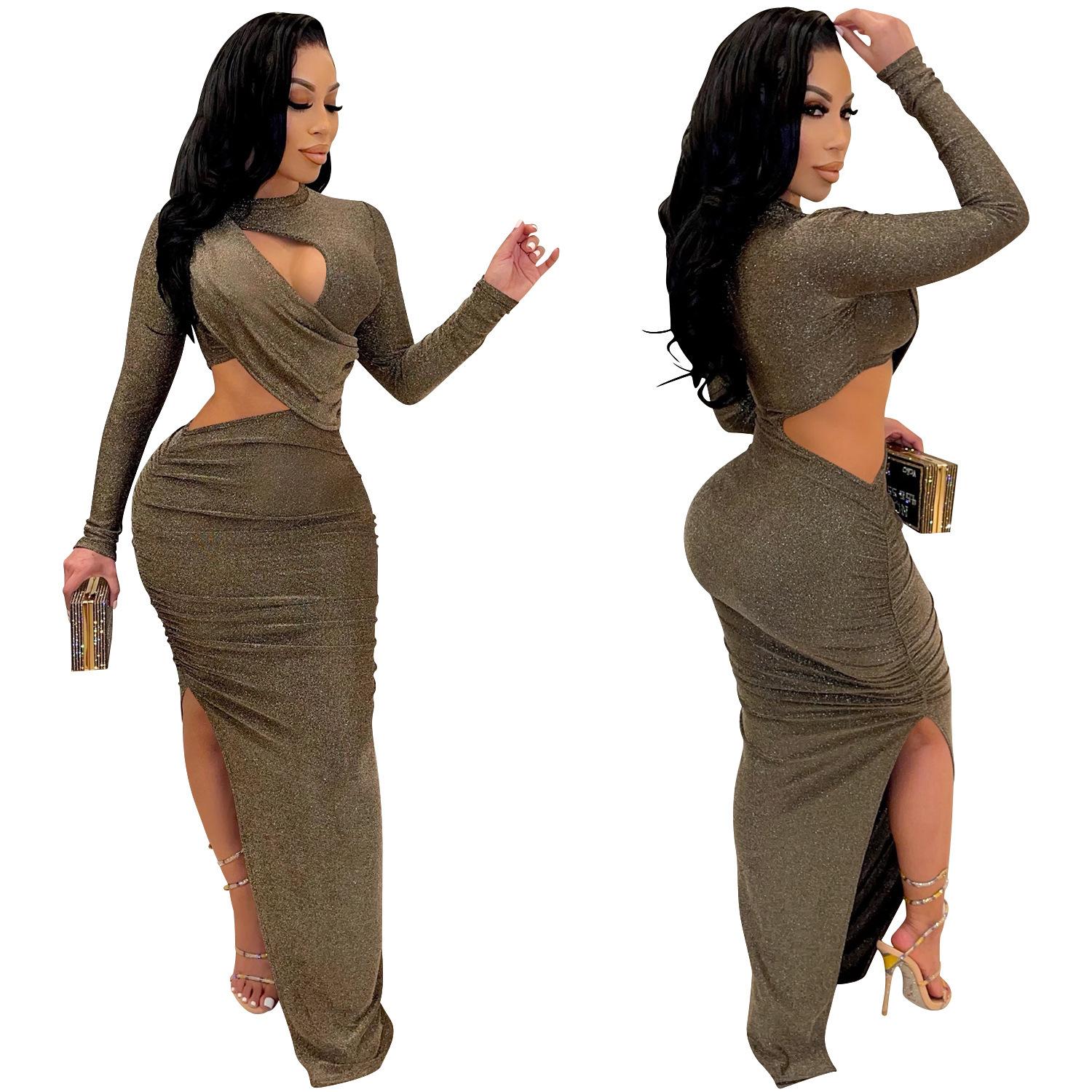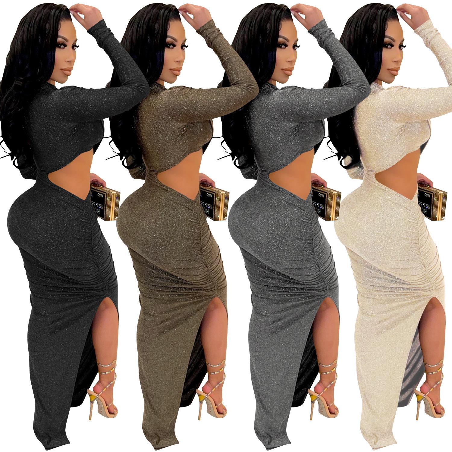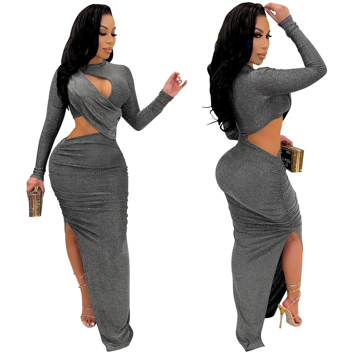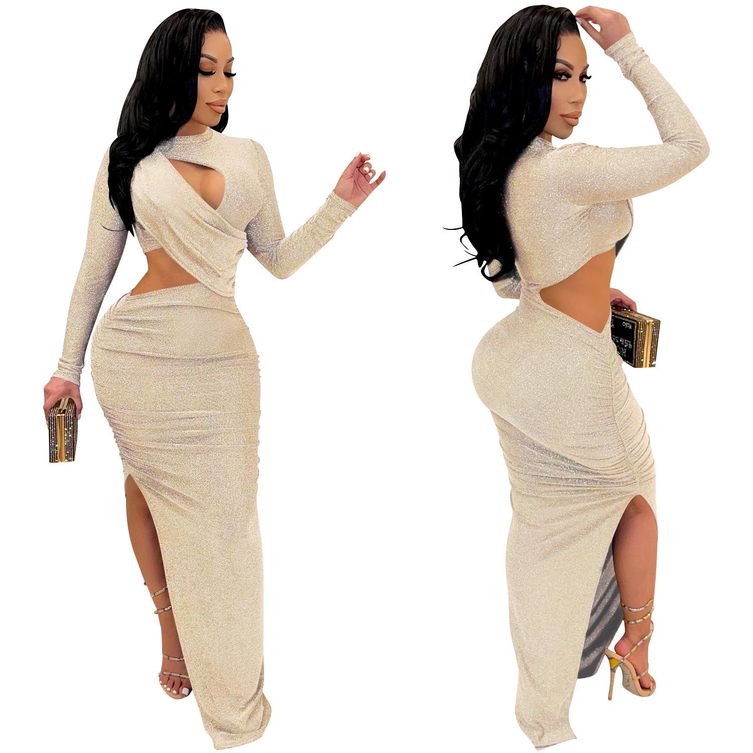 C5550 verano nuevo europeo y americano Amazon transfronterizo moda manga larga sexy hueco dividido vestido vestido mujer