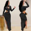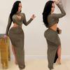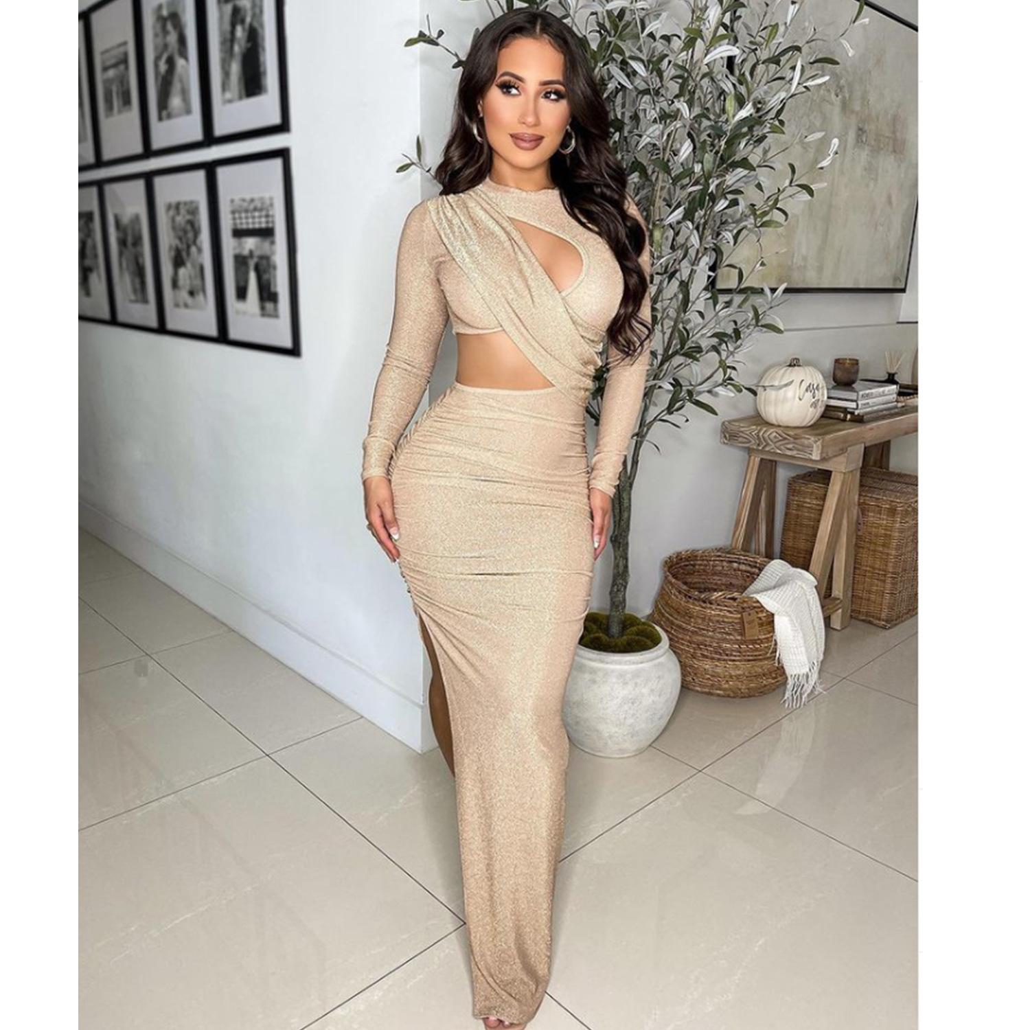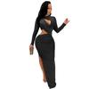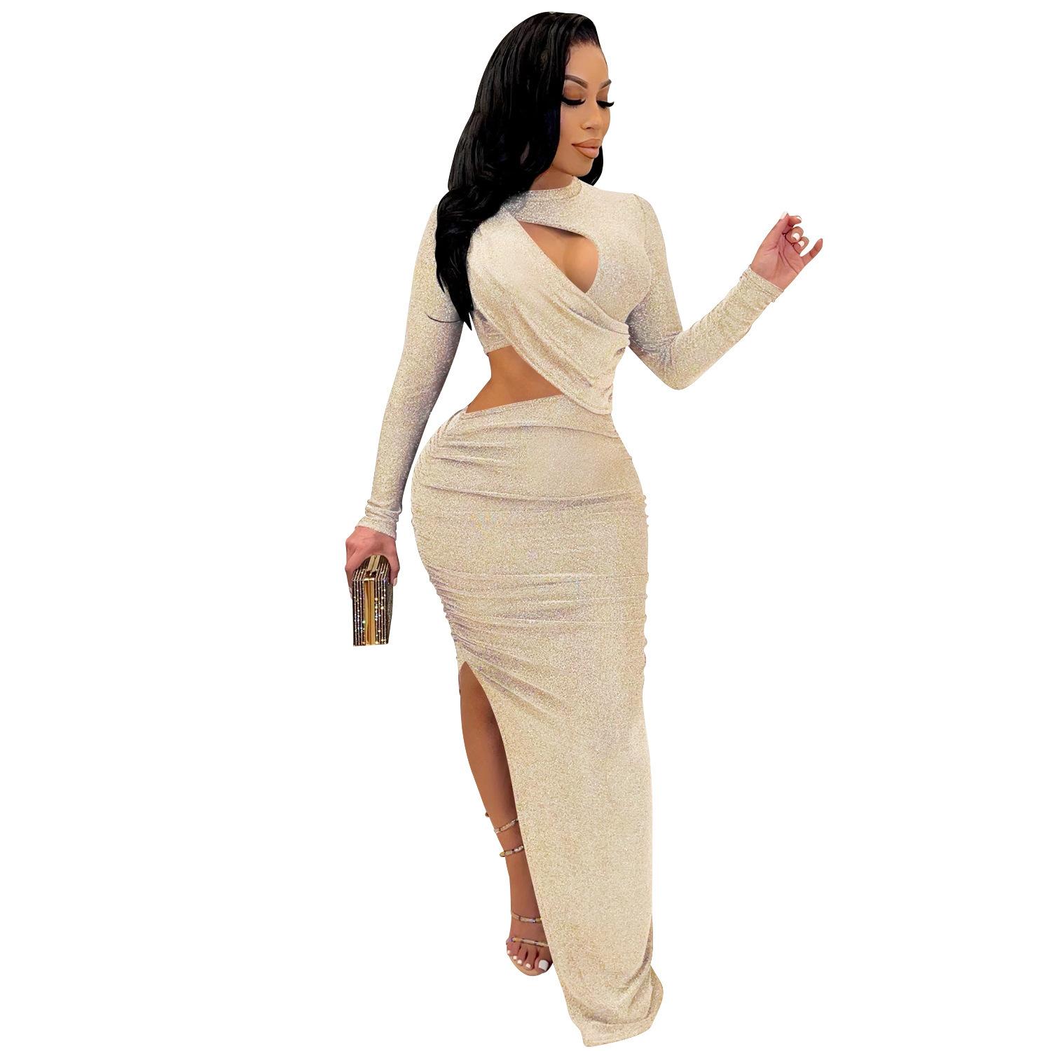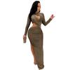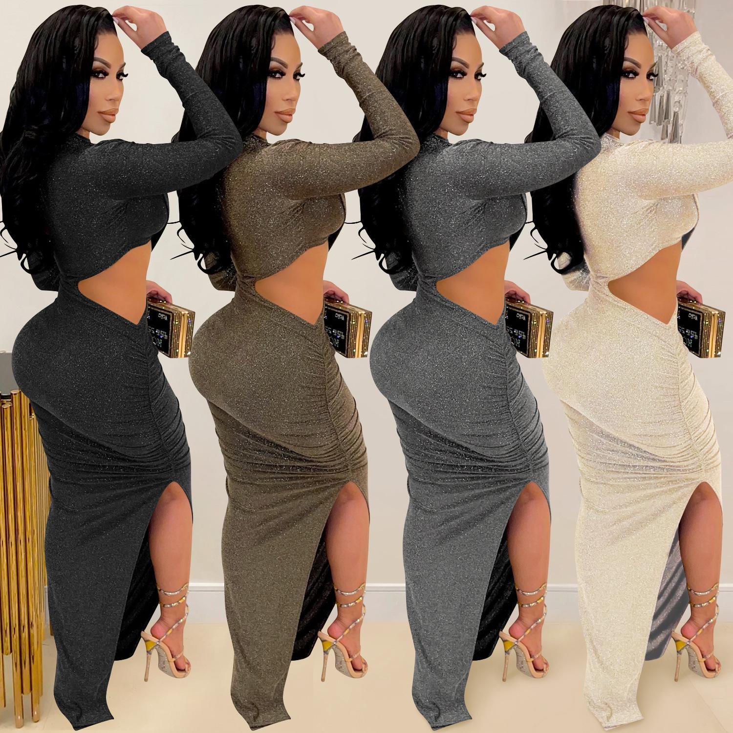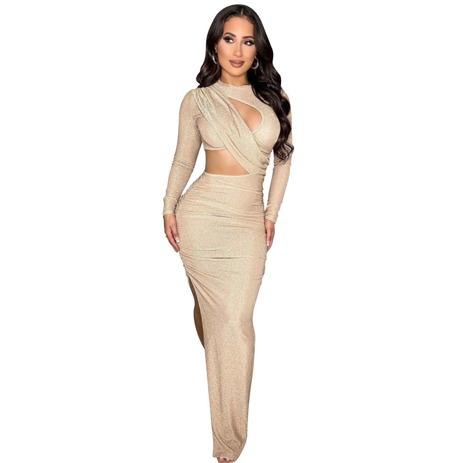C5550 verano nuevo europeo y americano Amazon transfronterizo moda manga larga sexy hueco dividido vestido vestido mujer