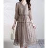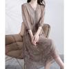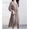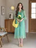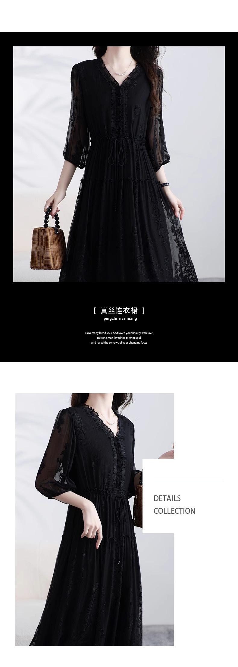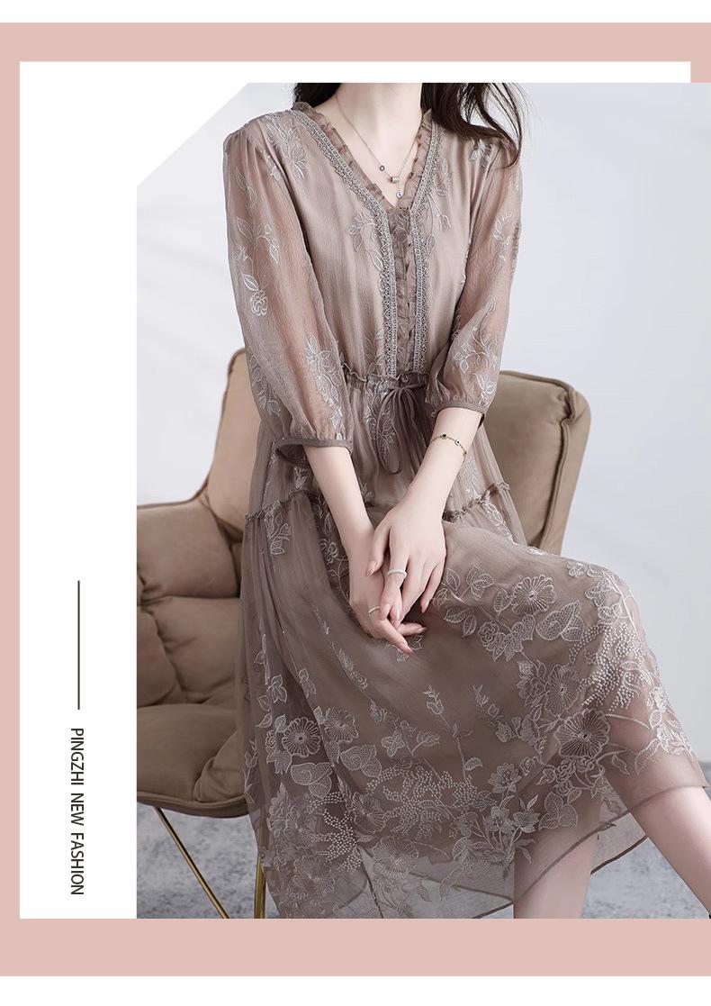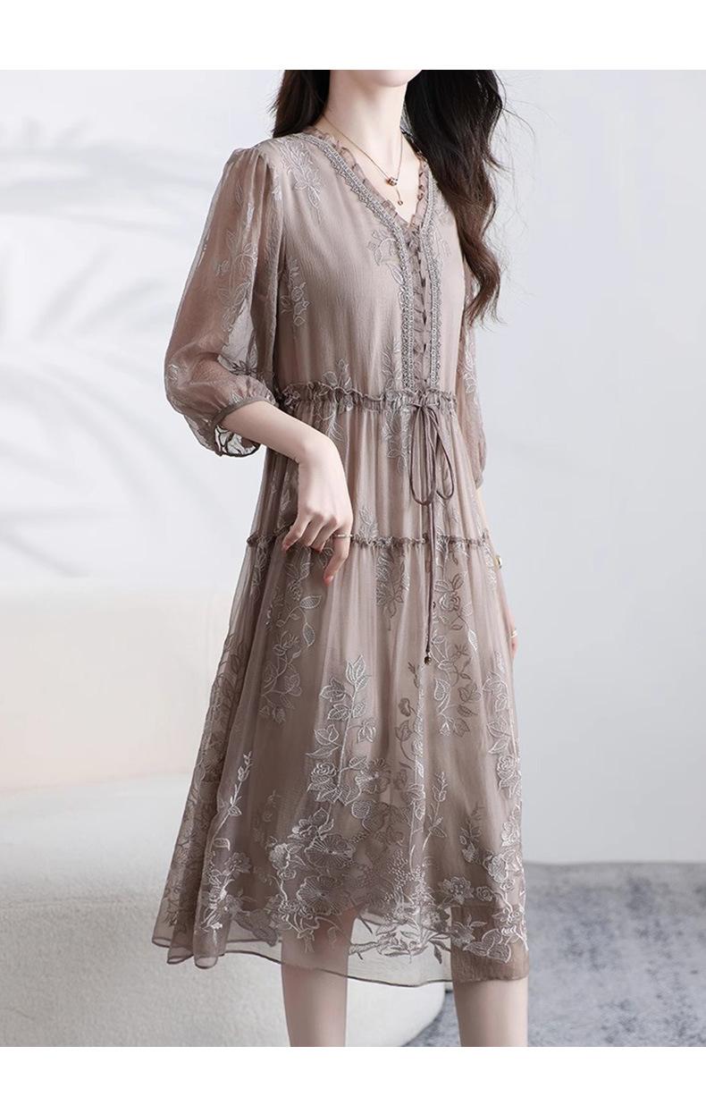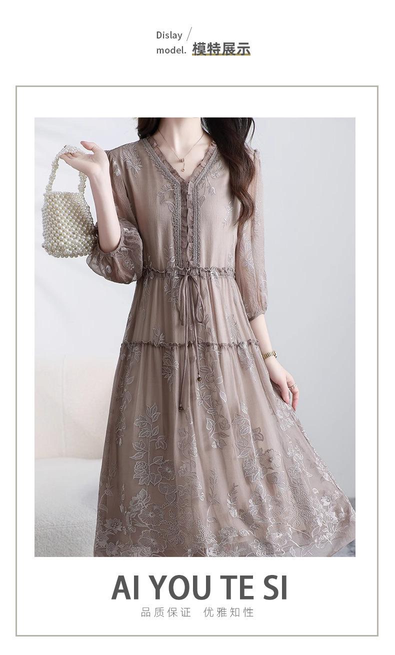 Vestido de Seda Bordado Elegante Seda de Morera Estilo Francés Falda Midi Verano 2025 Cordones Adelgazante Ropa de Mujer