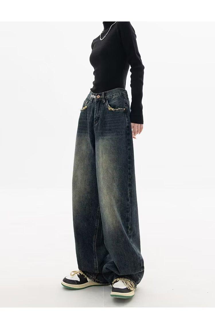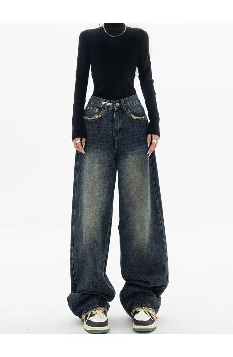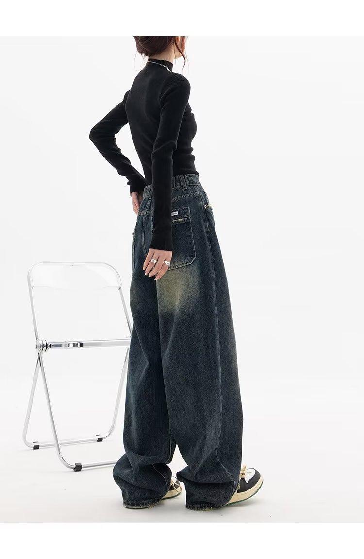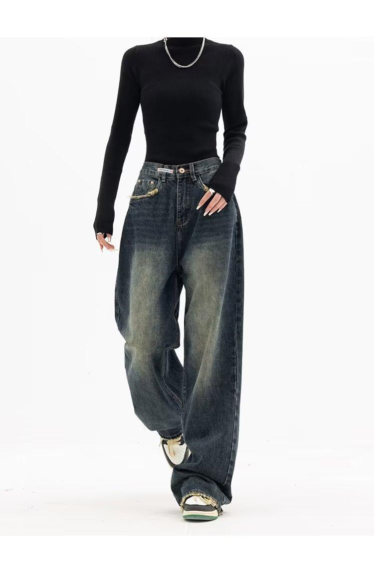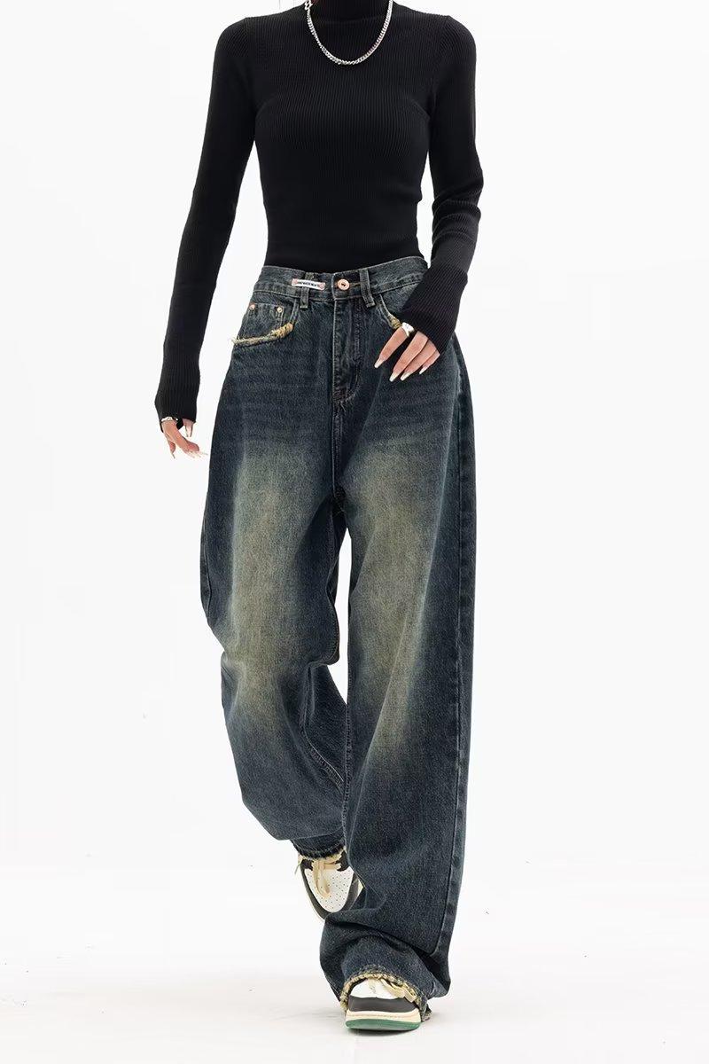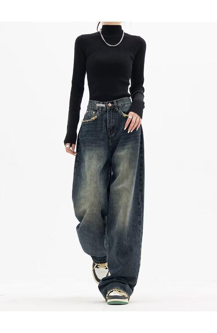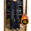 Otoño e Invierno Talla Pequeña para Mujer Talla Grande Pierna Recta Adelgazante Cintura Alta Cuerpo Pera Pantalones Largos de Pierna Ancha
