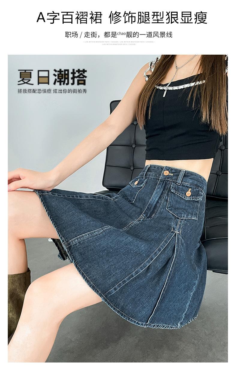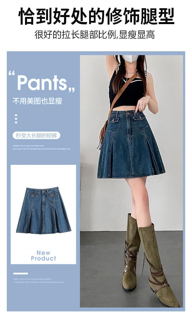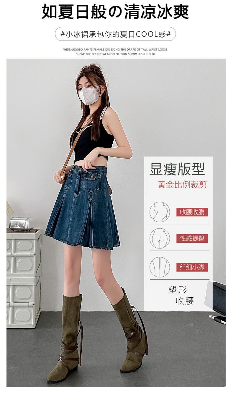 Compra Falda plisada de mezclilla vintage para mujer Verano 2024 Nueva Cintura alta Cubre caderas Adelgazante Antidesgarro Ligera Línea A Falda corta Pantalones al por mayor en Joom.pro