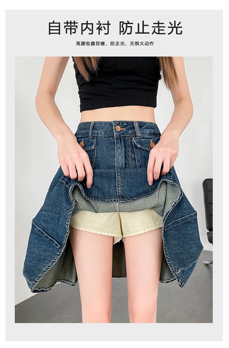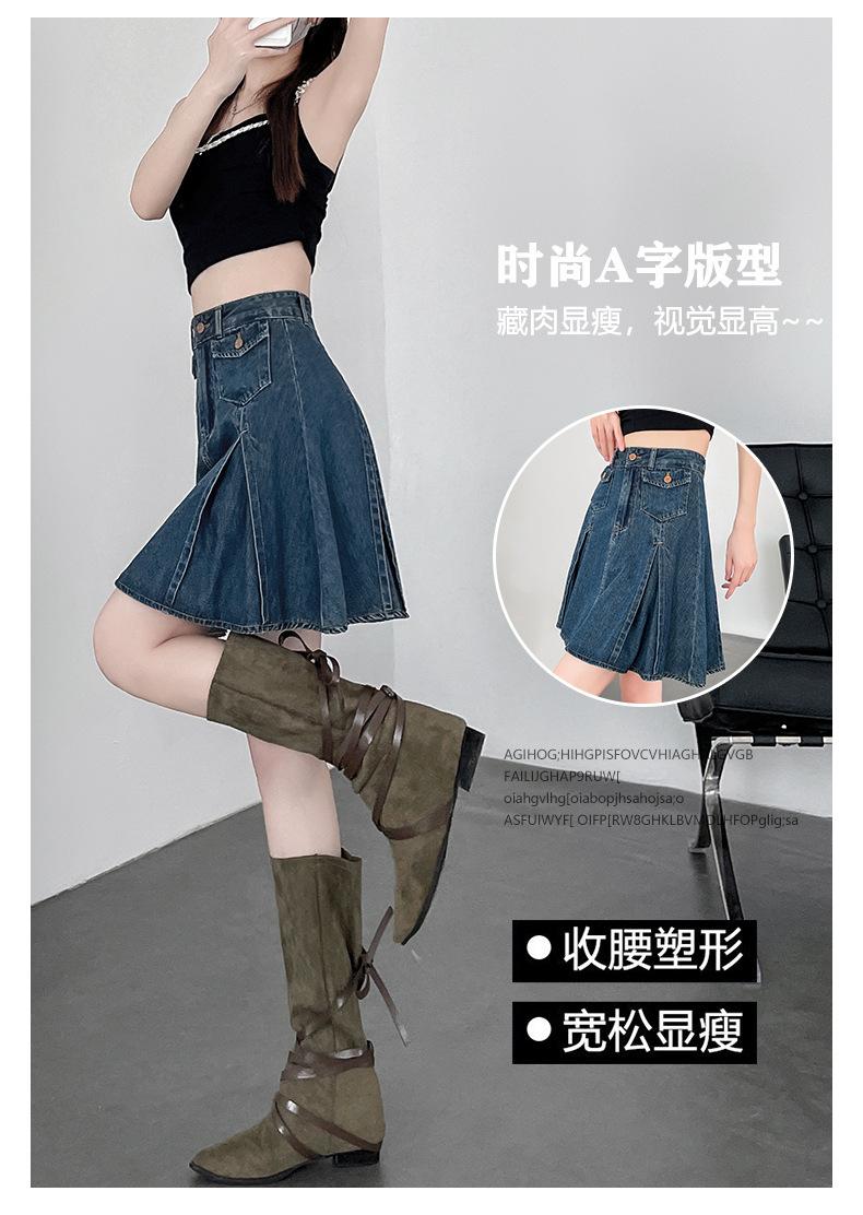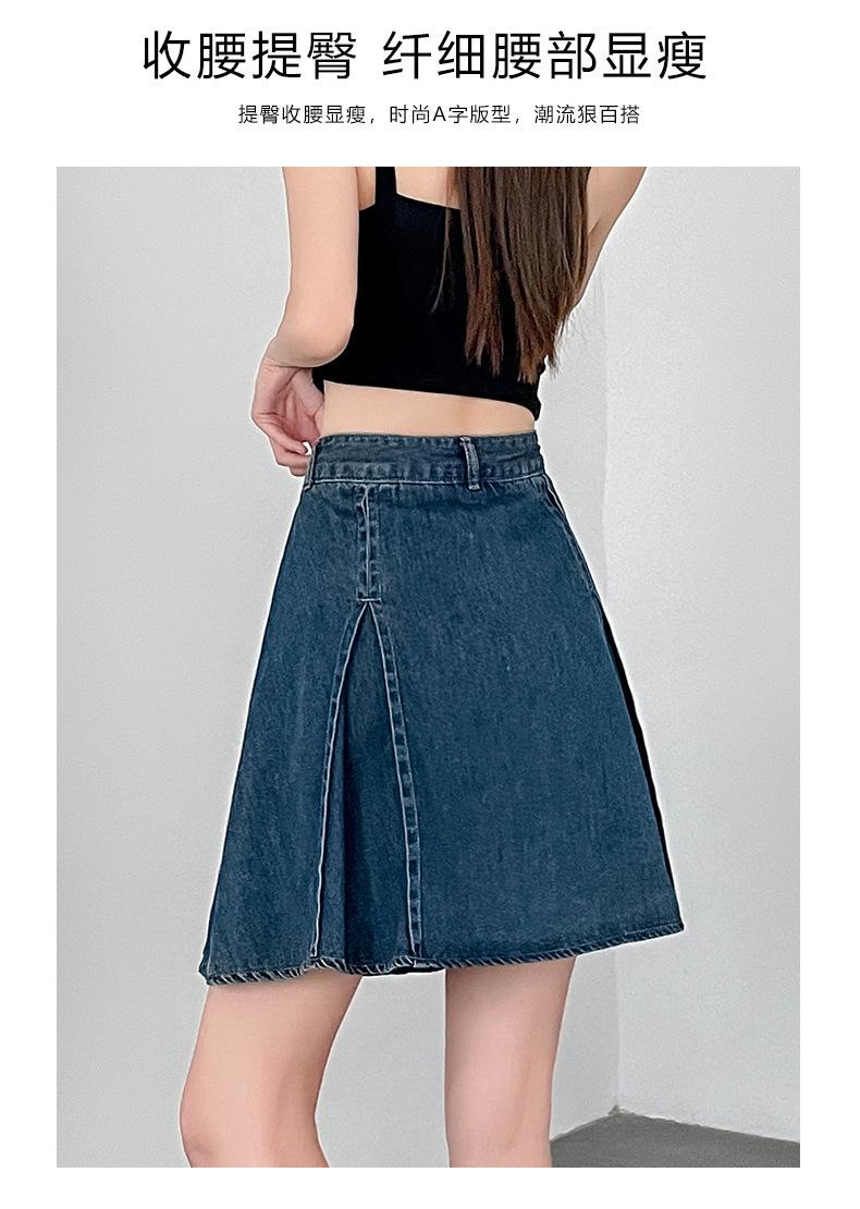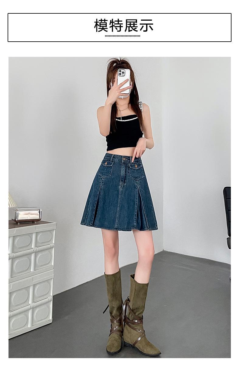 Compra Falda plisada de mezclilla vintage para mujer Verano 2024 Nueva Cintura alta Cubre caderas Adelgazante Antidesgarro Ligera Línea A Falda corta Pantalones al por mayor en Joom.pro