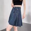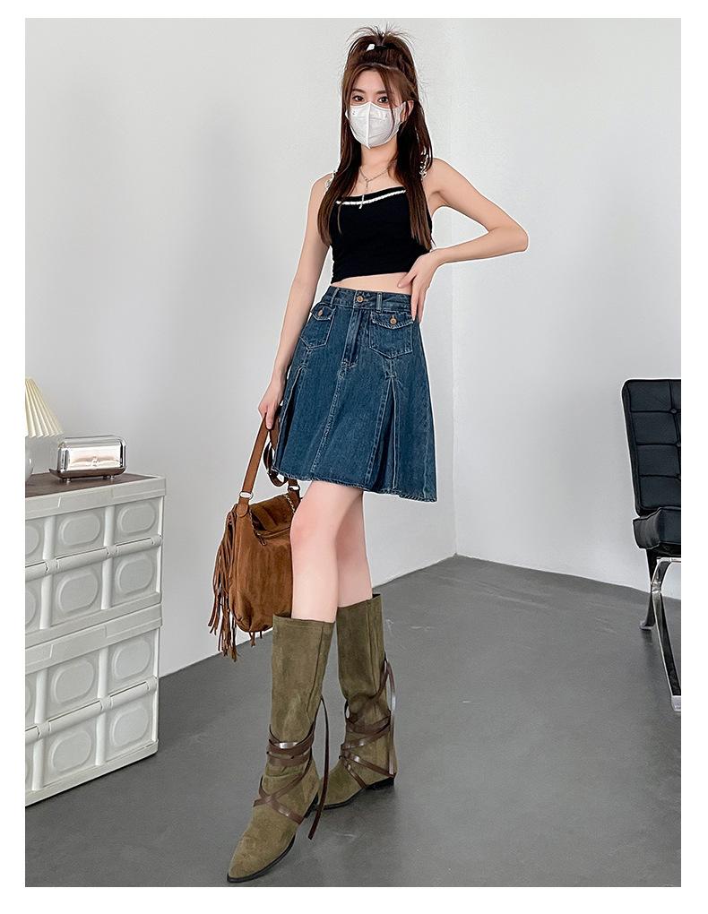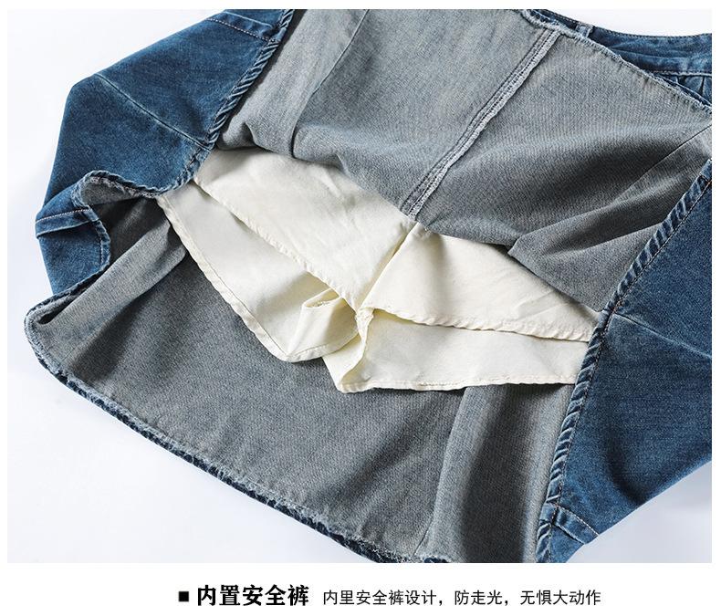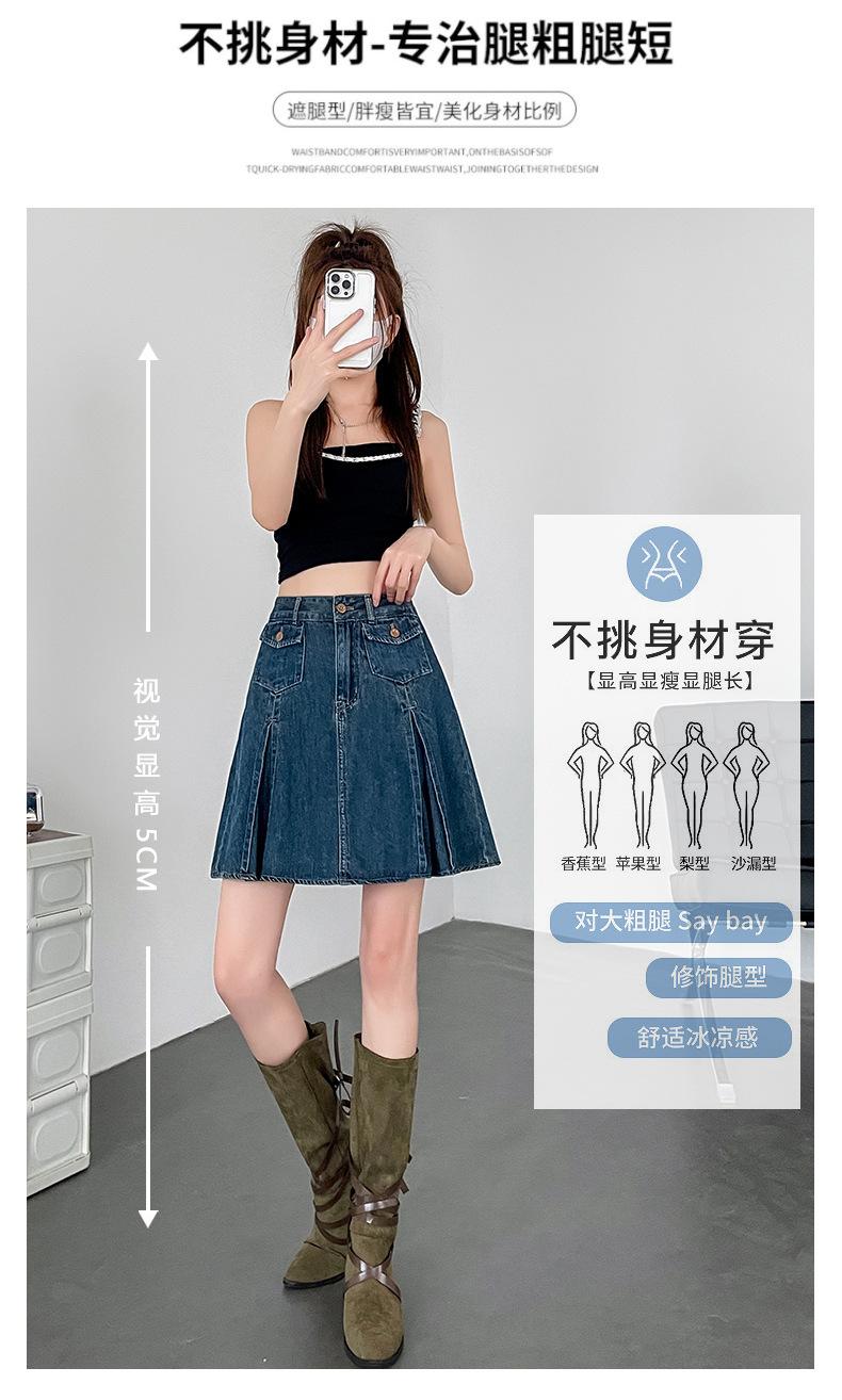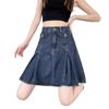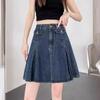 Falda plisada de mezclilla vintage para mujer Verano 2024 Nueva Cintura alta Cubre caderas Adelgazante Antidesgarro Ligera Línea A Falda corta Pantalones