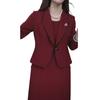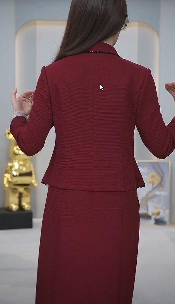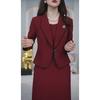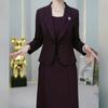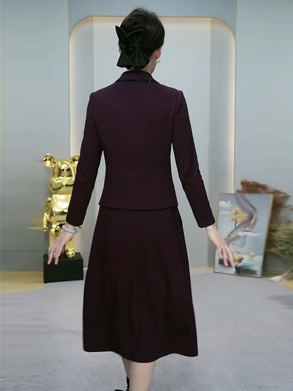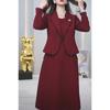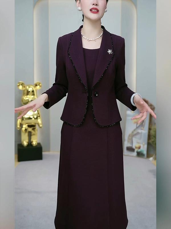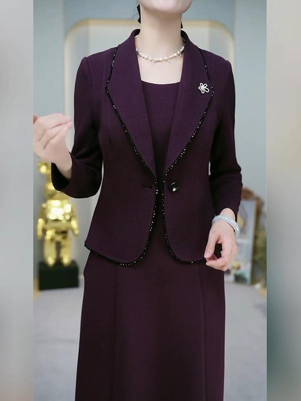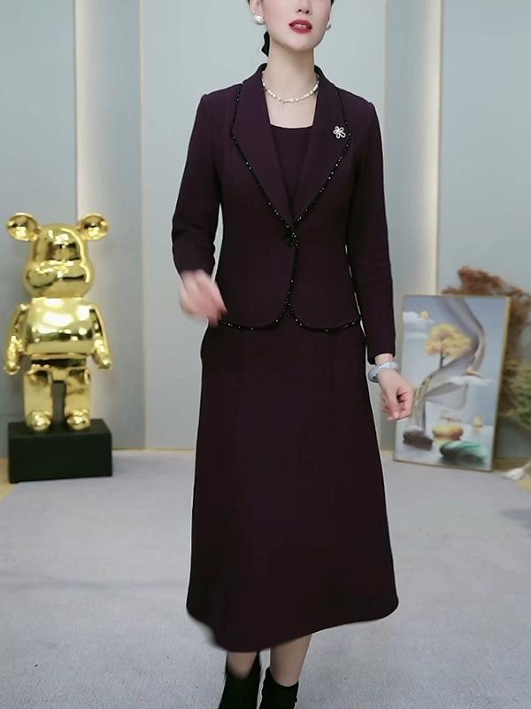 Vestido tipo traje de dos piezas falsas de gofre, nuevo de otoño, rojo, para suegra, que cubre el vientre, con mangas largas