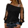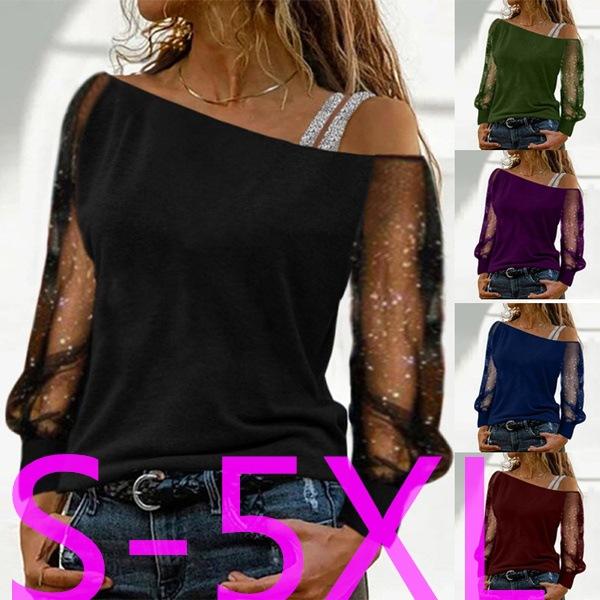 2024 Amazon Wish Transfronterizo Primavera y Verano Moda Europea y Americana para Mujer Manga Larga Cuello de un Hombro Top Camiseta de Color Puro