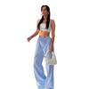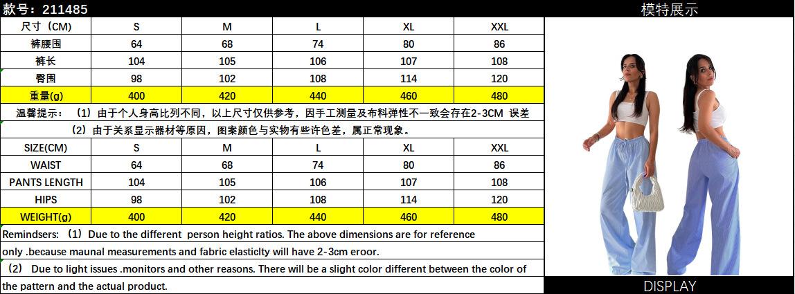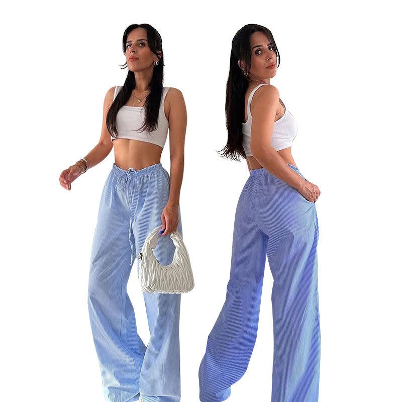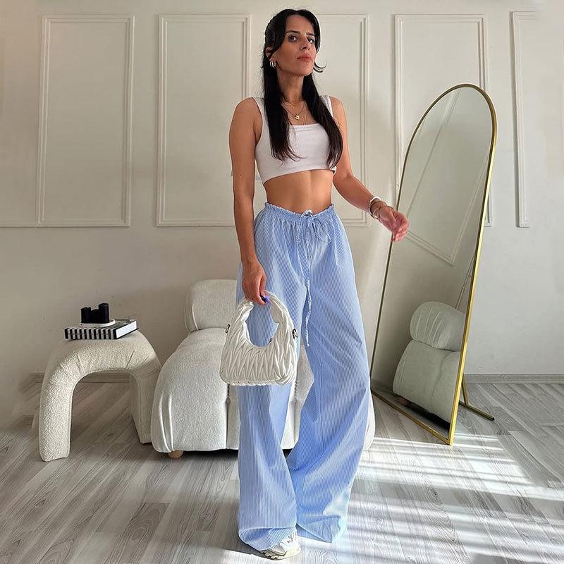 211485 Verano Nuevo Transfronterizo Europeo y Americano Básico Suelto Rayado Casual Cordones Pantalón Recto Estilo 2025