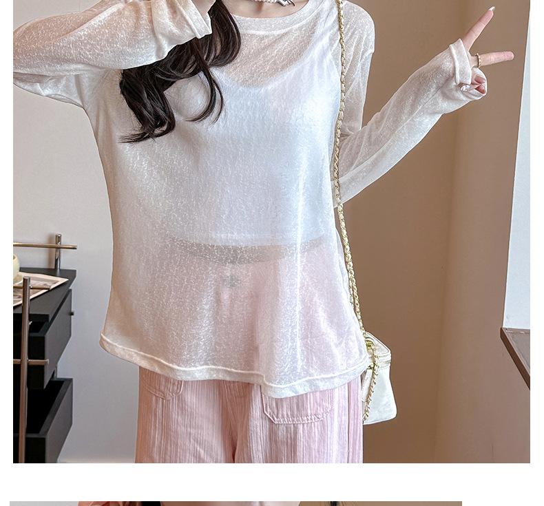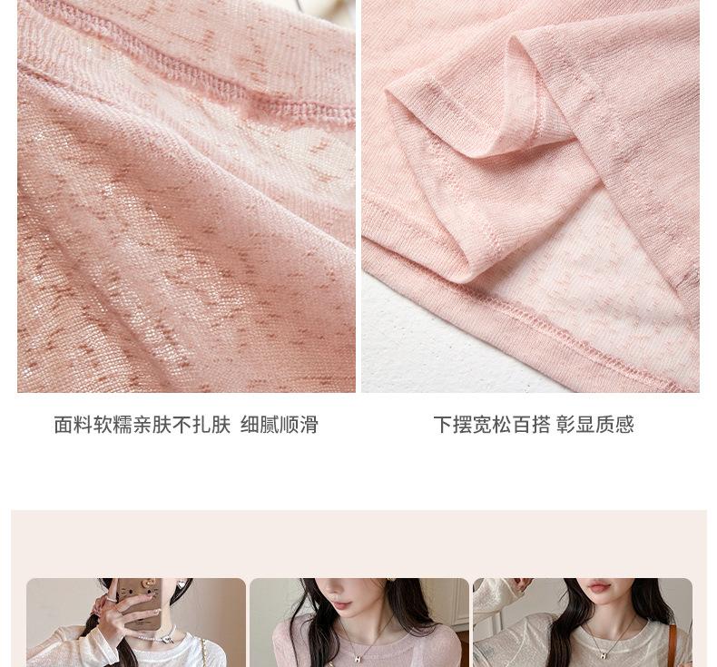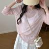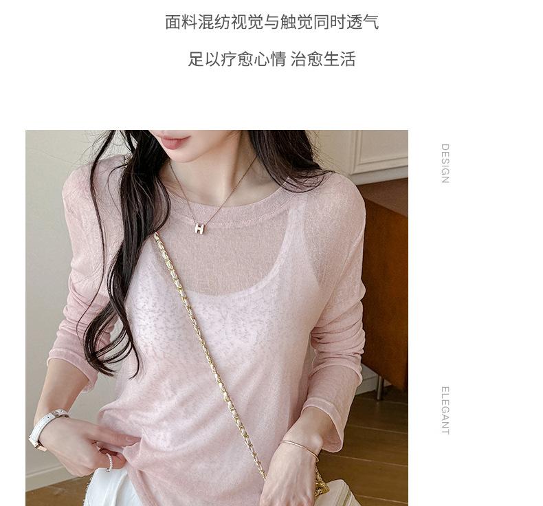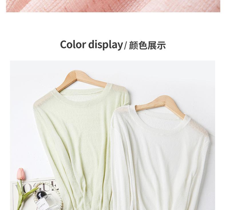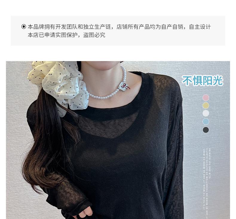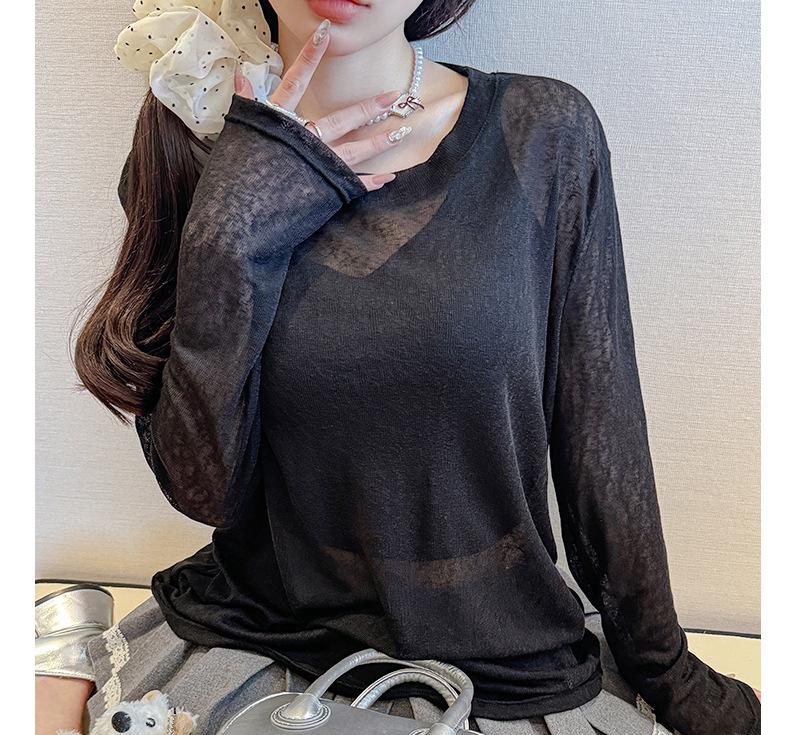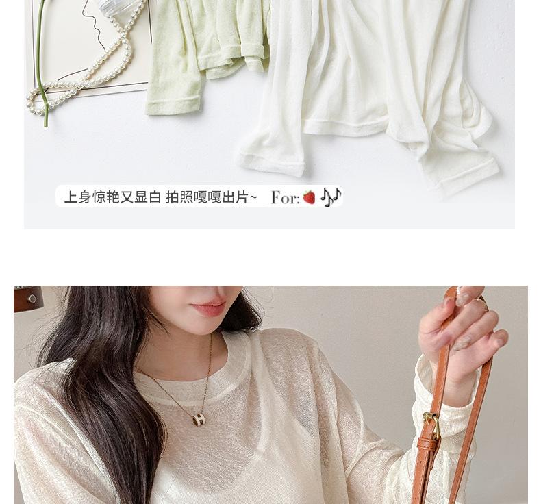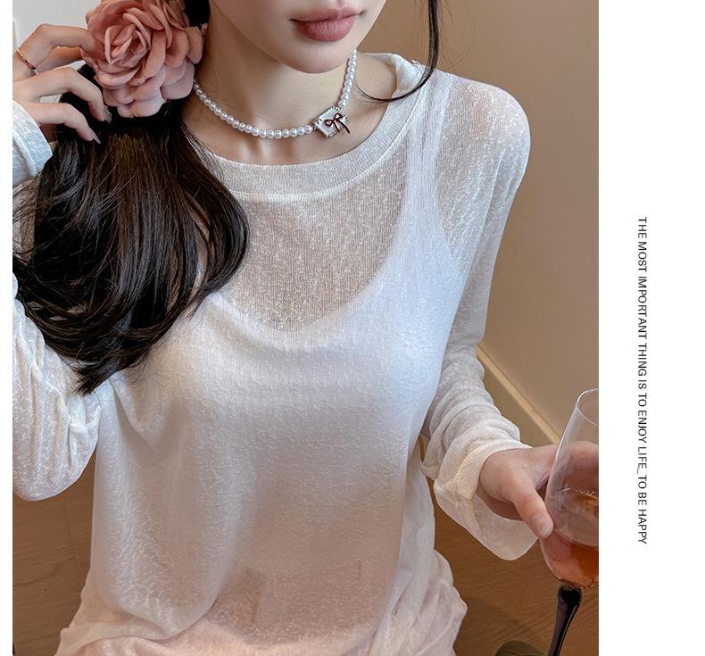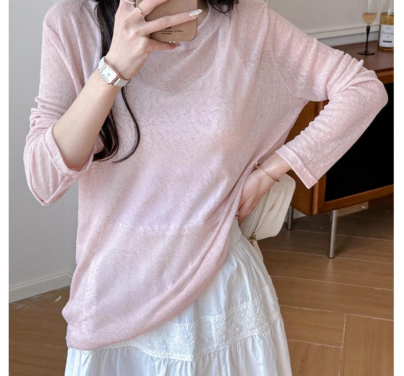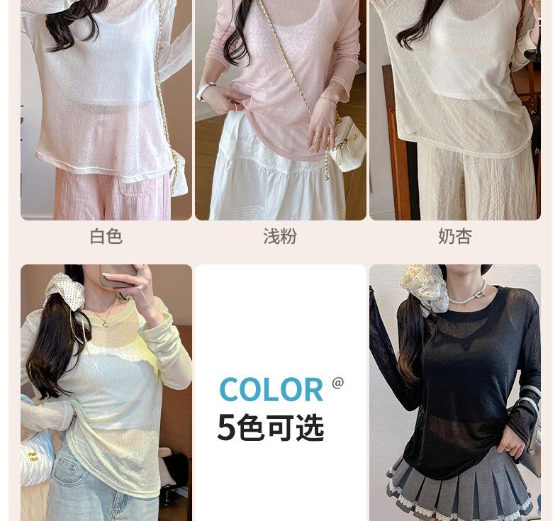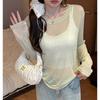 Blusa de Manga Larga Protector Solar Microtransparente Camiseta de Hombro para Mujer Verano 2025 Delgada Tejida Camisa para Aire Acondicionado Top Básico
