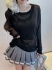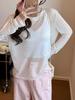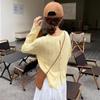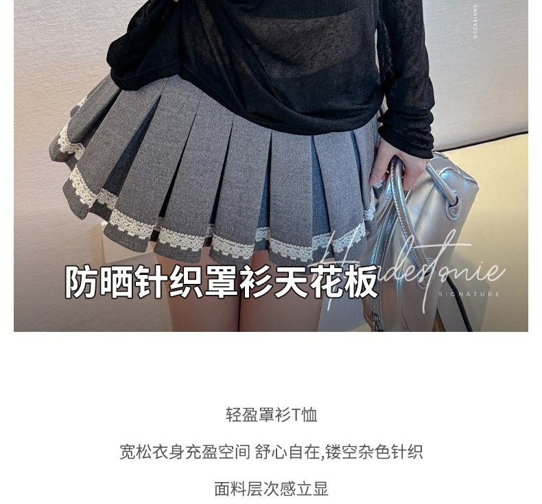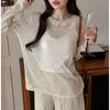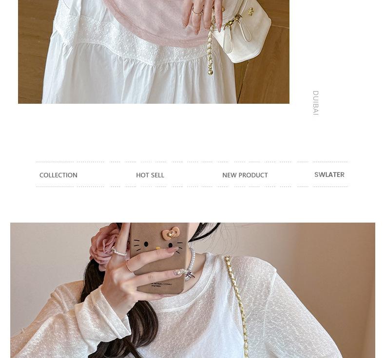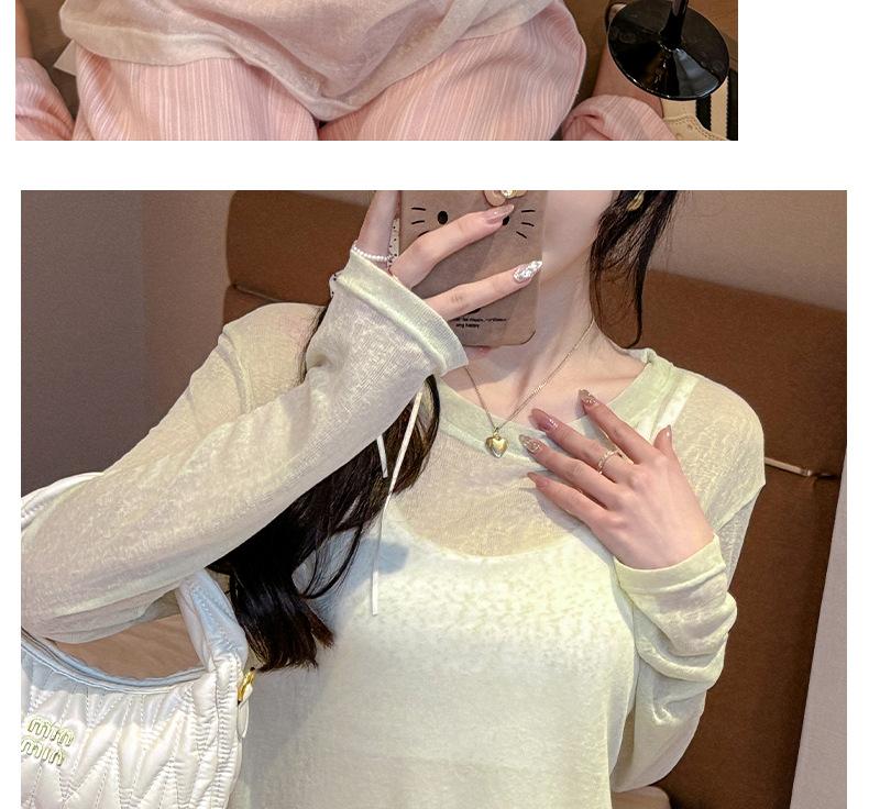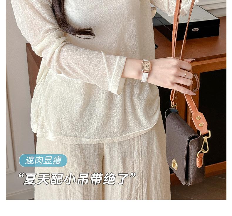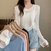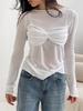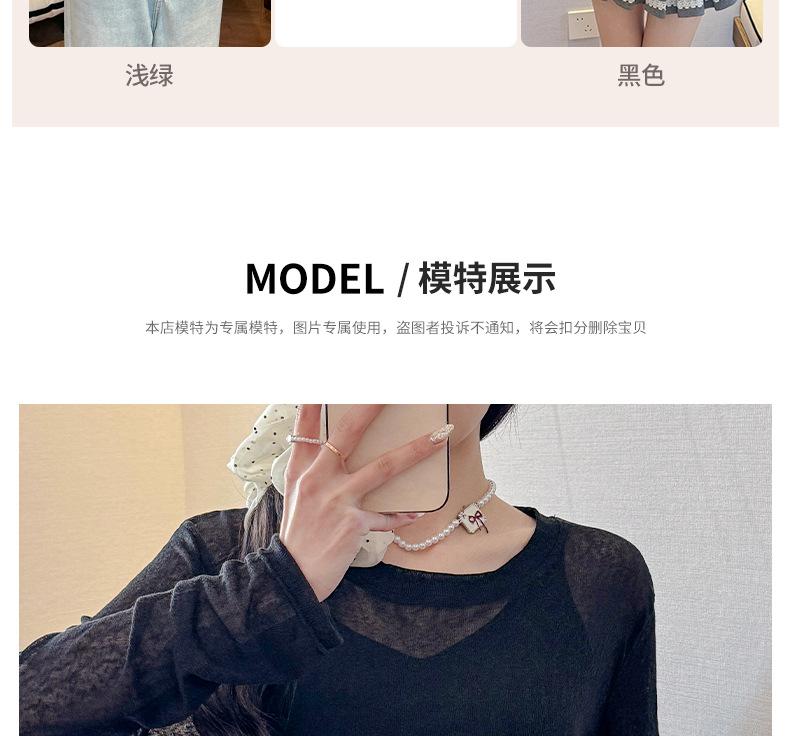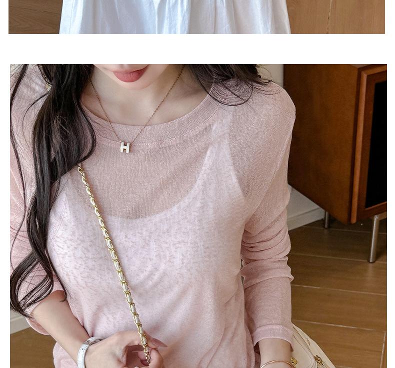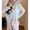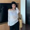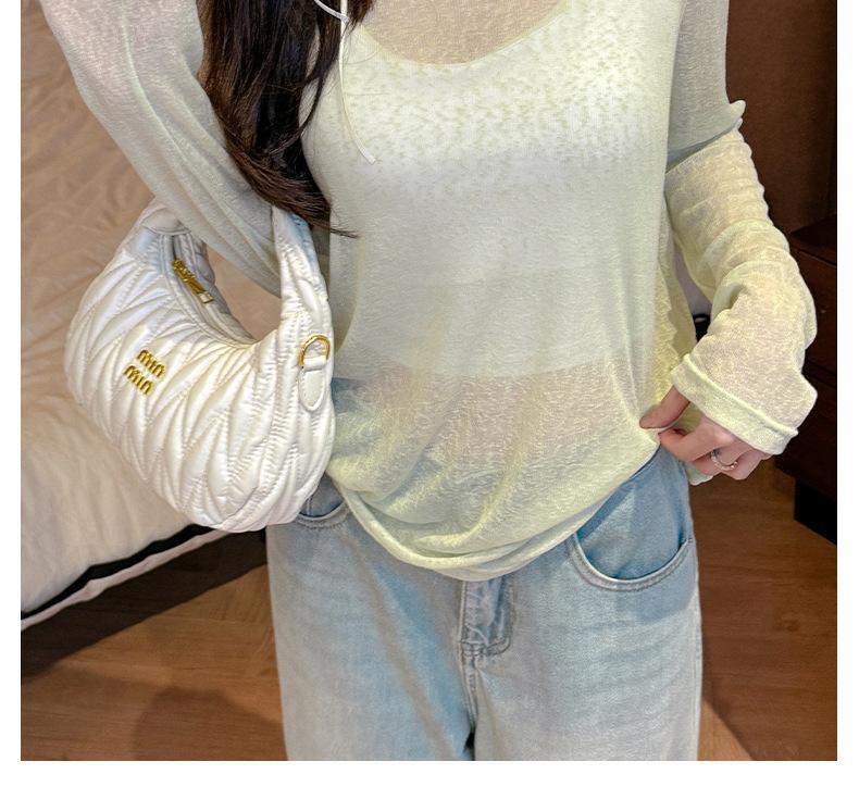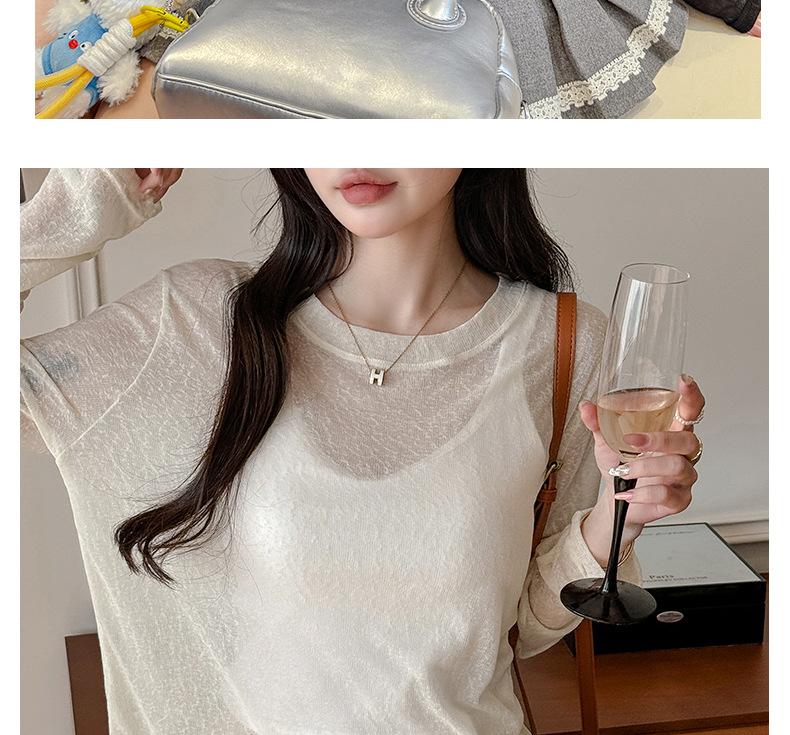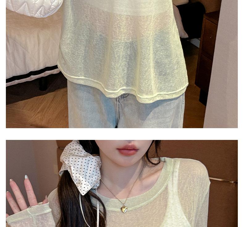 Blusa de Manga Larga Protector Solar Microtransparente Camiseta de Hombro para Mujer Verano 2025 Delgada Tejida Camisa para Aire Acondicionado Top Básico