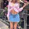 Exportación Transfronteriza Ropa de Mujer 2025 Primavera y Verano Estilo Europeo y Americano Cuello en V Decorado con Lazo Camisas con Cordones Tops para Mujer A280020
