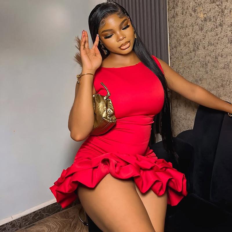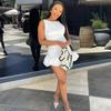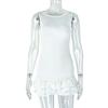 Estilo Europeo y Americano Nueva Moda Transfronteriza para Mujer Vestido Corto de Viaje de Color Sólido con Cuello Redondo sin Mangas y Falda Plisada Distintiva Ajustado