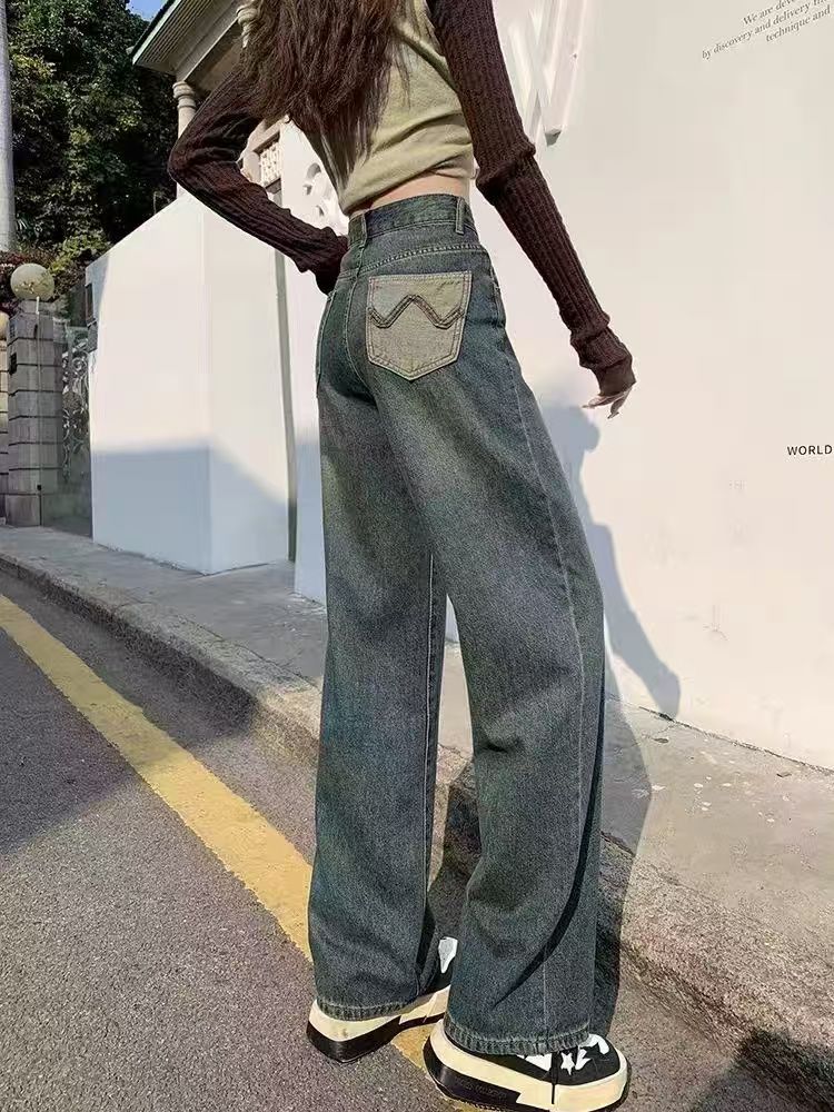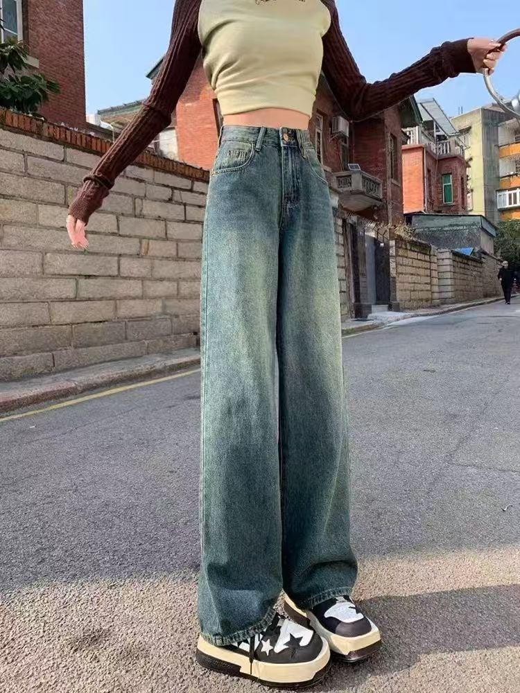 Jeans Rectos Sueltos para Mujer Primavera Otoño Invierno 2025 Nuevos de Cintura Alta Slim Petite Pierna Ancha Pantalones Largos hasta el Piso