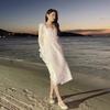 Vestido Francés Otoño 2022 Nueva Llegada Ligeramente Maduro Manga Larga Cuello en V con Borde de Oreja Vestido Estilista de Hada ins