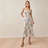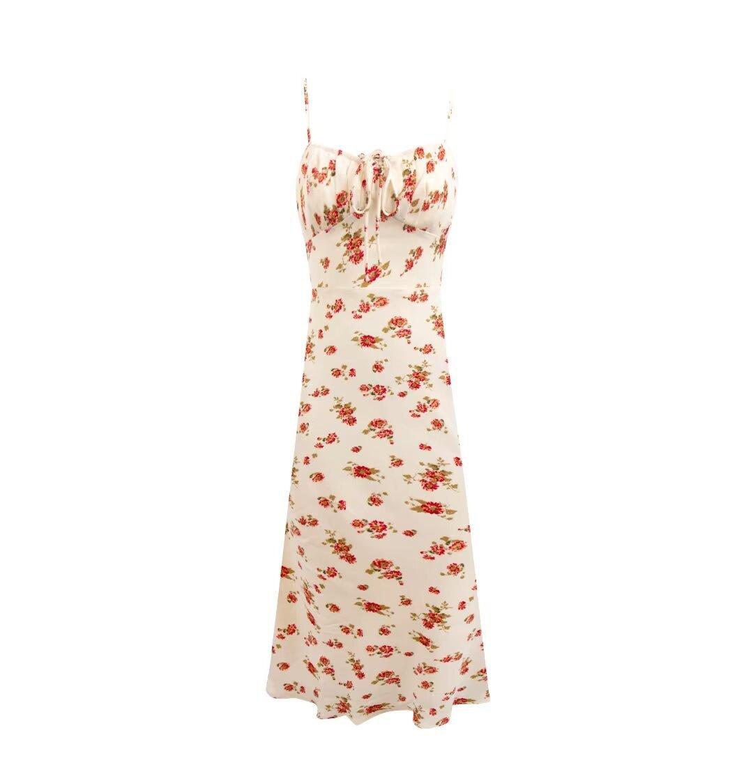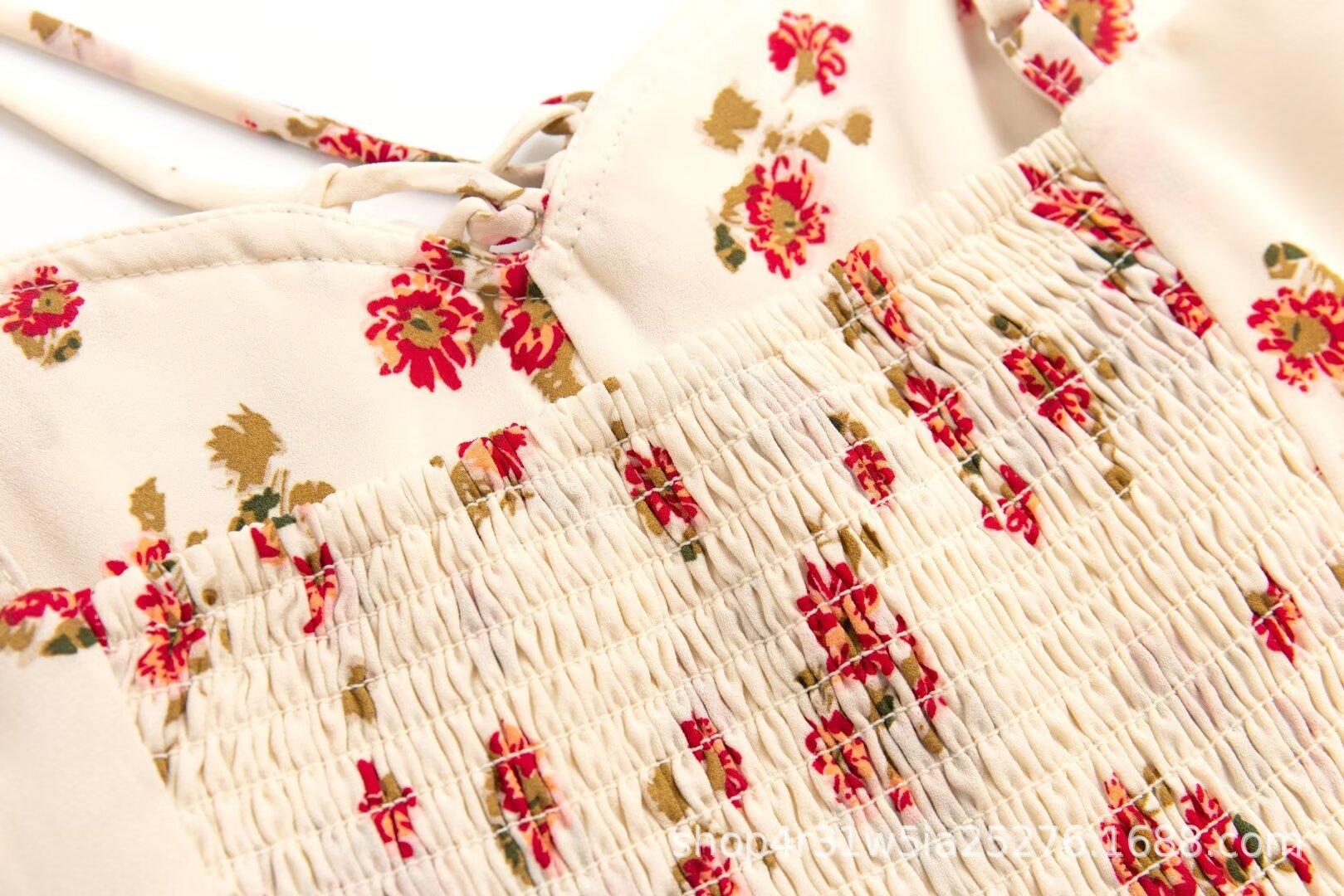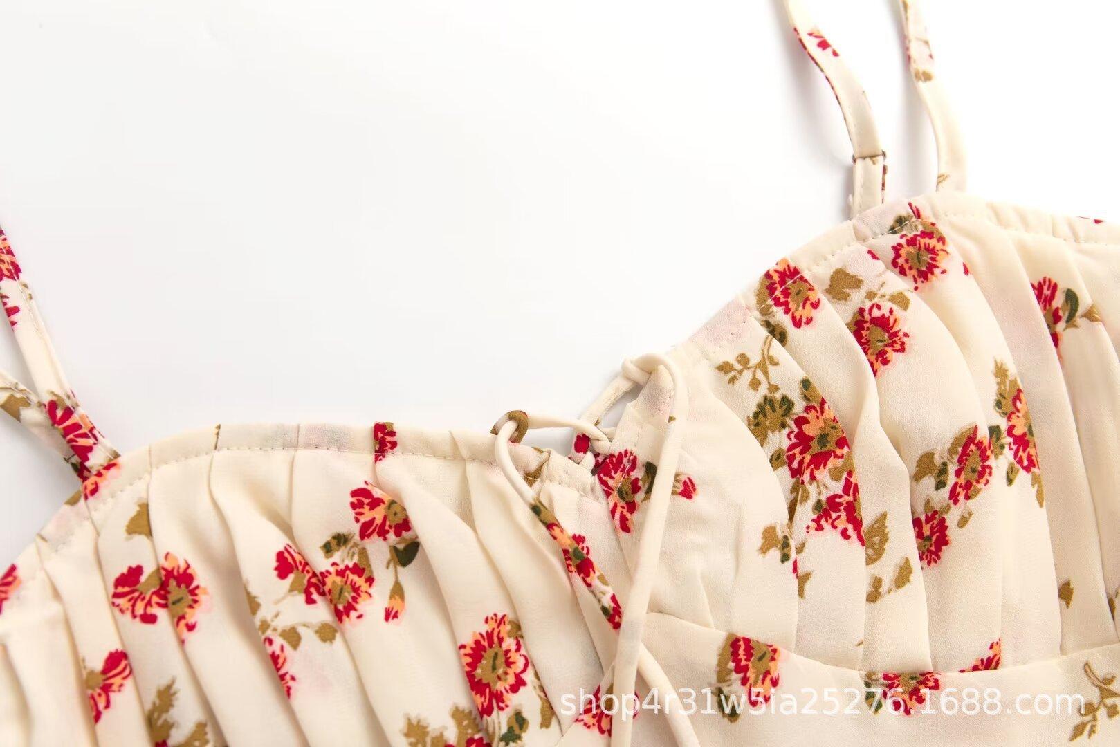 Nicho francés 2023 Verano nuevo falda floral ajustada adelgazante con tirantes ceñida a la cintura para mujer