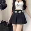 Falda Plisada Gris para Mujer Primavera y Verano Nuevo Diseño Estilo Preppy Cintura Alta Asimétrica Línea A