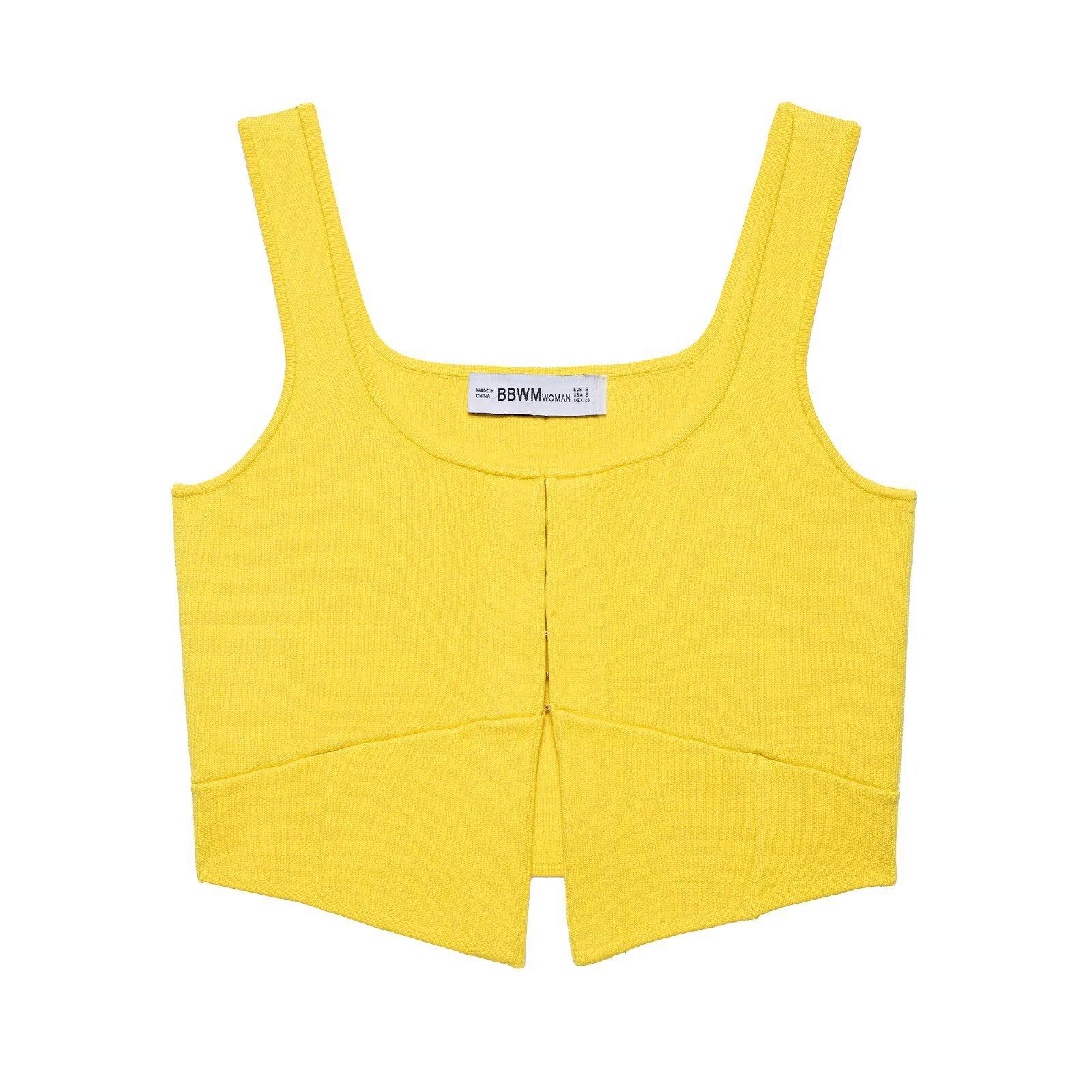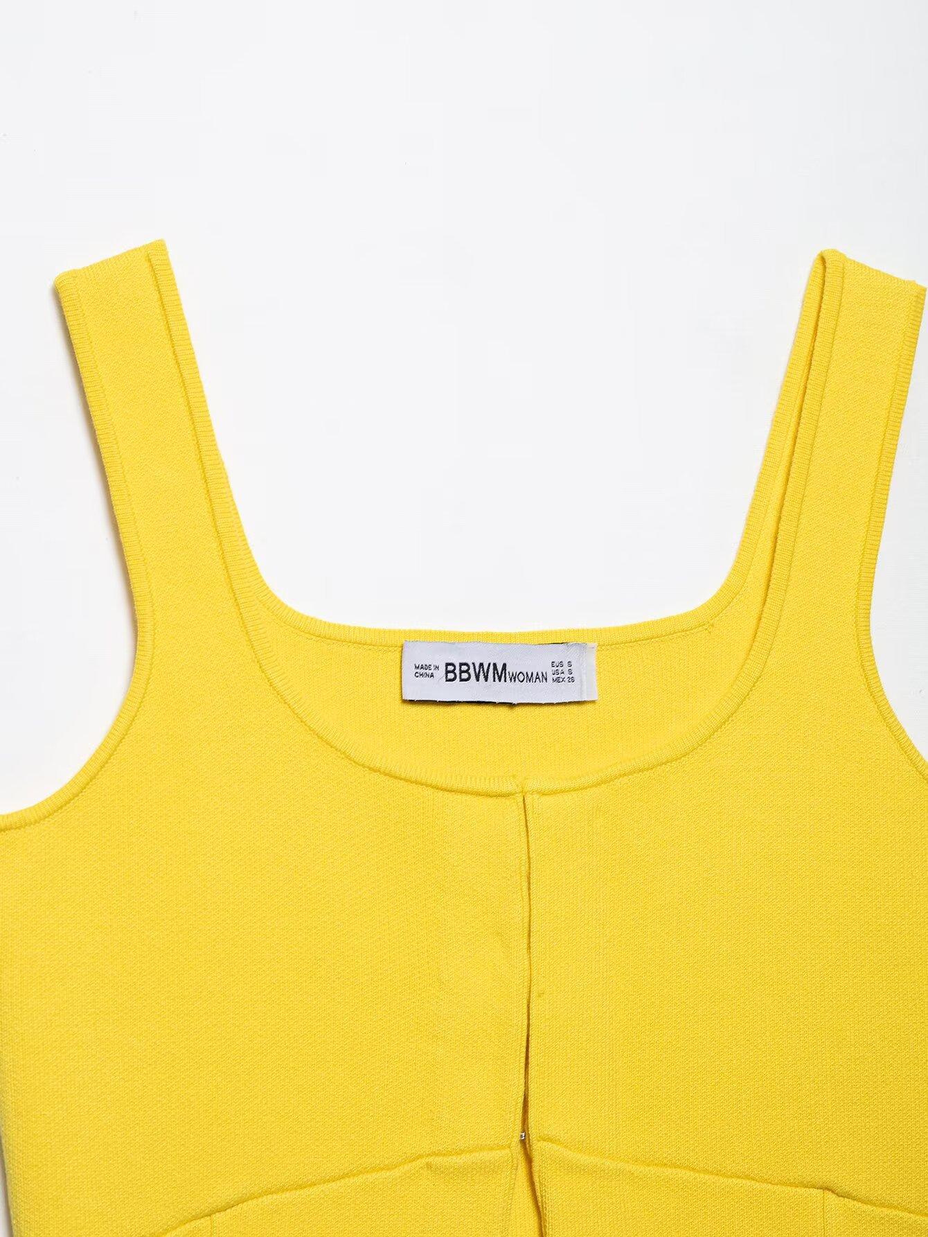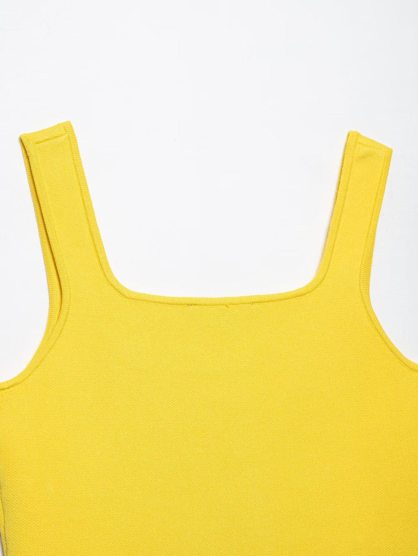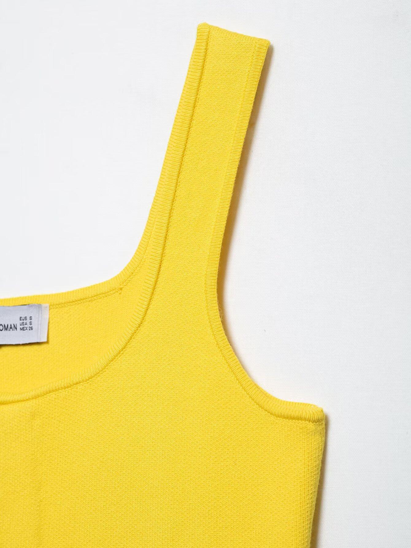 Venta al por mayor de comercio exterior transfronterizo 2025 Verano Estilo europeo y americano Top corto de punto de corte ajustado con cuello redondo y tirantes finos para mujer