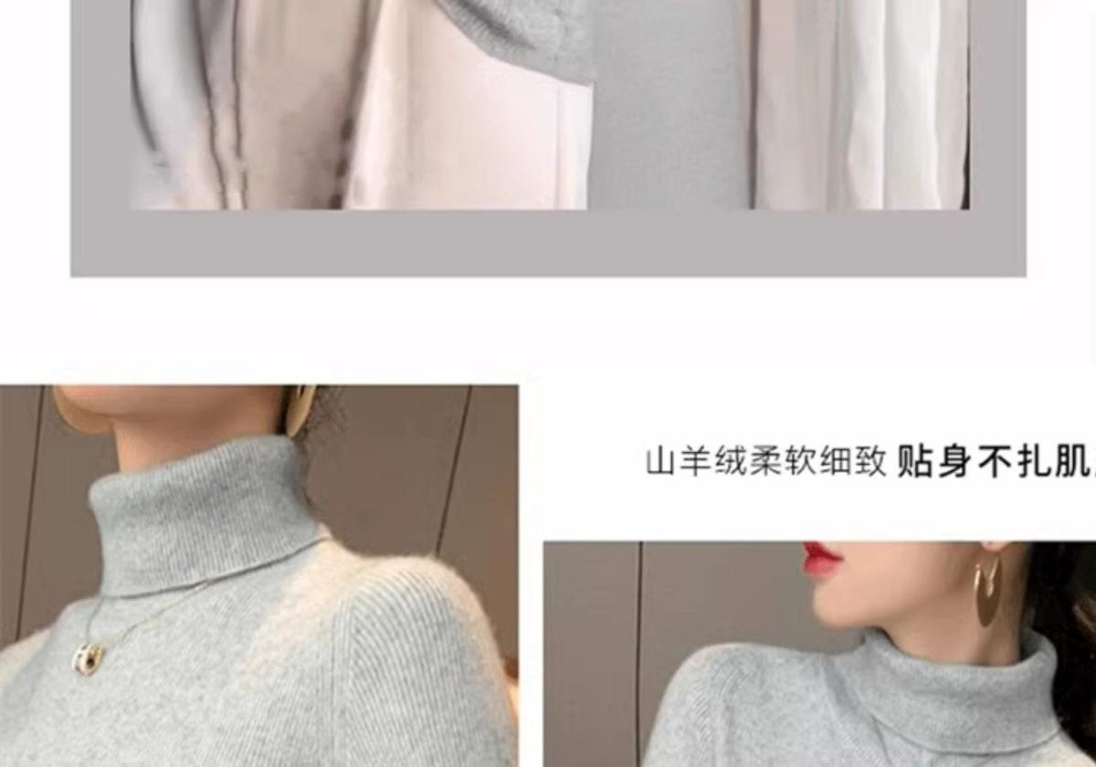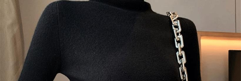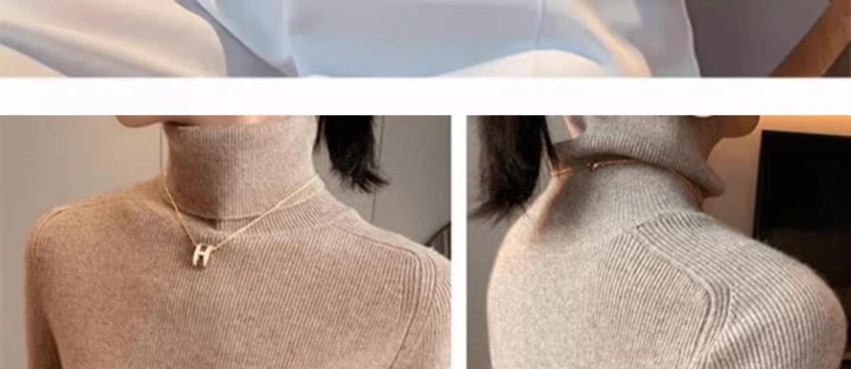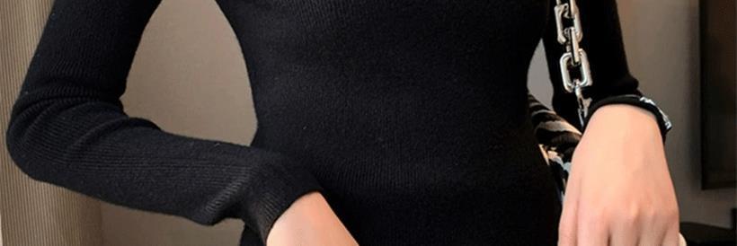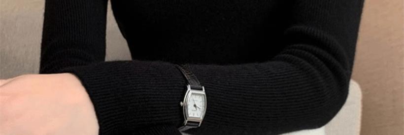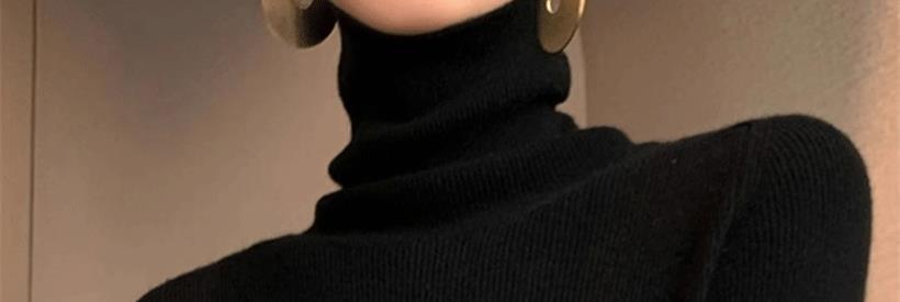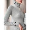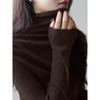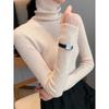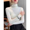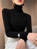 Camiseta Base de Punto de Cuello Alto Negra de Alta Gama Francesa para Mujer Otoño e Invierno Suéter Interior Suave Ceroso Ajustado Top Apilado
