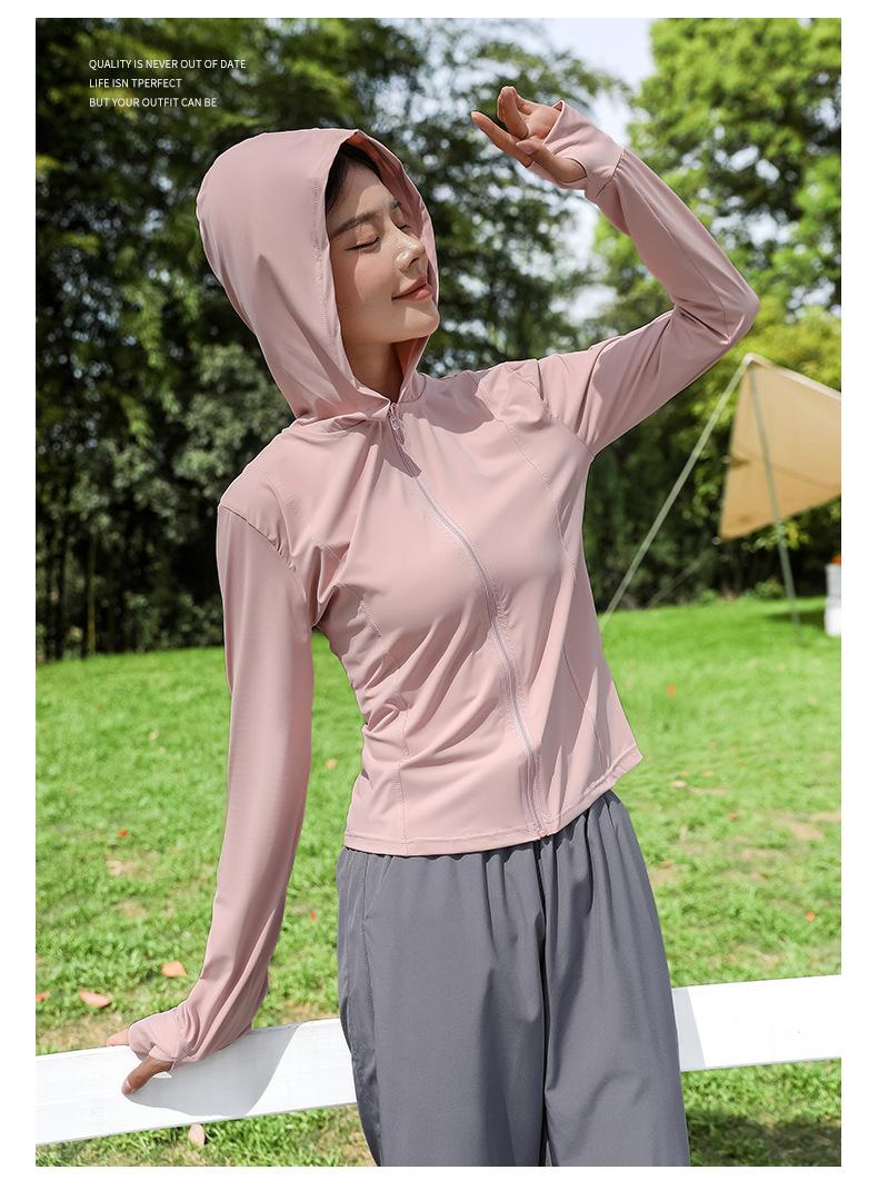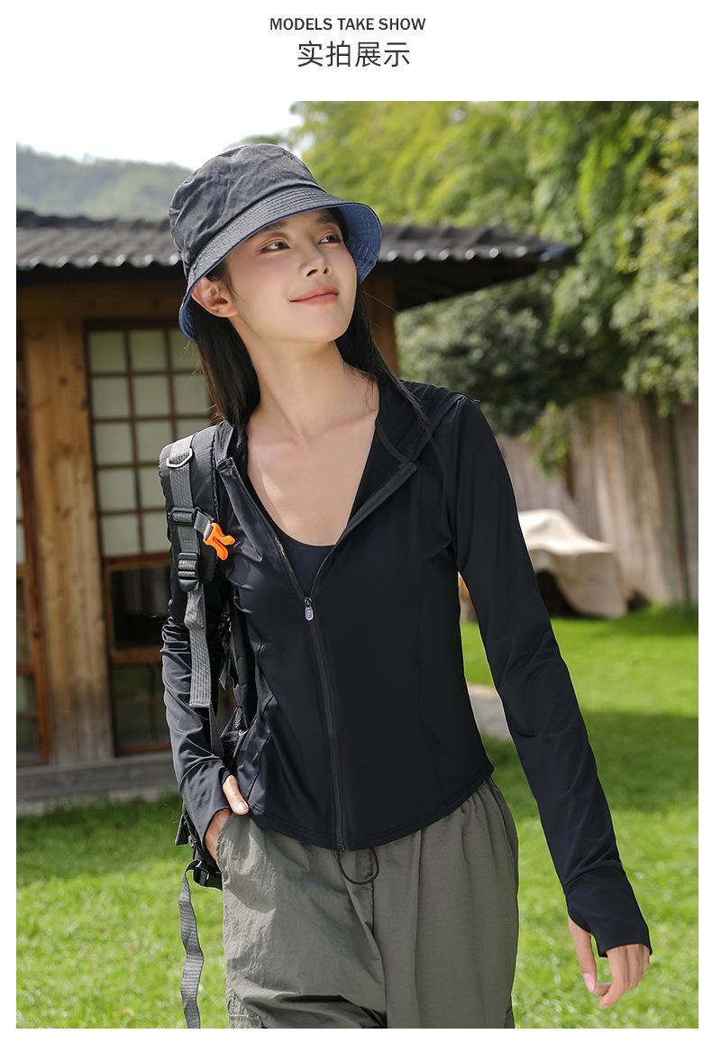 Ropa de Protección Solar con Capucha de Seda de Hielo para Mujer 2025 Nueva Chaqueta Delgada de Verano Ajustada Ropa Deportiva para Fitness Yoga Top