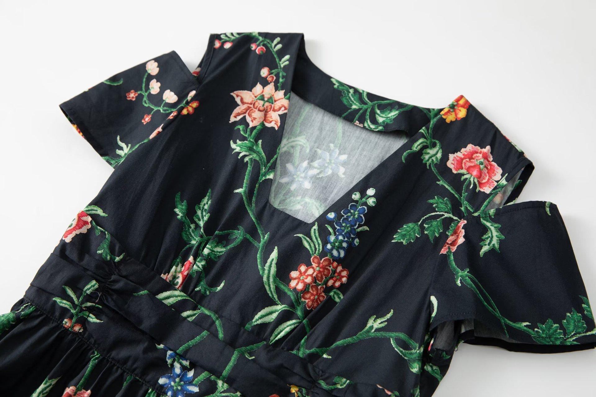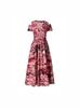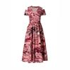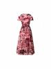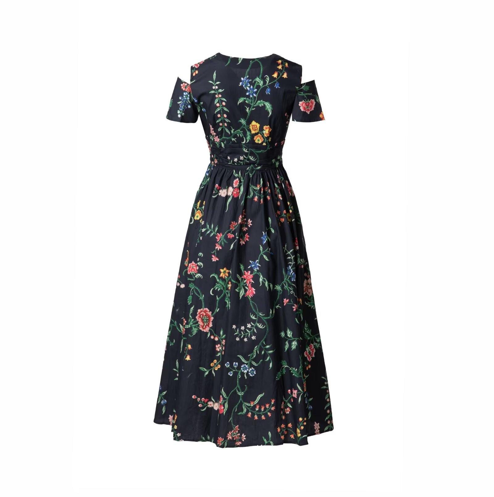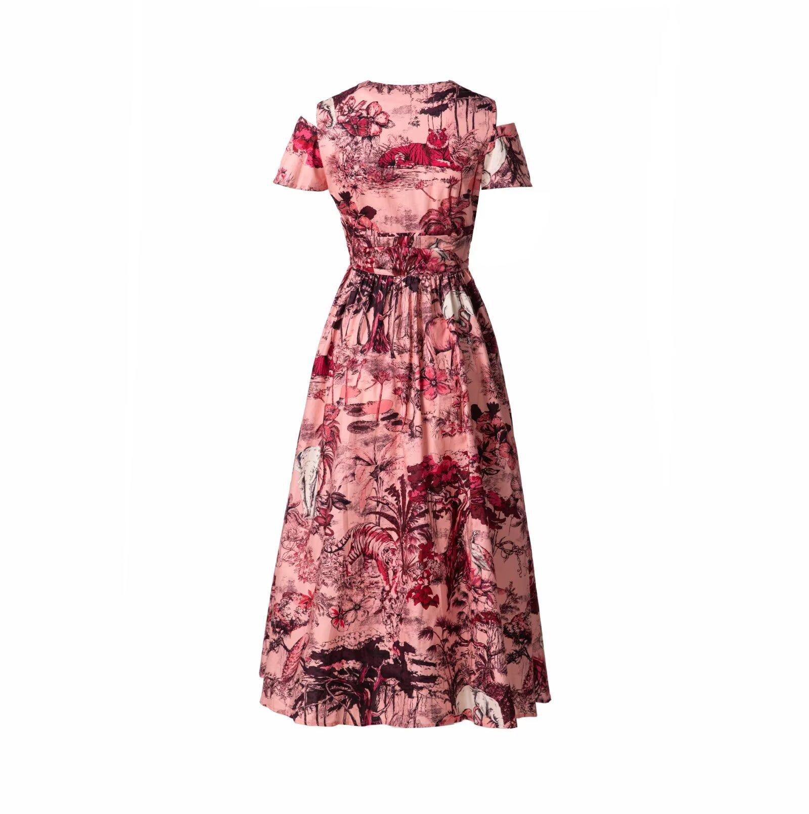 Nuevo vestido de vuelo grande bicolor con hombros descubiertos y estampado de inyección directa para primavera y verano