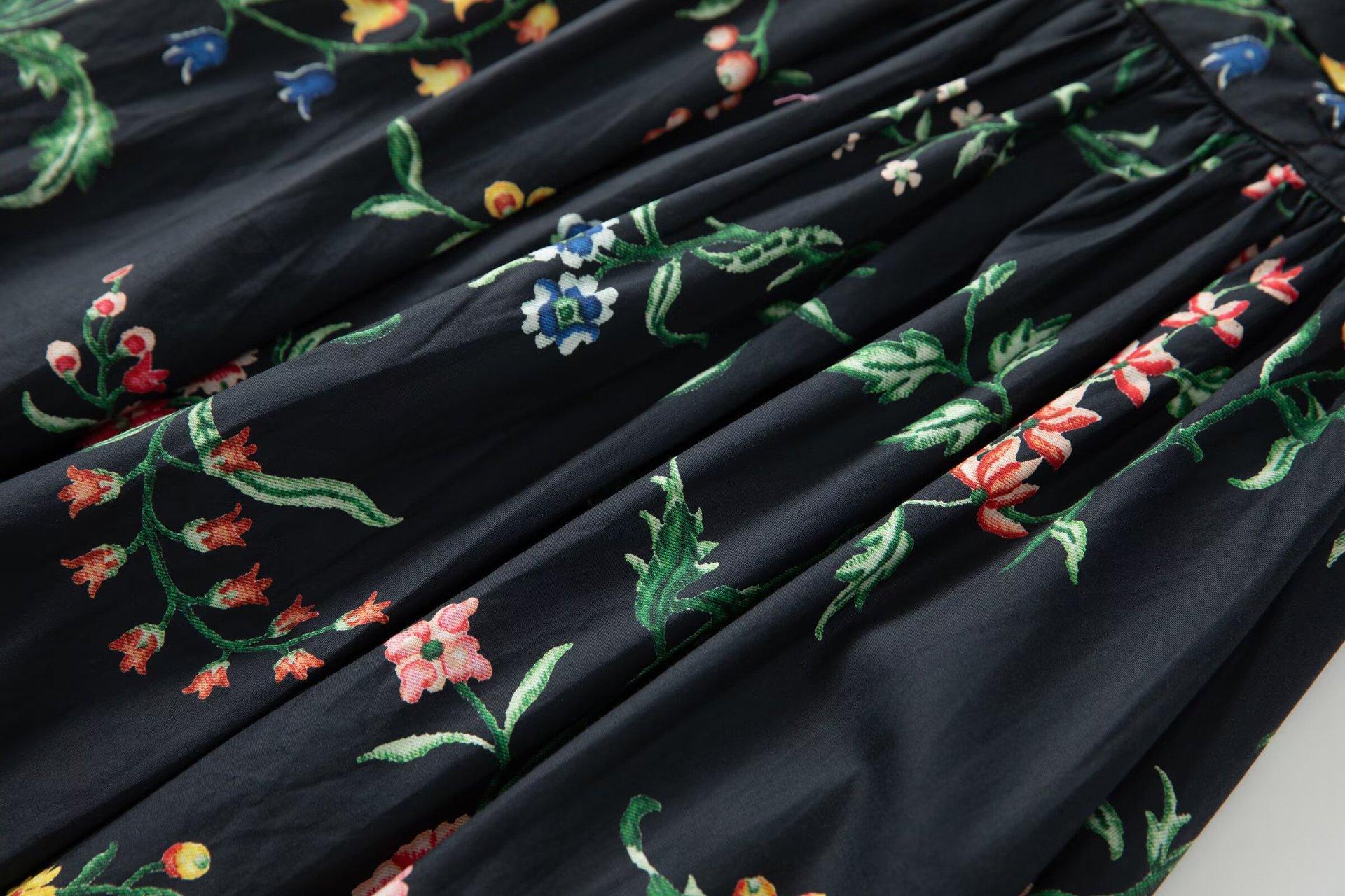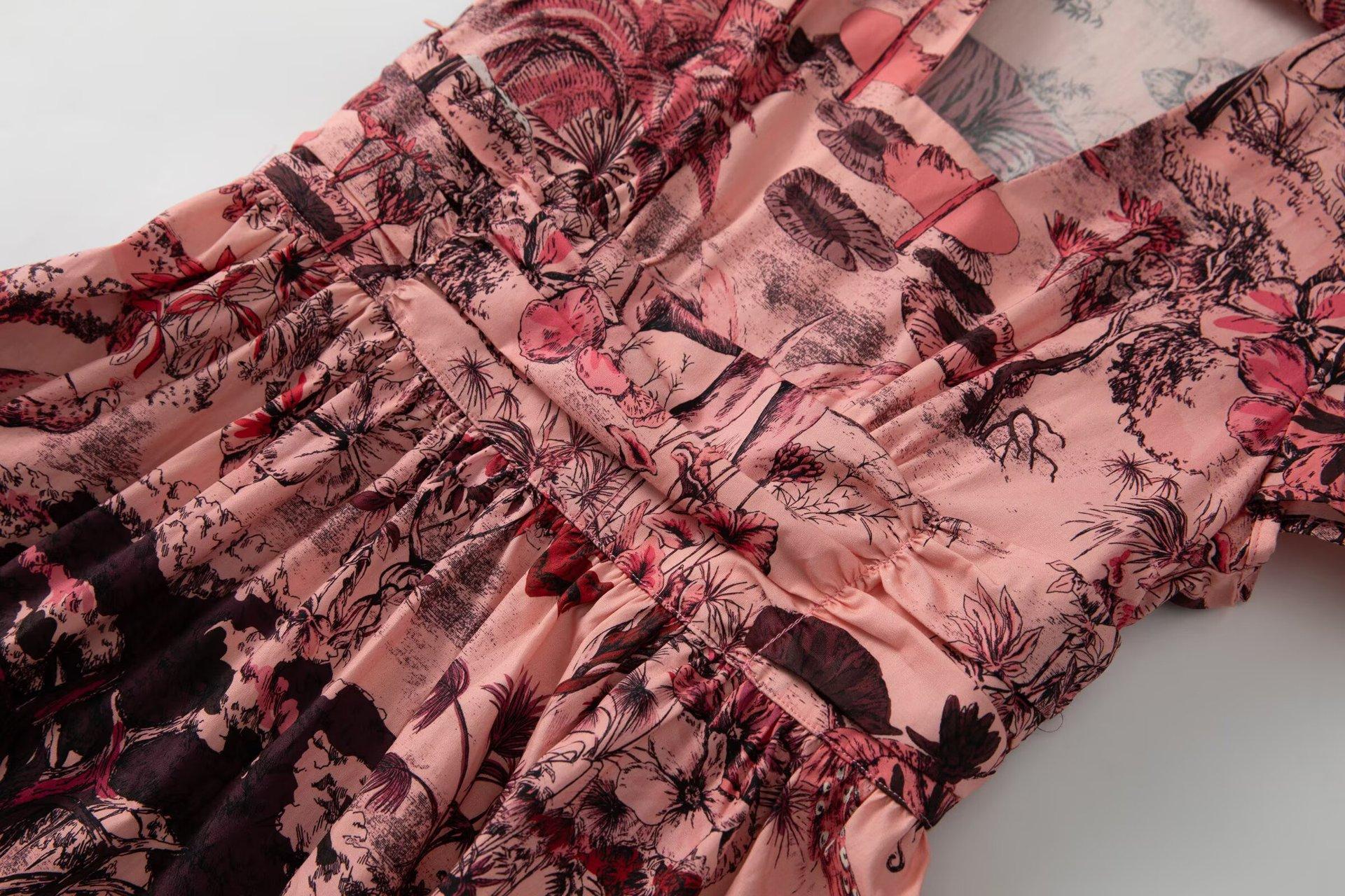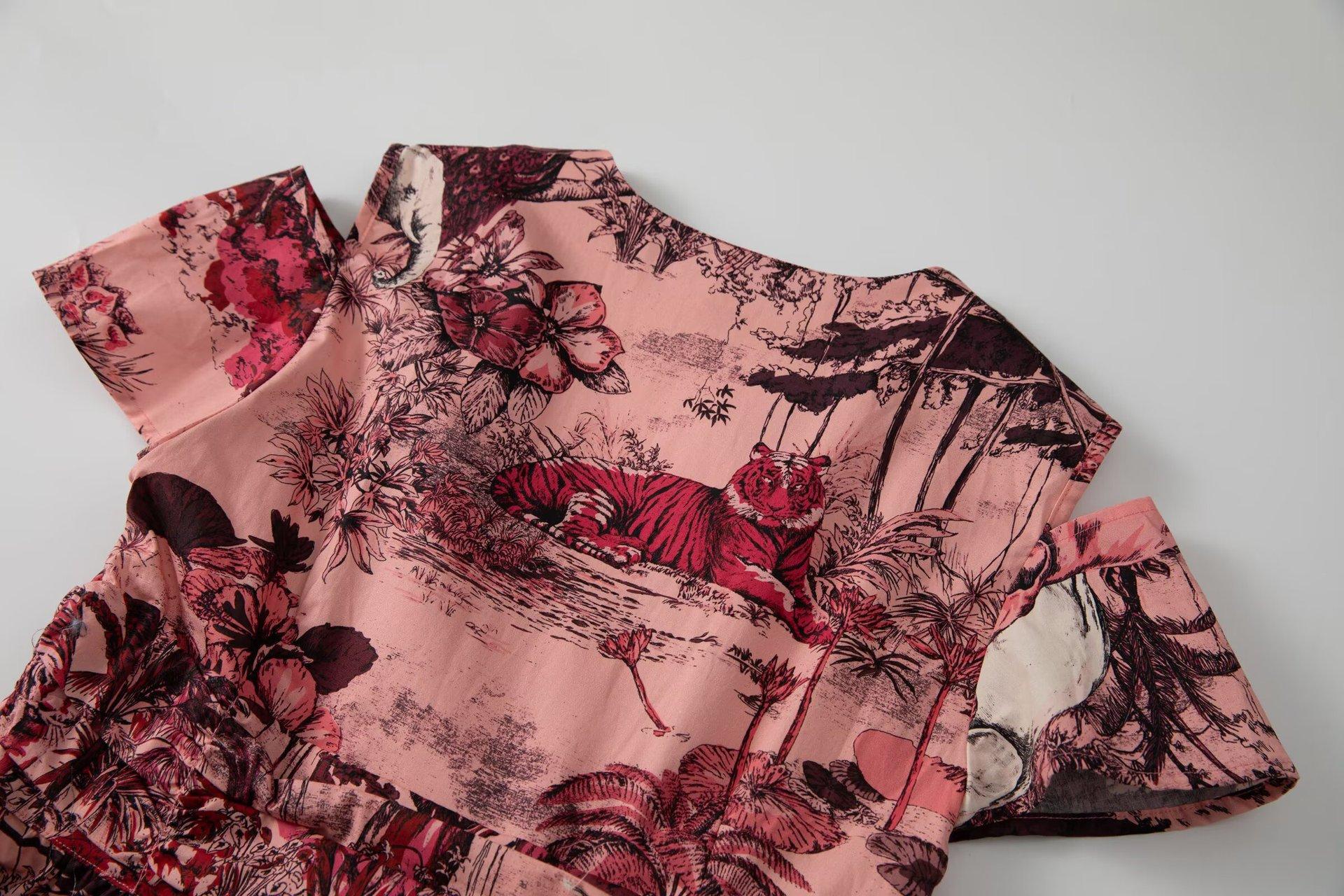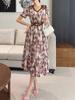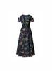 Nuevo vestido de vuelo grande bicolor con hombros descubiertos y estampado de inyección directa para primavera y verano