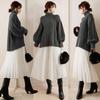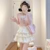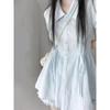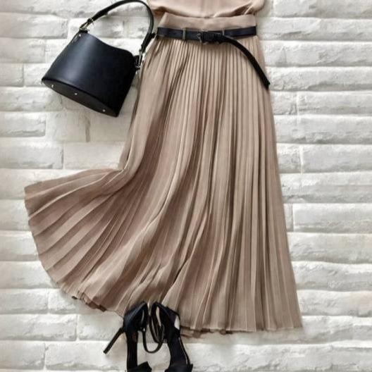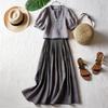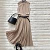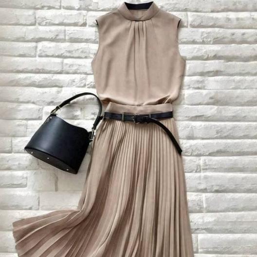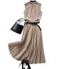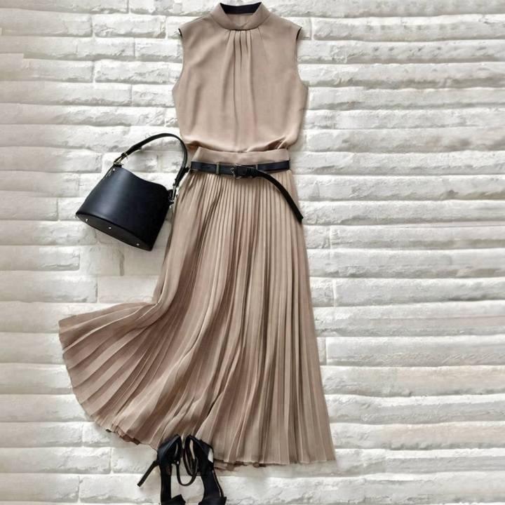 Coreano y Japonés En Stock 2025 Nuevo Top sin Mangas Plisado con Cuello Mao Pequeño con Falda Plisada en A con Cinturón Conjunto de Dos Piezas