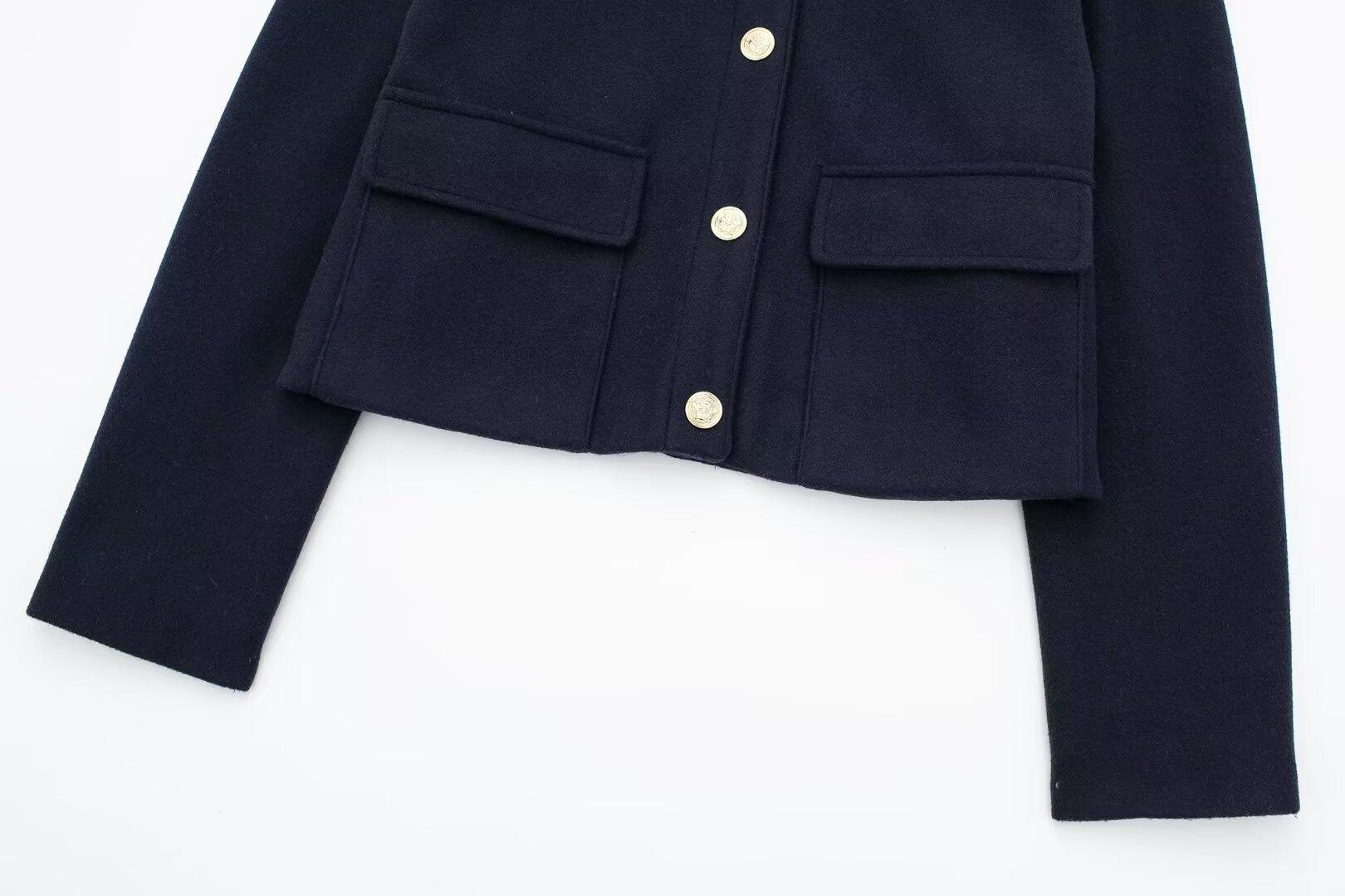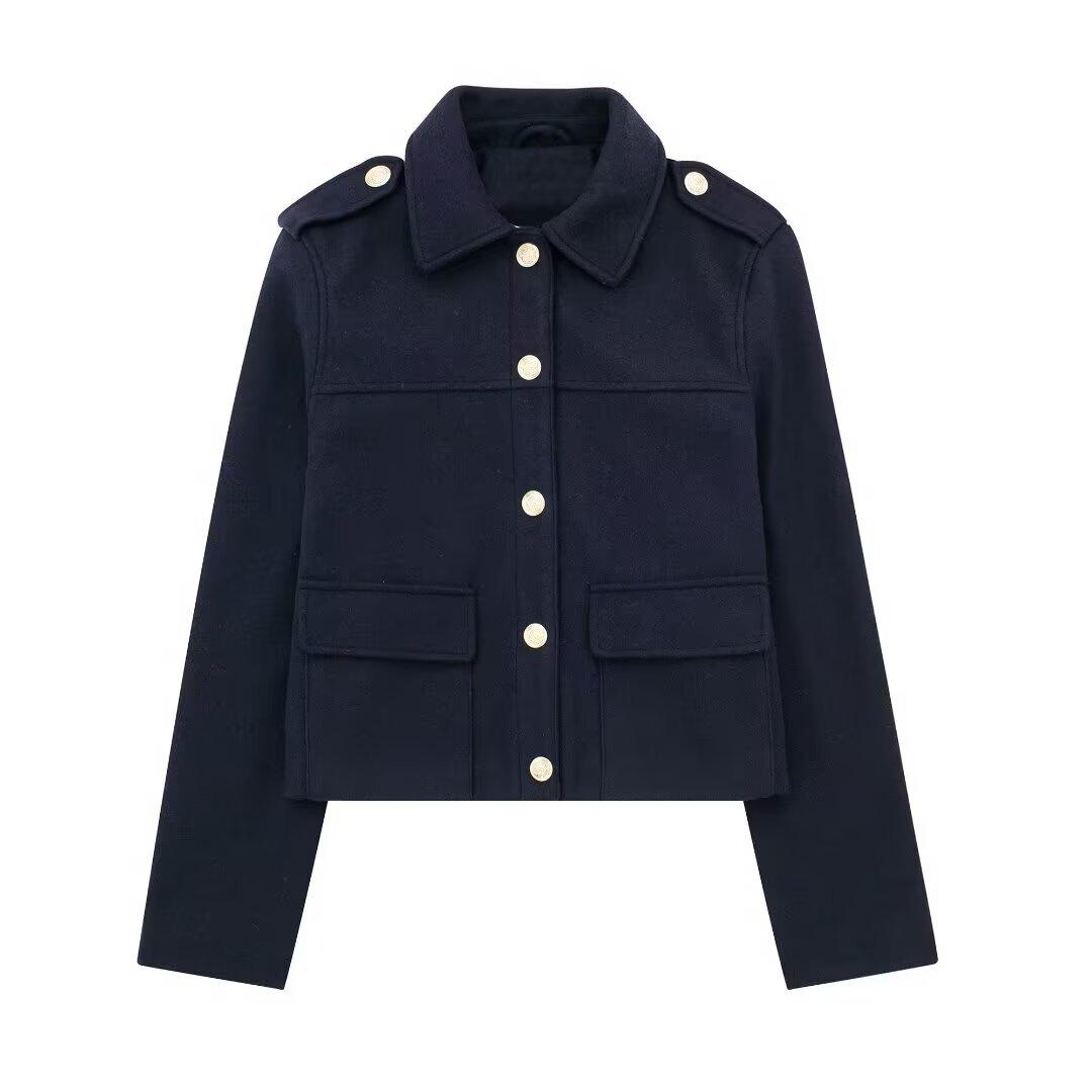 Ropa de Otoño para Mujer 2024 Nuevo Estilo Europeo y Americano Moda Simple Chaqueta Suave con Botones Dorados 3046258