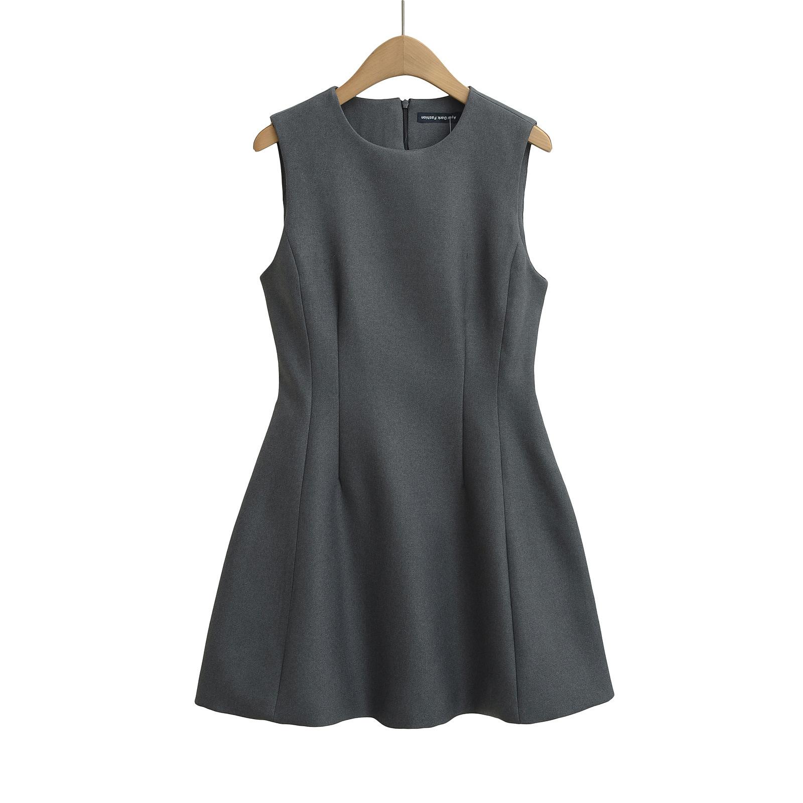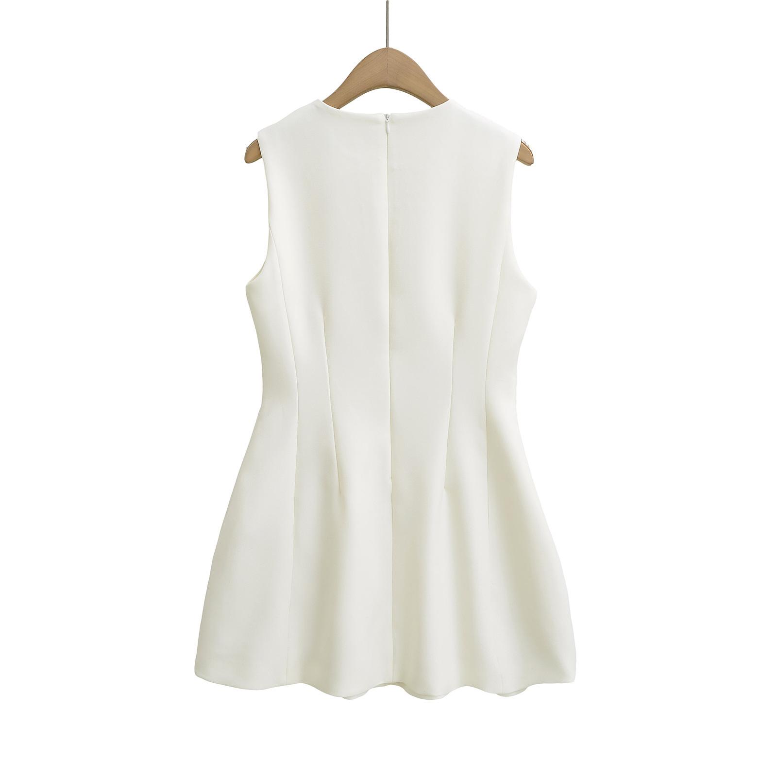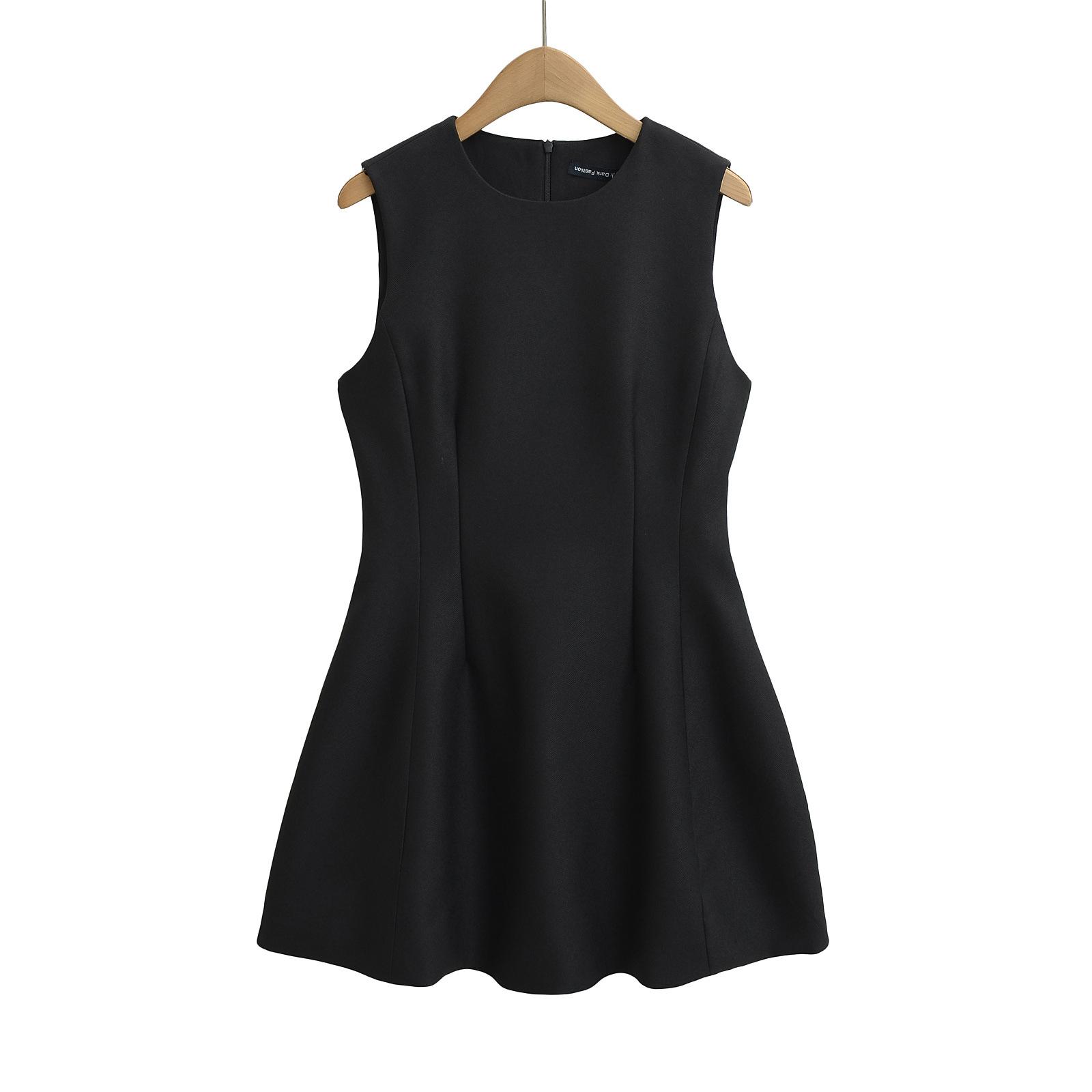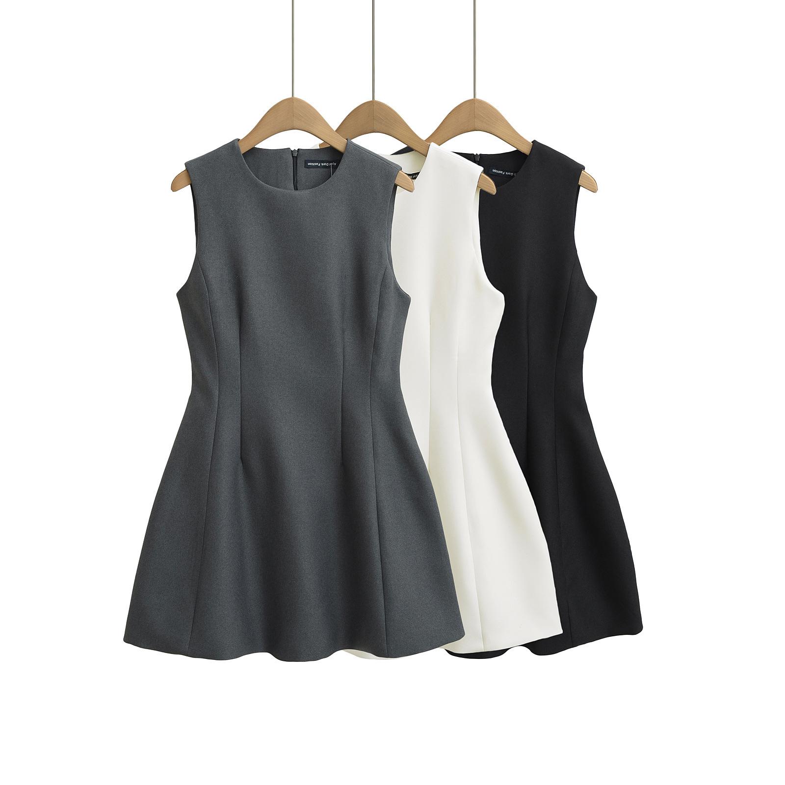 1012-Vestido Sexy Sexy sin Mangas Estilo Europeo y Americano para Mujer 2025 Nuevo Cuello Redondo Cintura Adelgazante Look Falda de Cadera