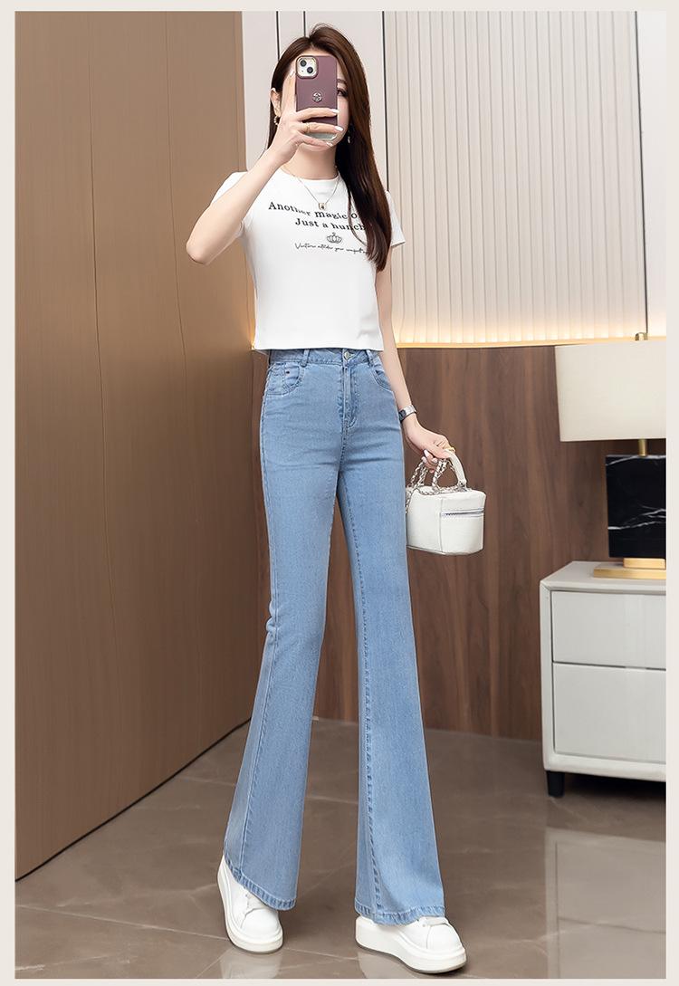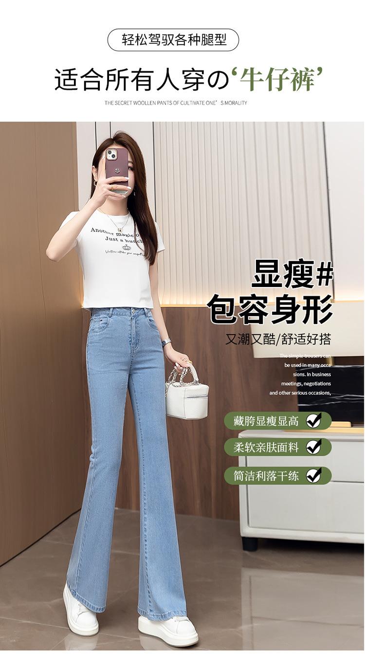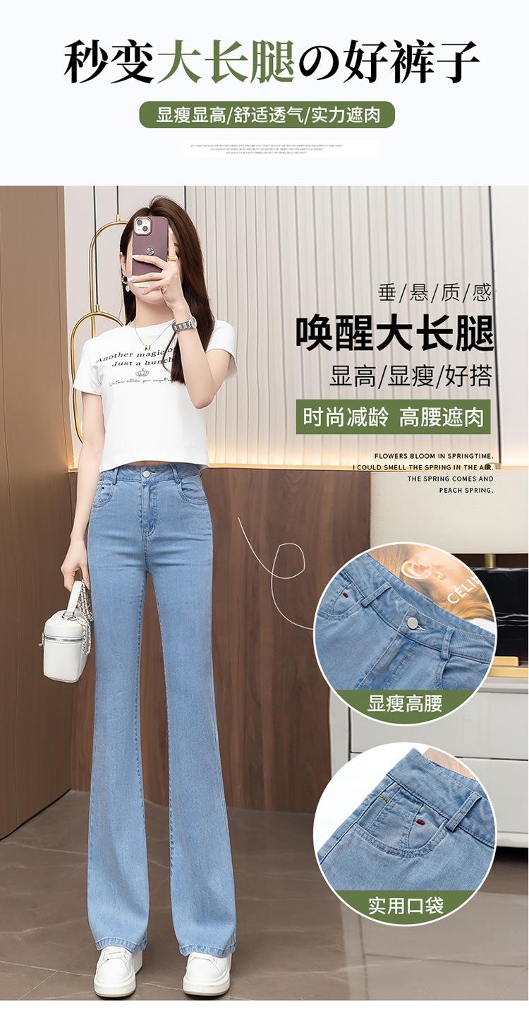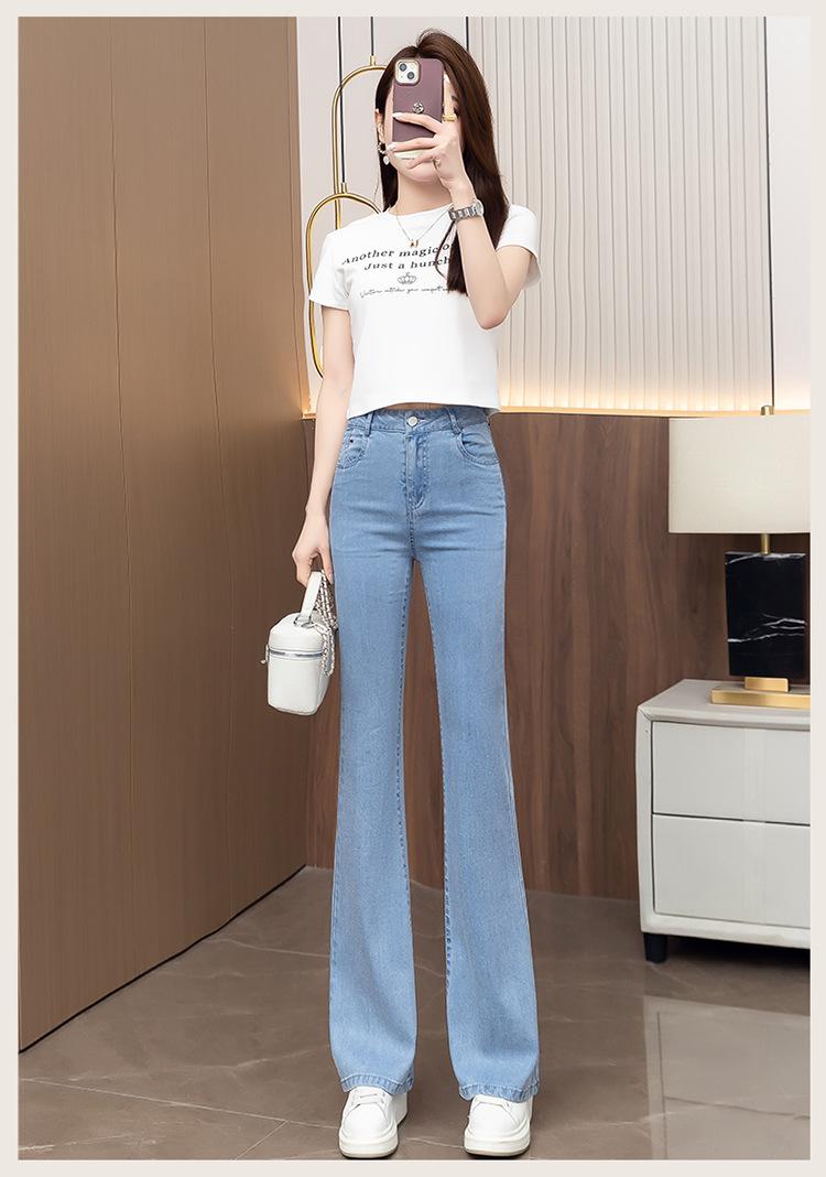 Jeans Bootcut de Tencel para Mujer en Verano, Delgados, de Cintura Alta, Elásticos, con Aspecto Adelgazante, Pantalones Acampanados de Seda de Hielo de Color Claro