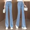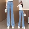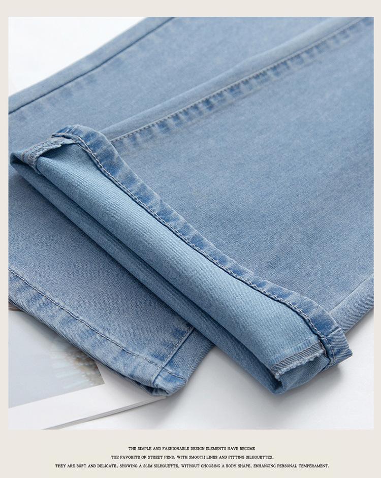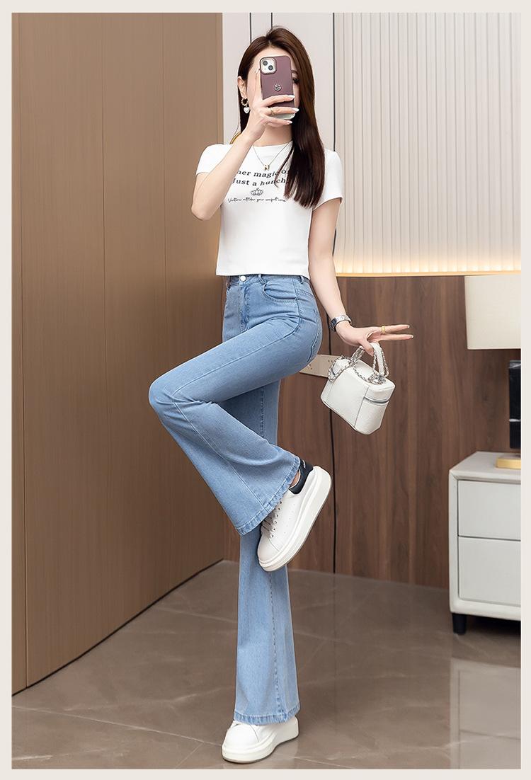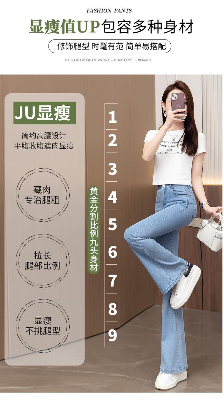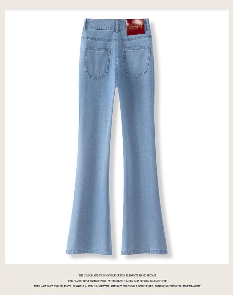 Jeans Bootcut de Tencel para Mujer en Verano, Delgados, de Cintura Alta, Elásticos, con Aspecto Adelgazante, Pantalones Acampanados de Seda de Hielo de Color Claro