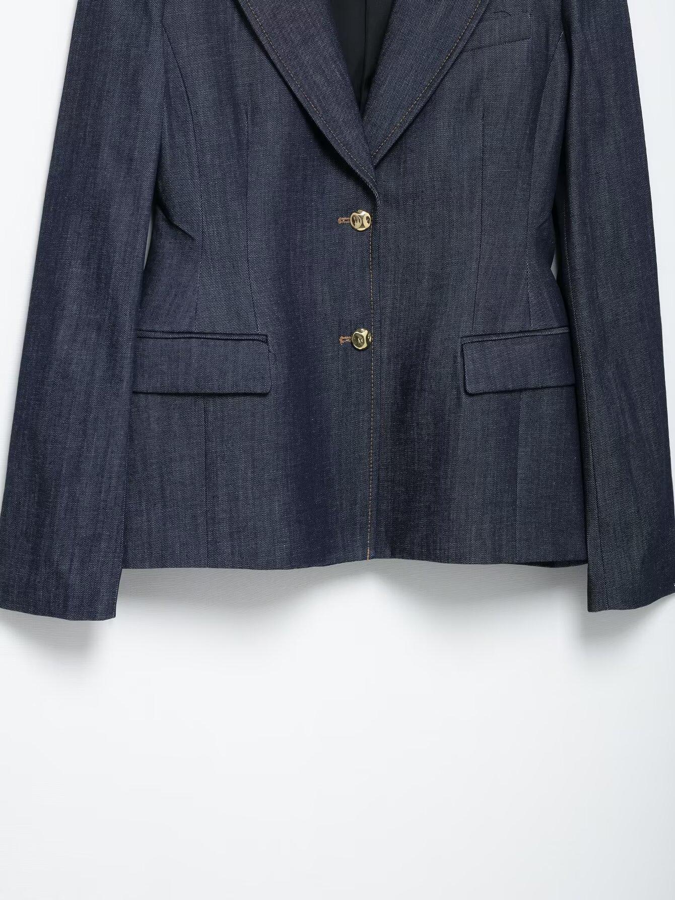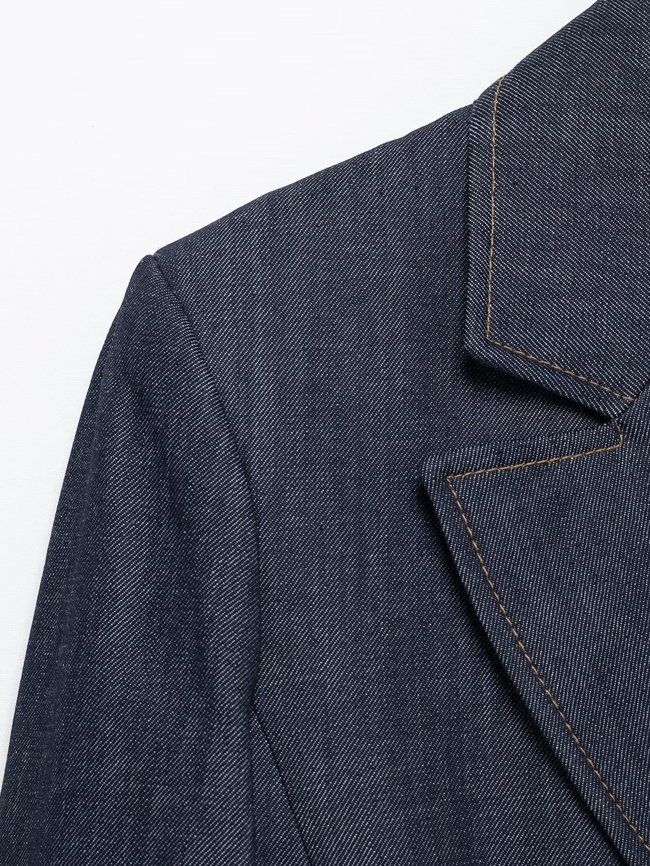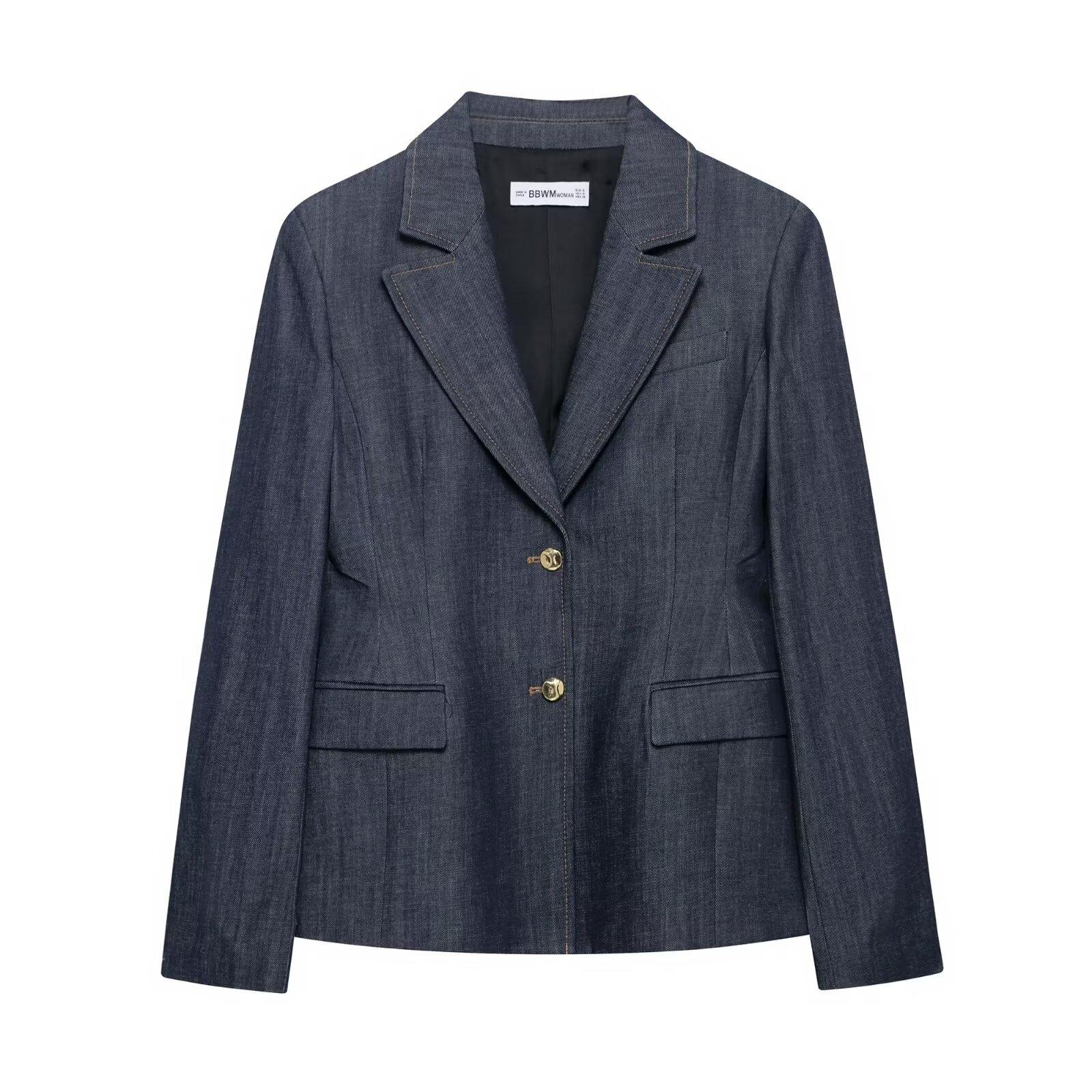 Venta al por mayor de comercio exterior transfronterizo Primavera 2025 Nueva ropa de mujer Estilo europeo y americano Moda Casual Cintura Chaqueta de traje de mezclilla para mujer