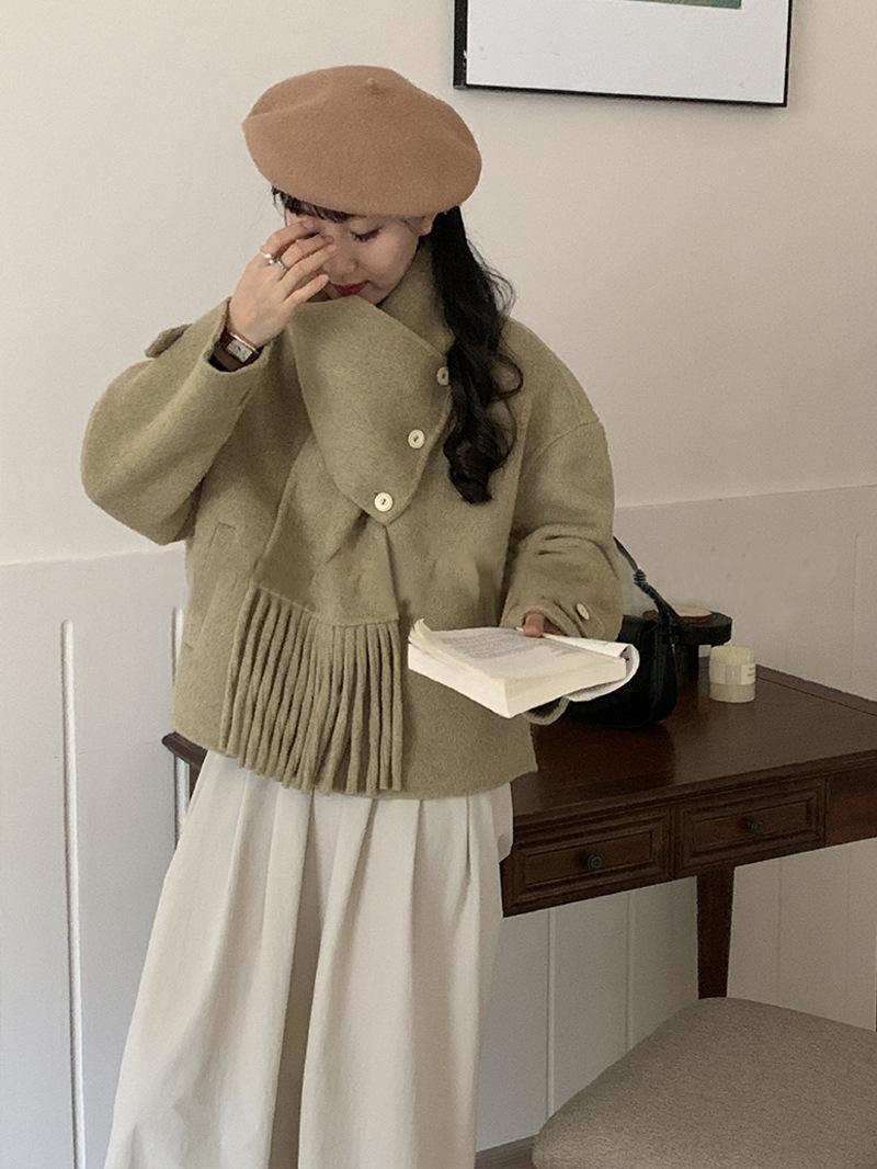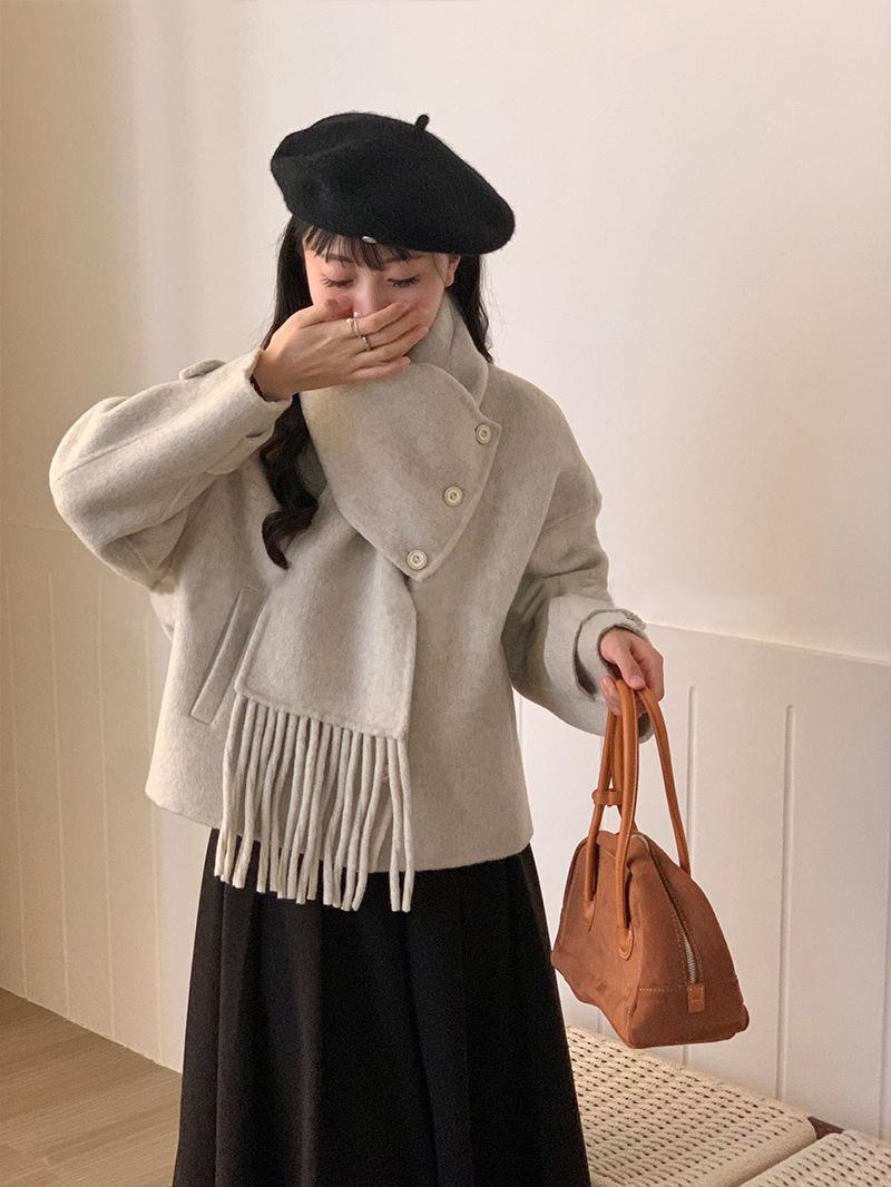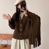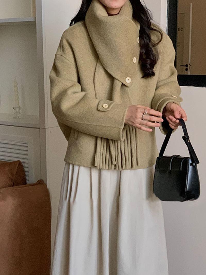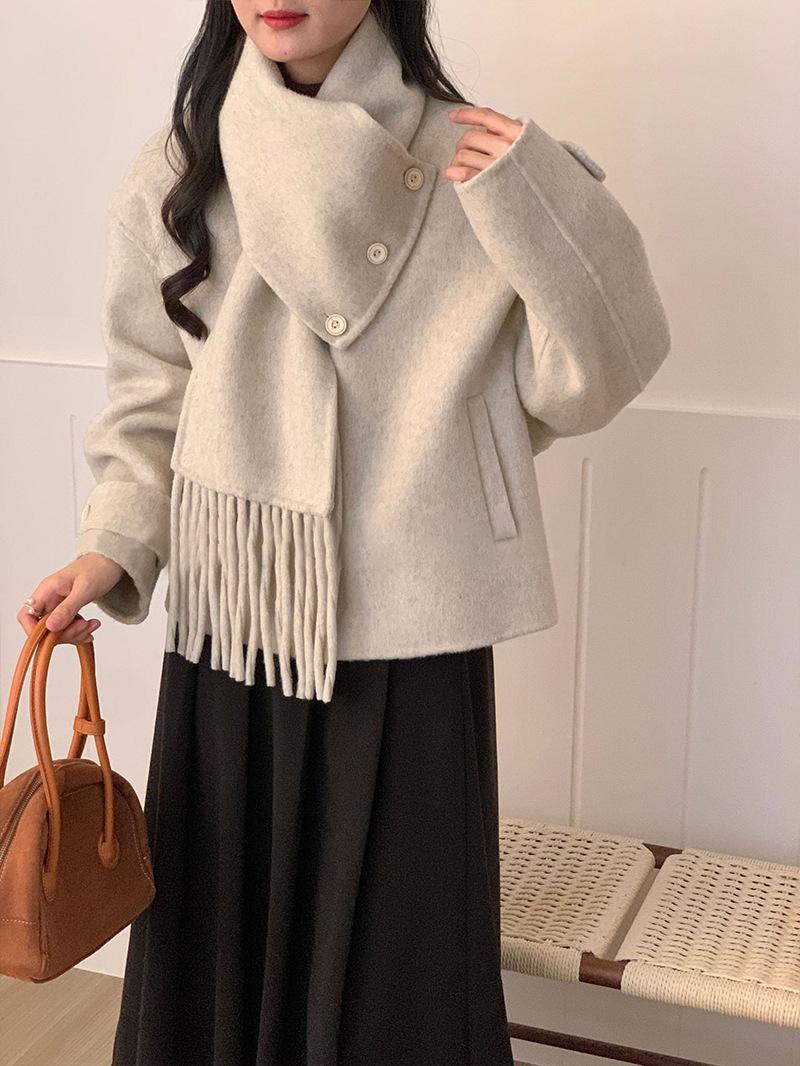 Customizable fall/winter tassel scarf v-neck detachable double-faced cashmere coat women's sweet loose fit cro...