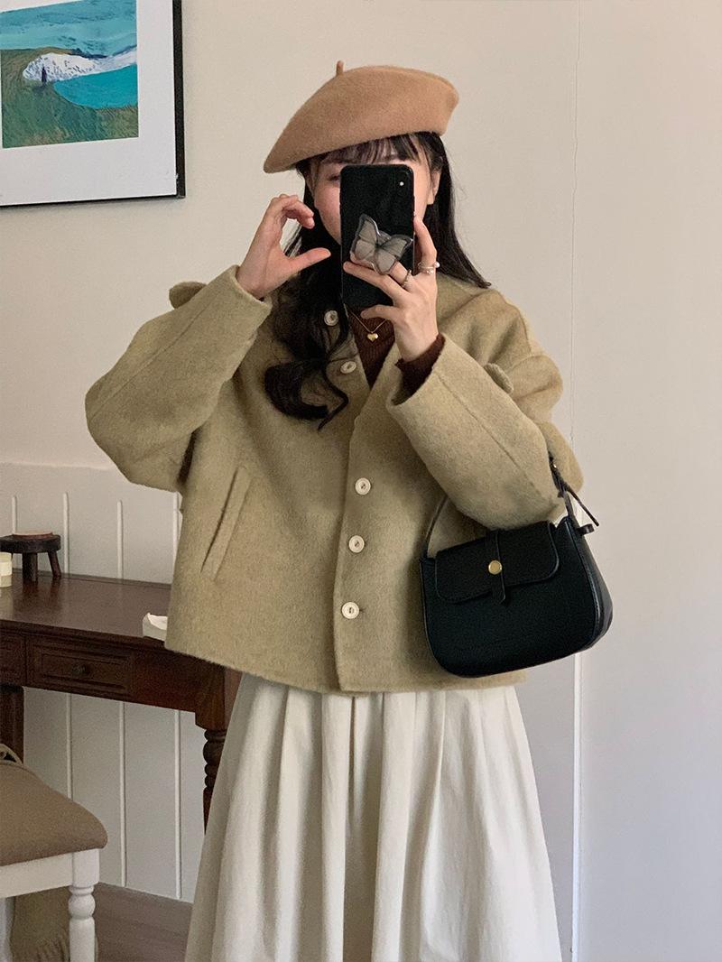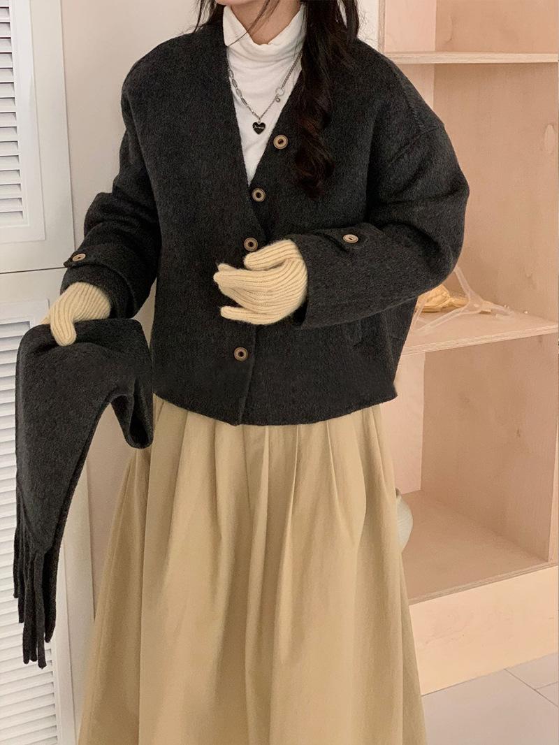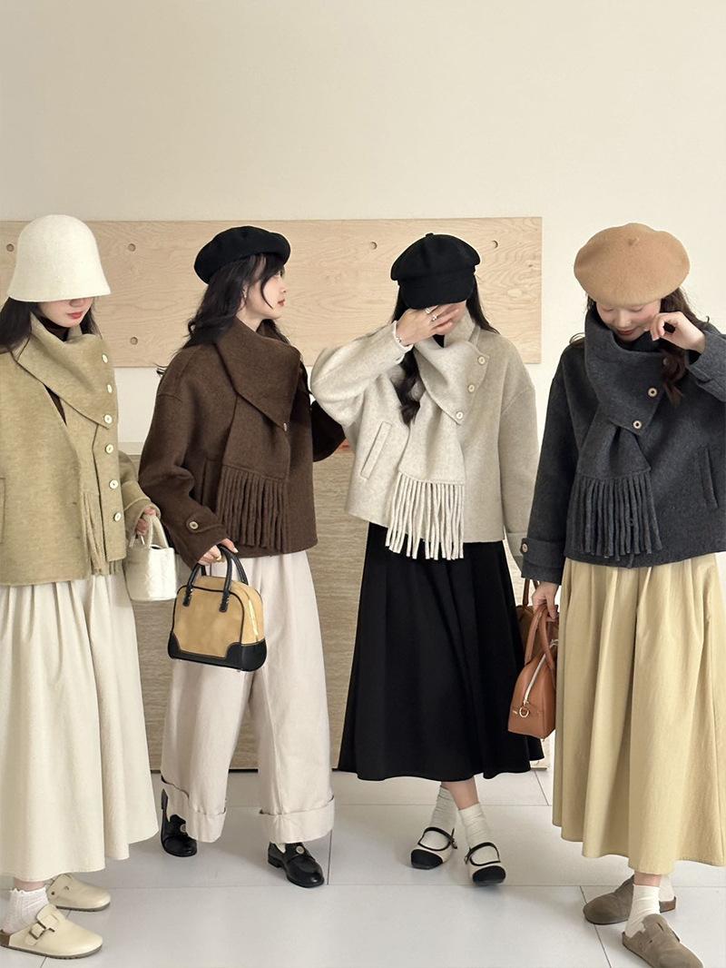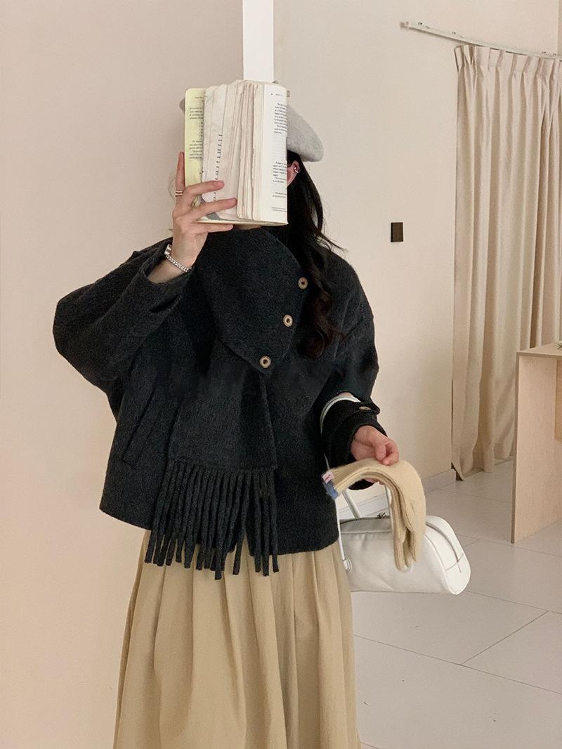 Customizable fall/winter tassel scarf v-neck detachable double-faced cashmere coat women's sweet loose fit cro...