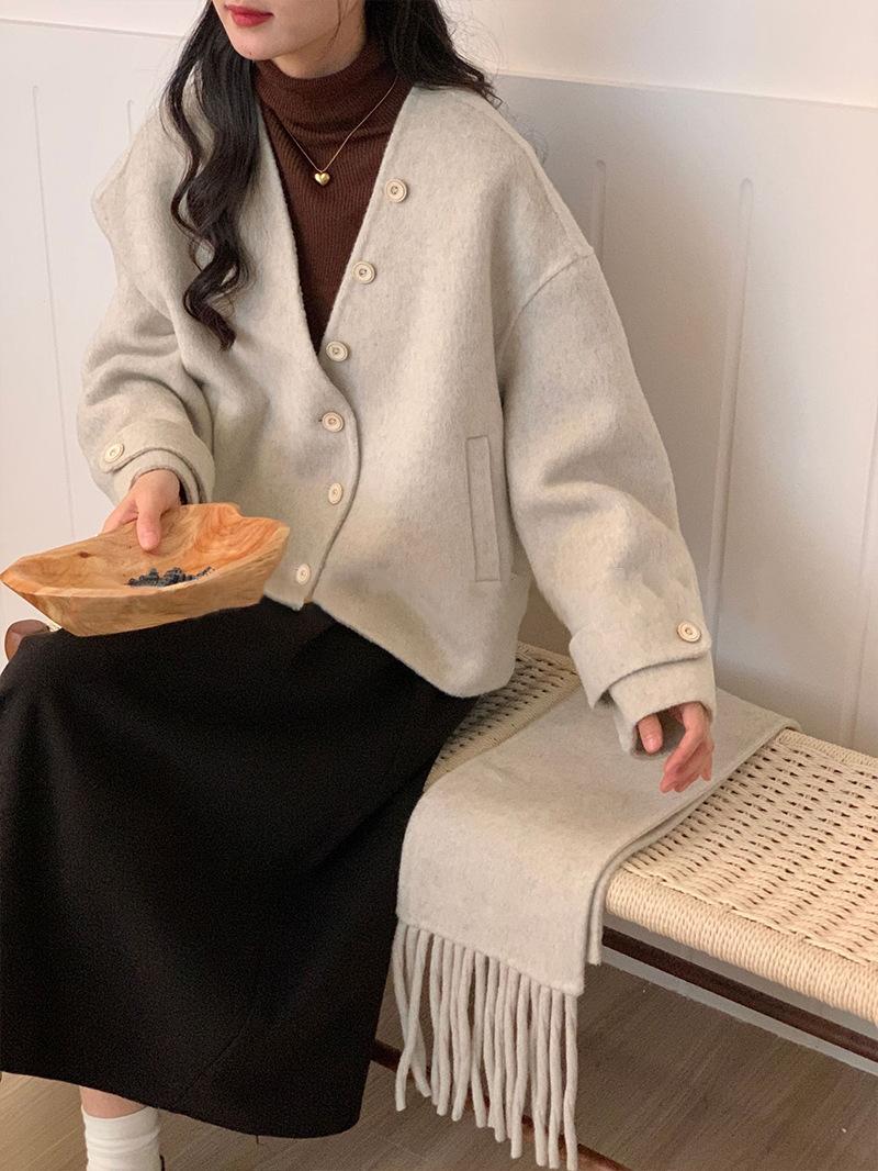 Bufanda de Borlas Personalizada de Otoño e Invierno Cuello en V Removible Cachemira de Doble Cara Abrigo para Mujer Dulce Suelto Corto Lana