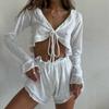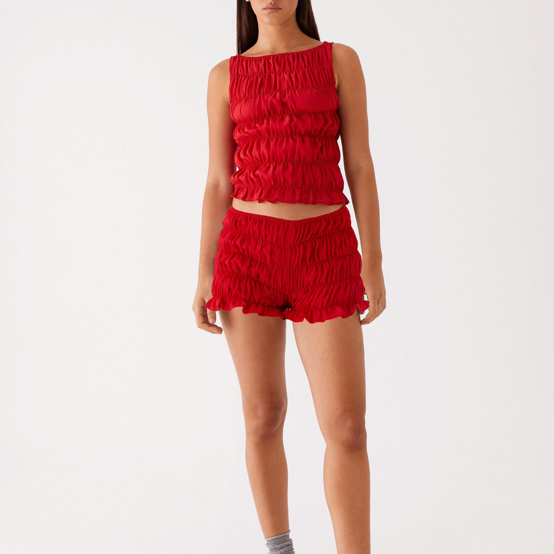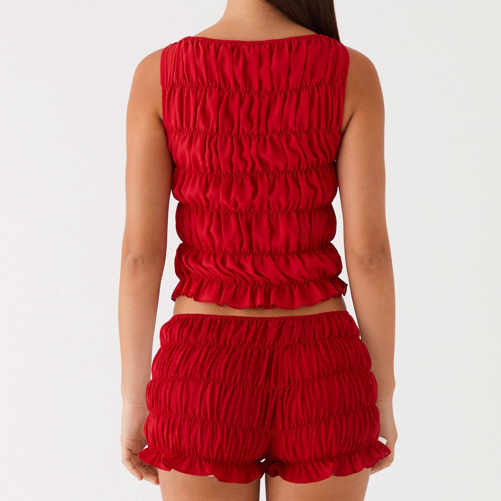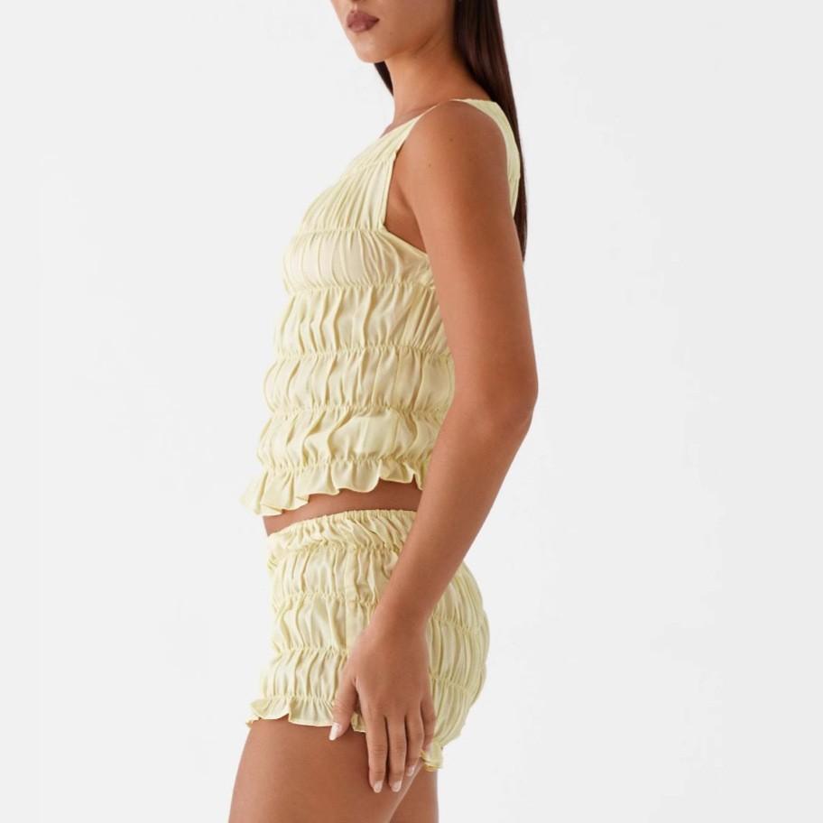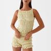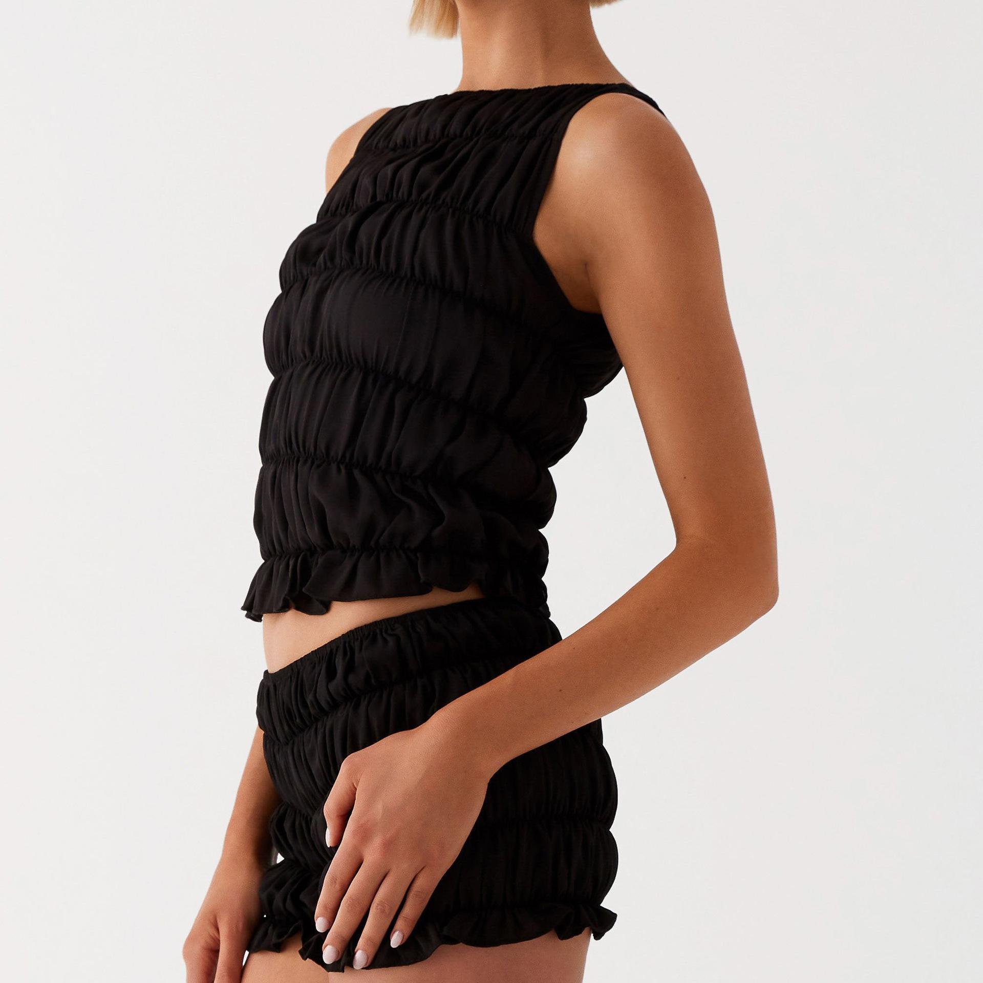 Traje de Chaleco y Shorts Casuales para Mujer Europeo y Americano 2025 Vacaciones Playa Sin Mangas Ombligo Borde Enrollado Plisado