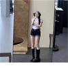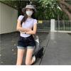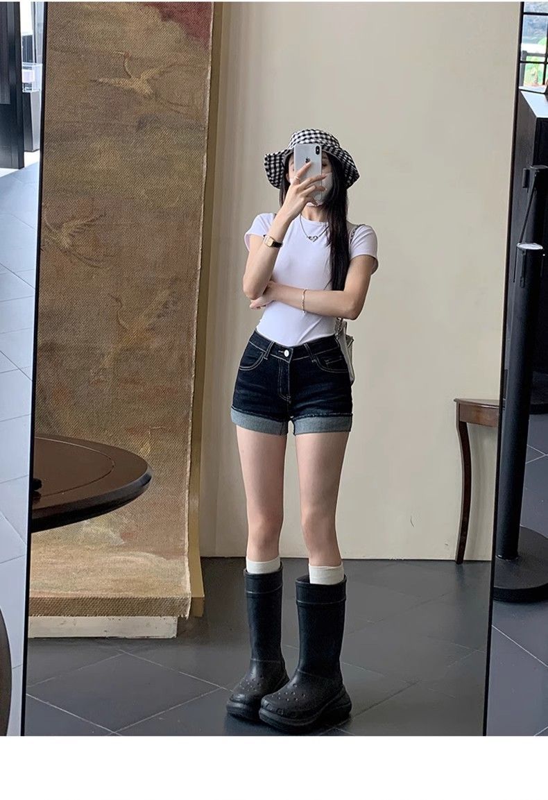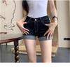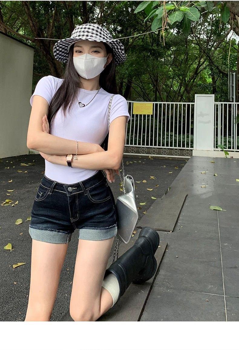 American Hot Girl Shorts Super Sexy de Cintura Alta Calças Quentes Jeans Feminino Verão Design Azul Escuro Shorts Enrolados