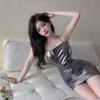 [100,000 Vendidos Por Mes] Sexy Tirantes Club Nocturno Brillante Ajustado Falda Ceñida a las Caderas Hermana Real Disco Vestido Popular