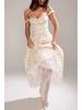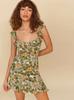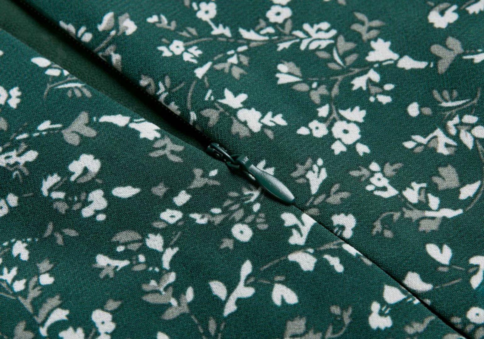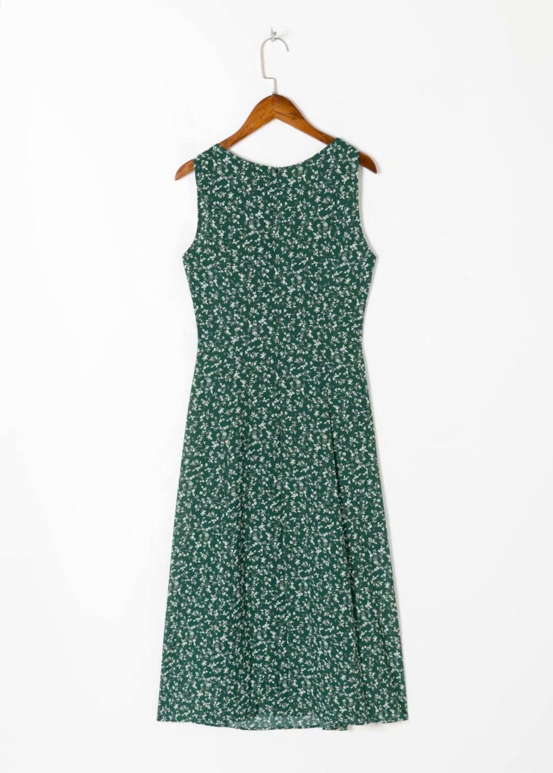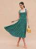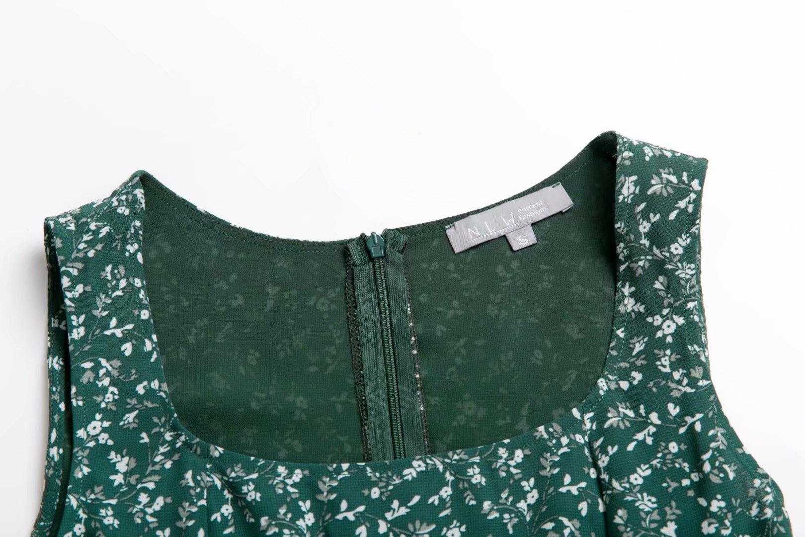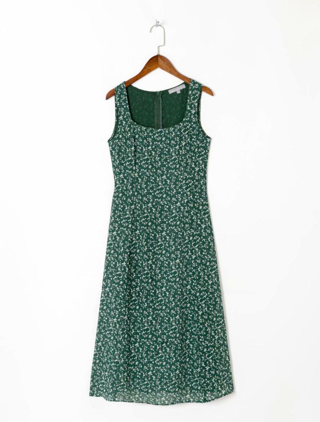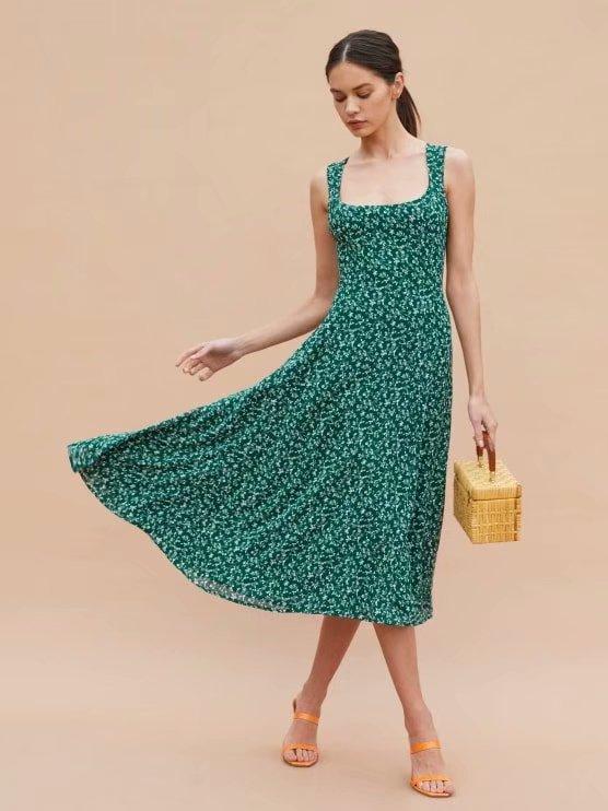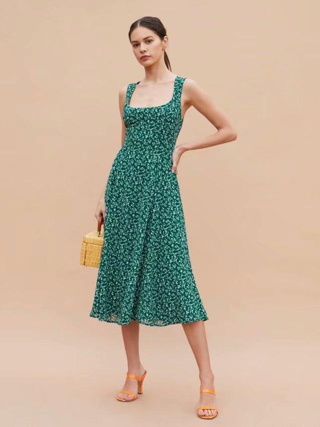 Vestido de Verano Estampado Elegante Commuter Estilo Sling Largo Medio Silueta Slim Verde Fresco Cintura Alta Silueta Slim Cuello Cuadrado