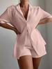 Traje Transfronterizo Europeo y Americano de Verano Tk Camisa de Color Sólido Shorts Sueltos Casual Conjunto de Dos Piezas Venta al por Mayor