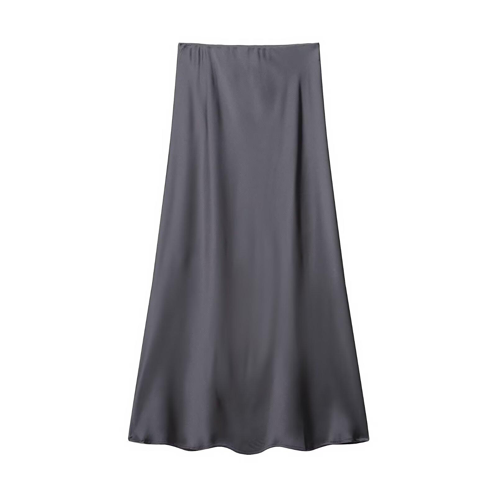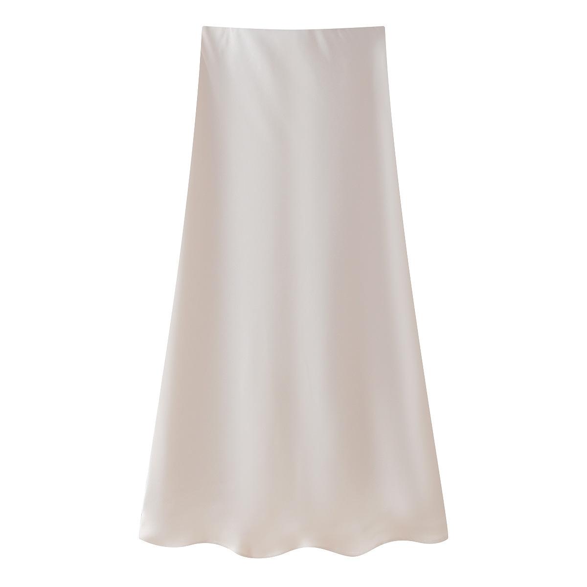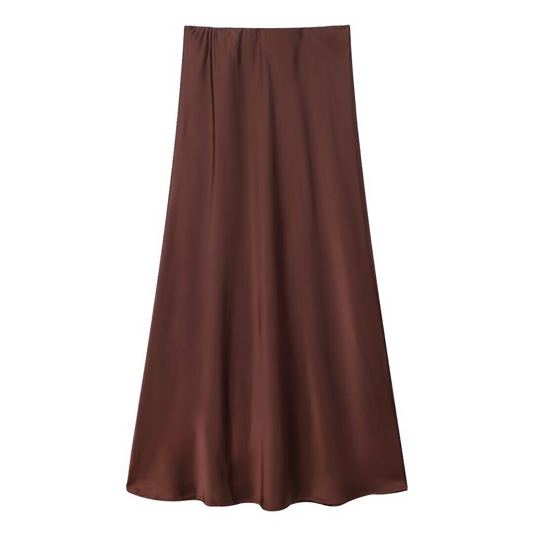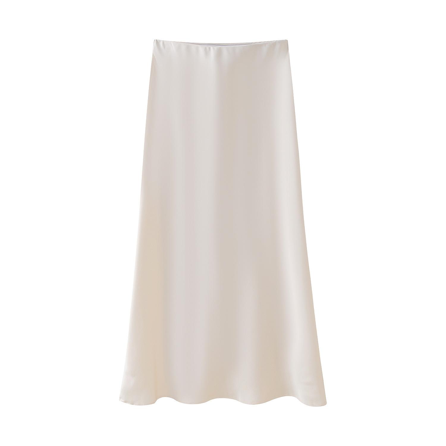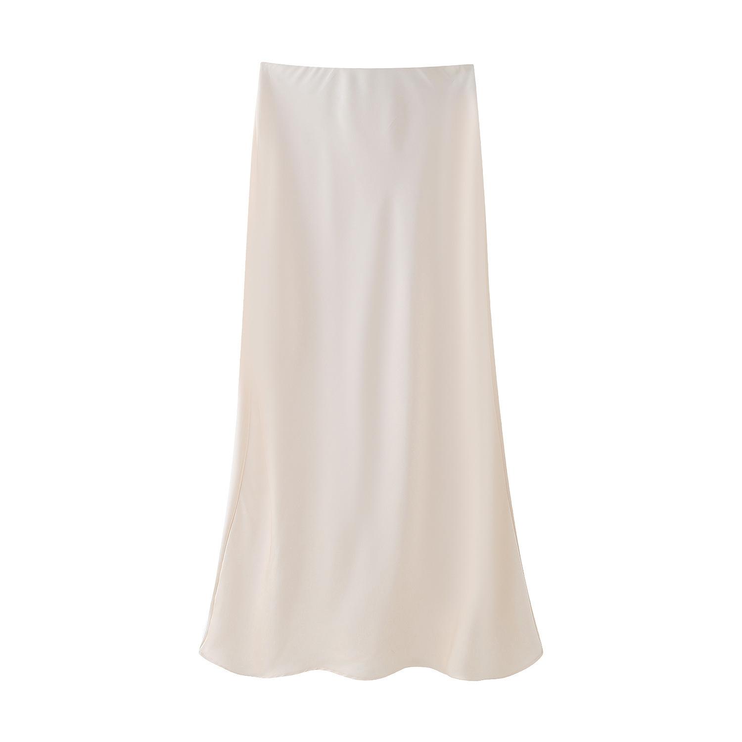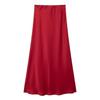 Primavera 2024 Nueva Falda Midi de Media Longitud para Mujer Estilo Europeo y Americano Moda Slim Texturizada Satén de Seda