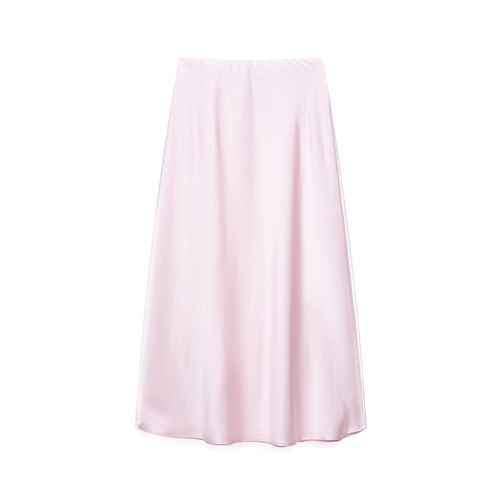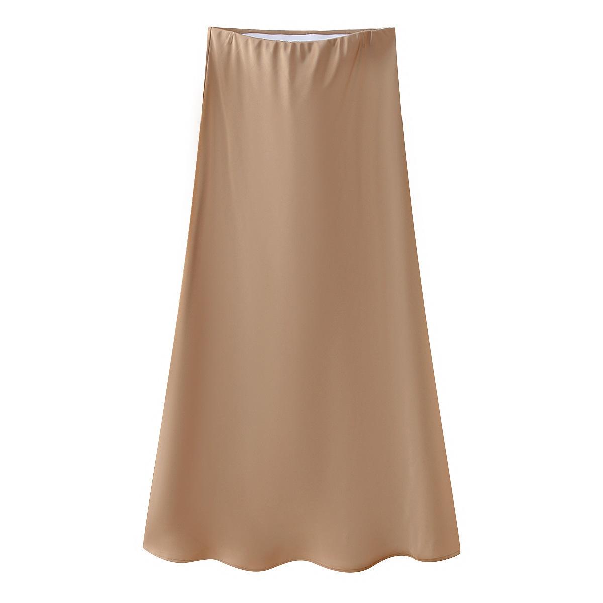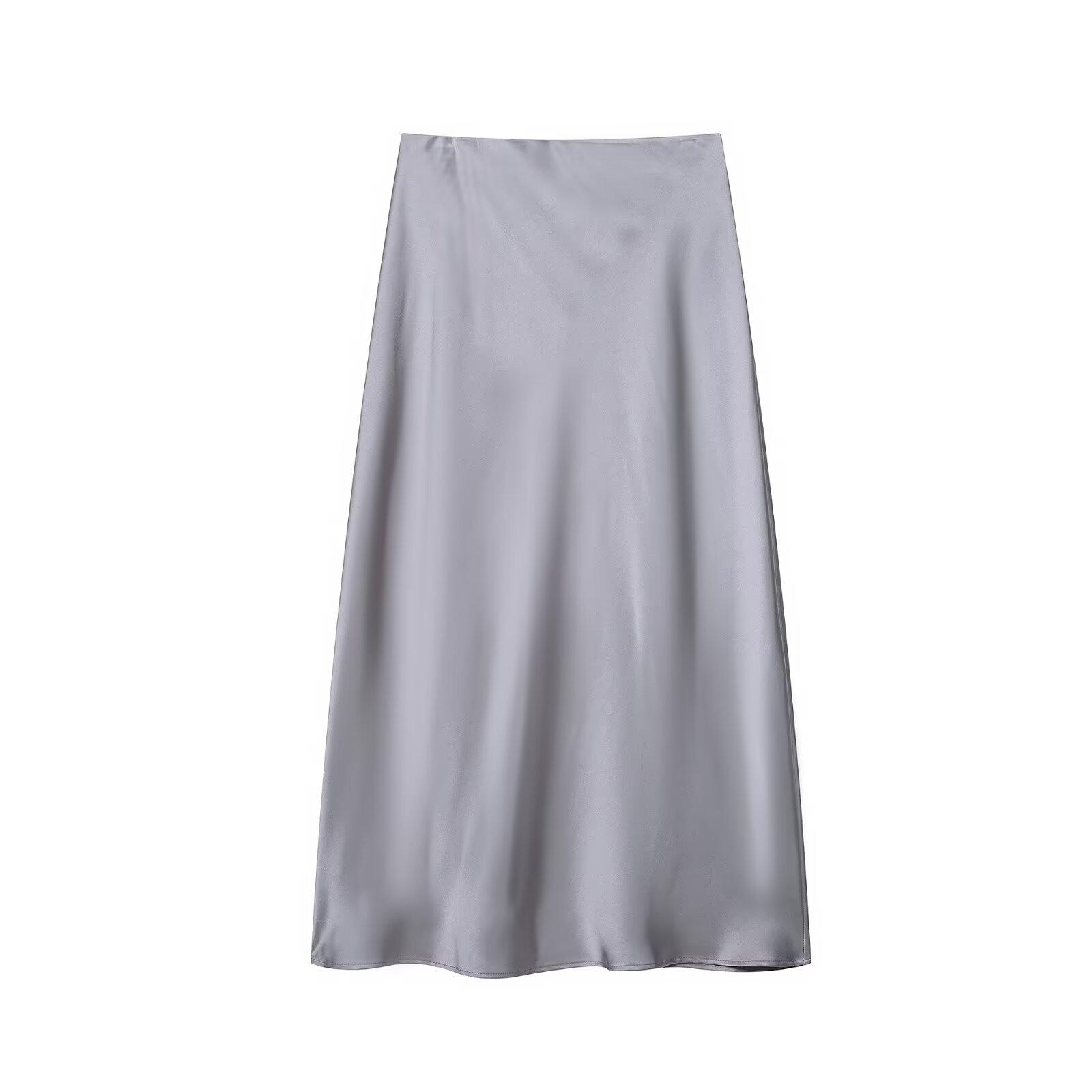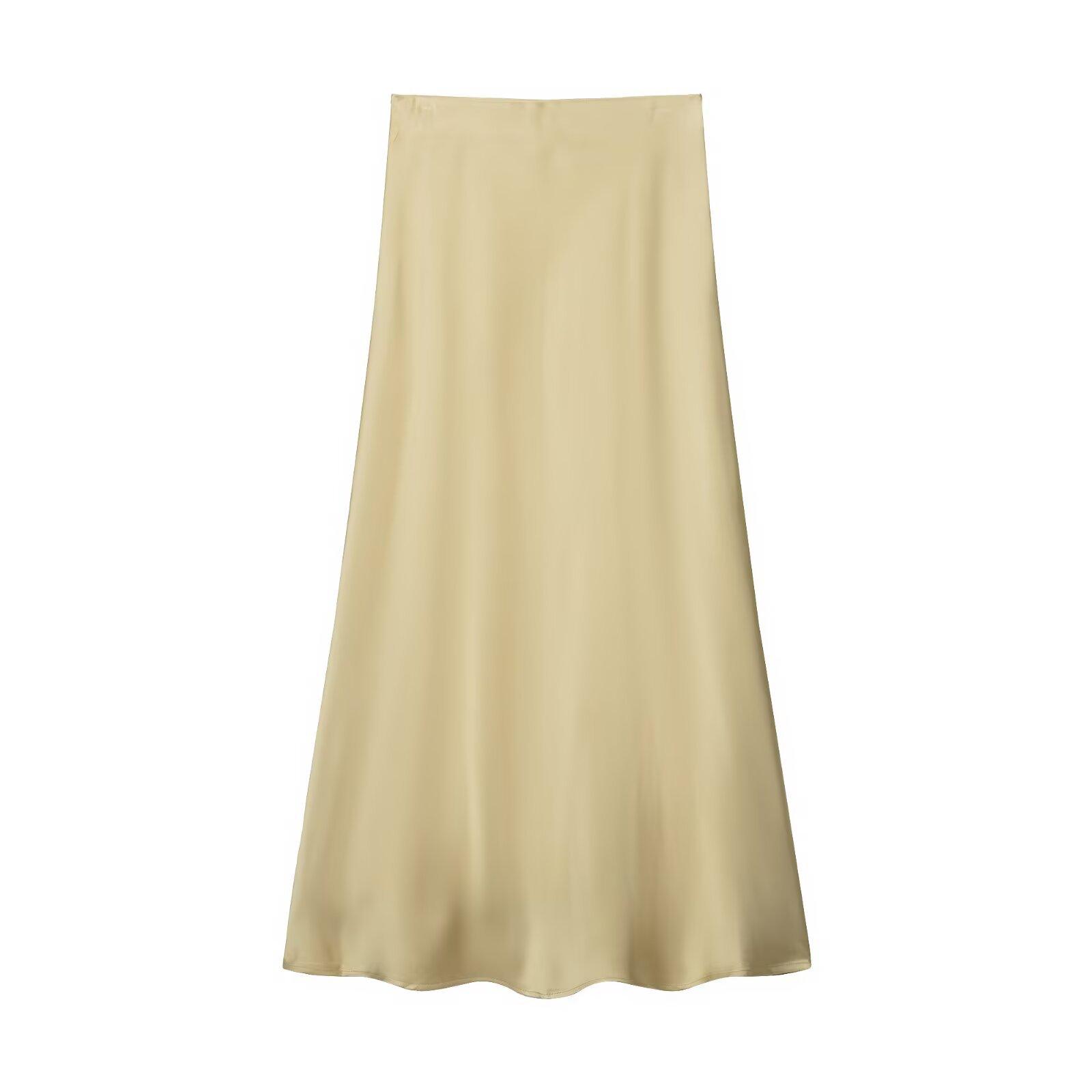Primavera 2024 Nueva Falda Midi de Media Longitud para Mujer Estilo Europeo y Americano Moda Slim Texturizada Satén de Seda