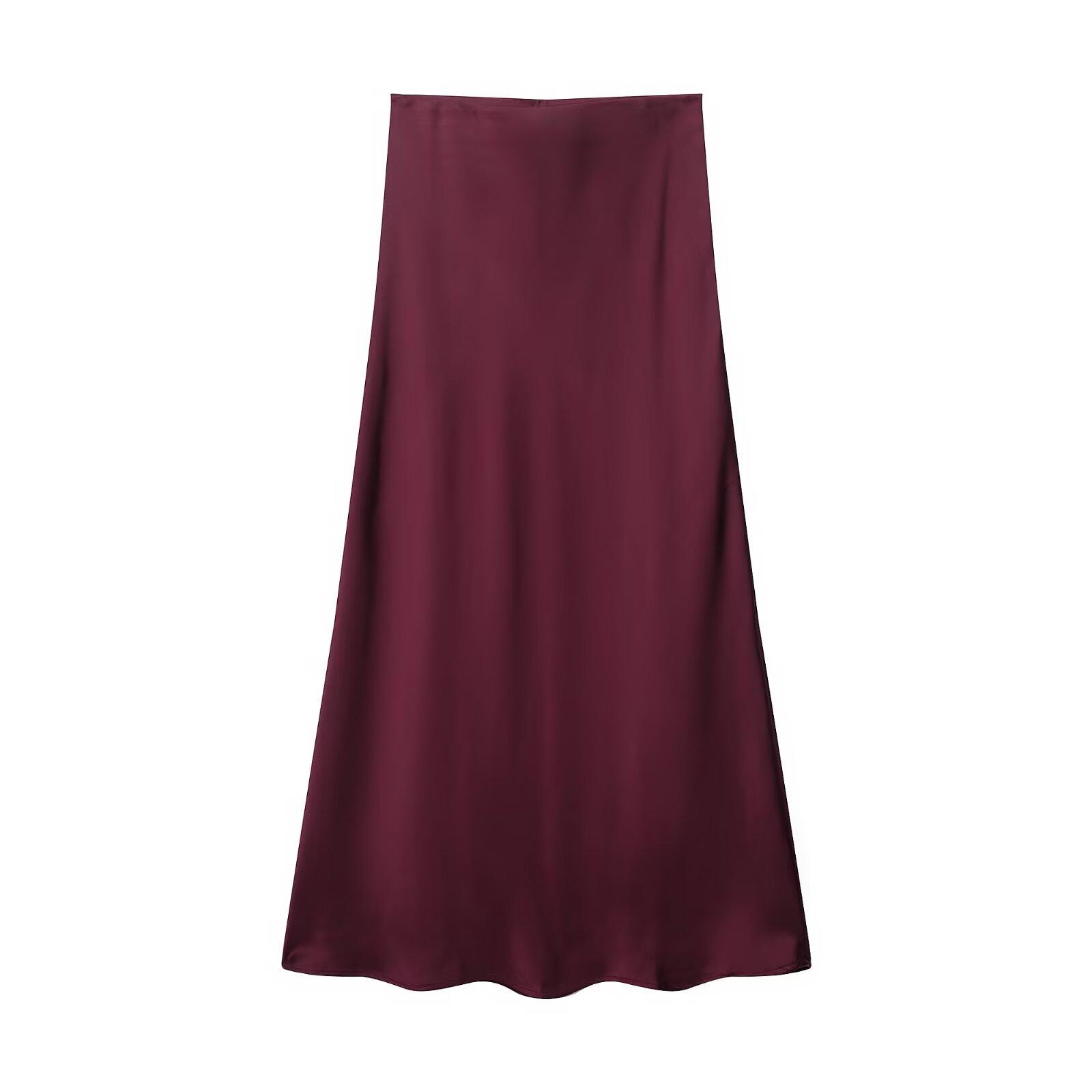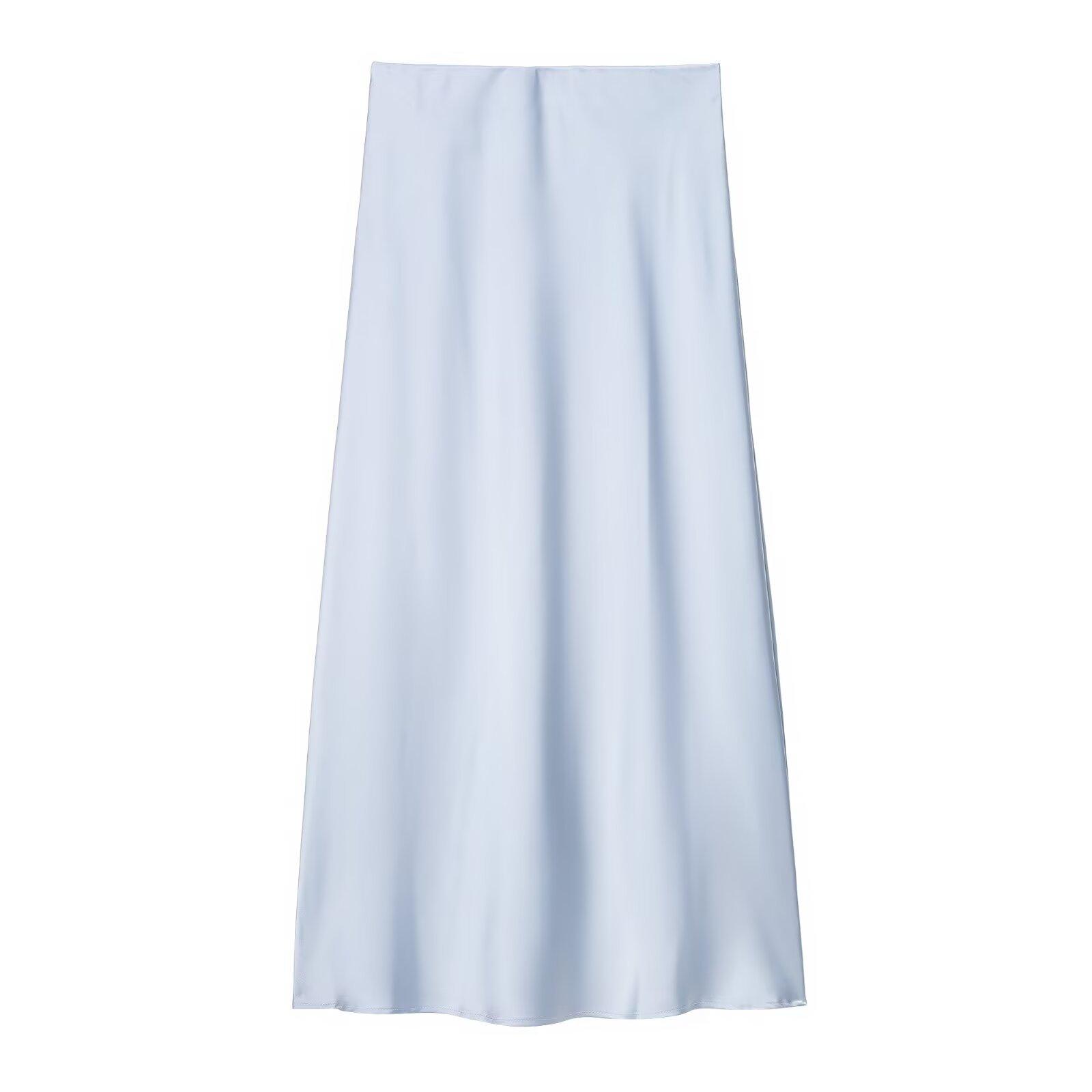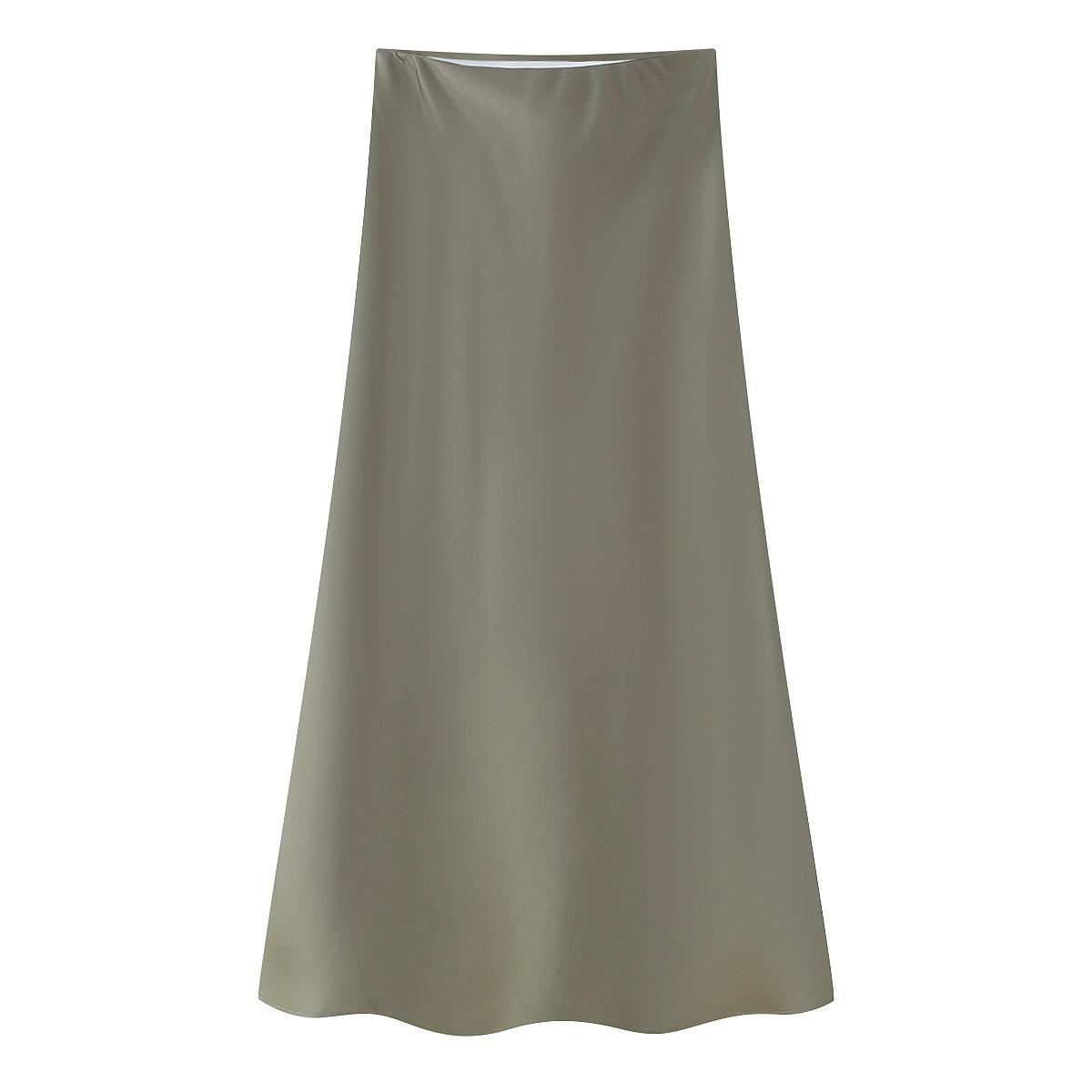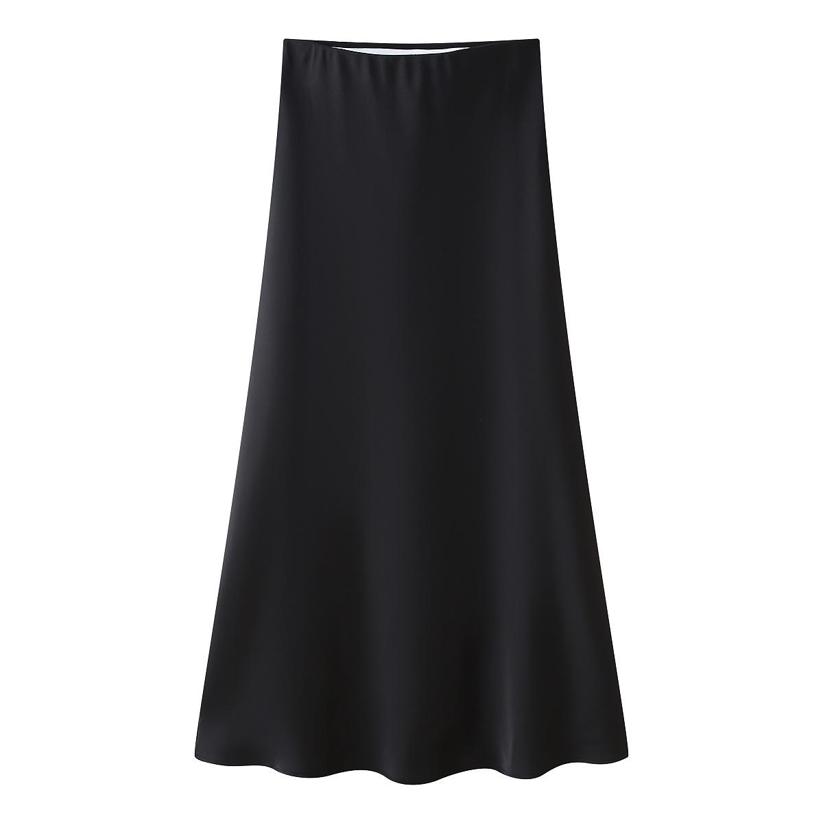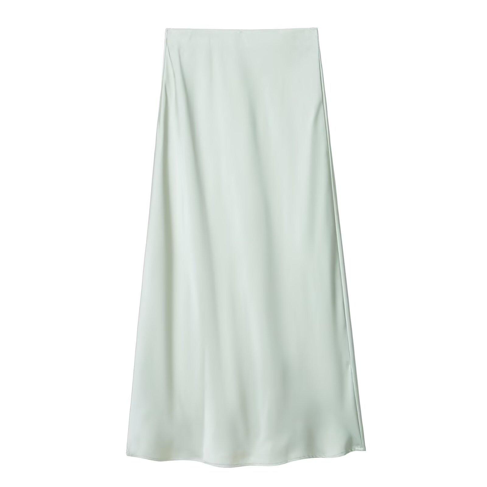Primavera 2024 Nueva Falda Midi de Media Longitud para Mujer Estilo Europeo y Americano Moda Slim Texturizada Satén de Seda