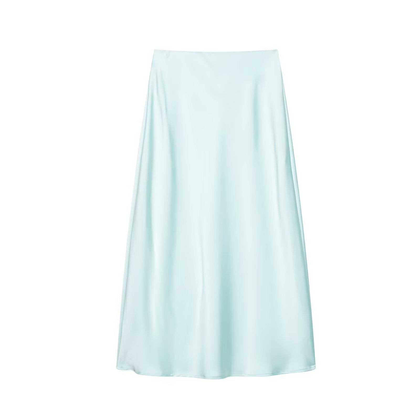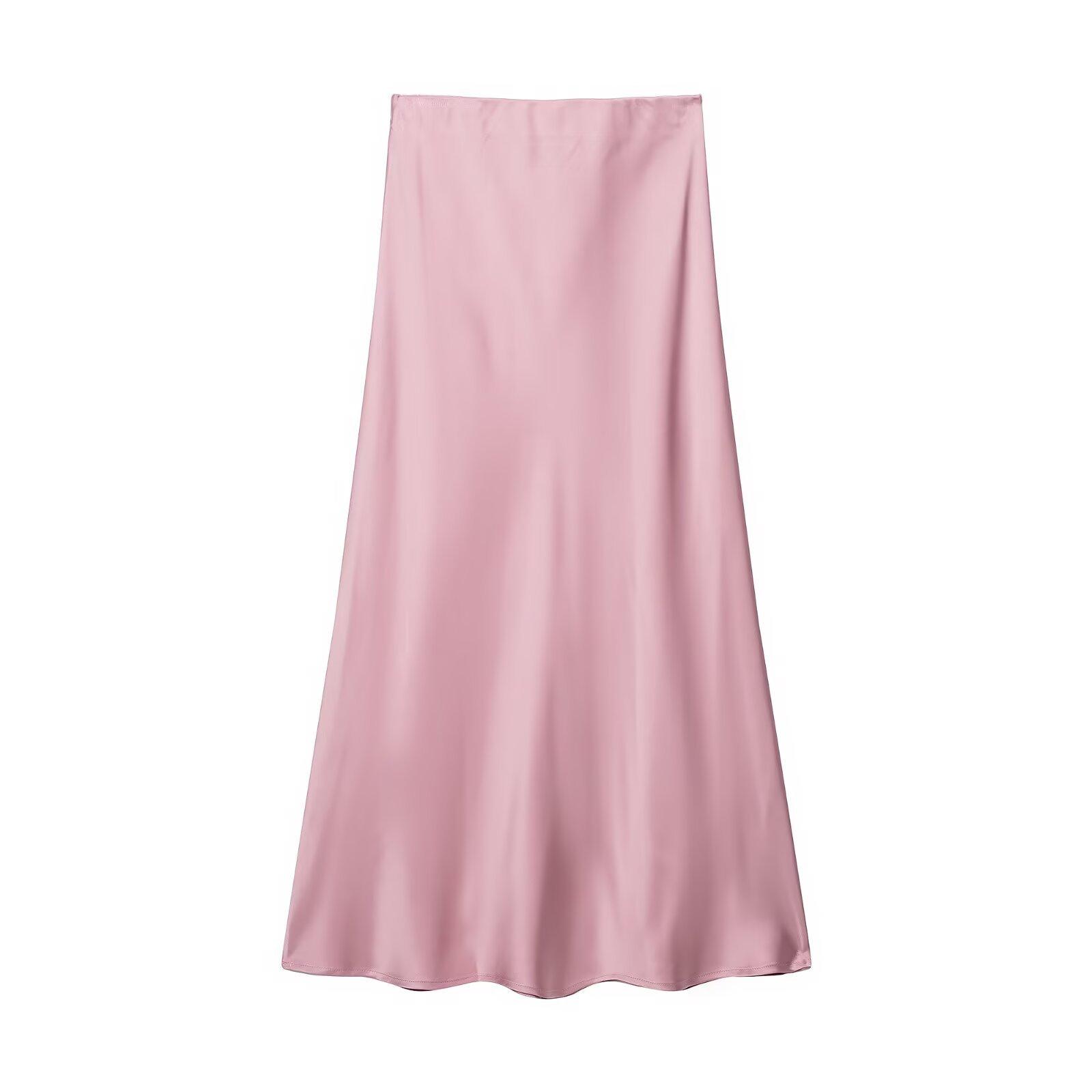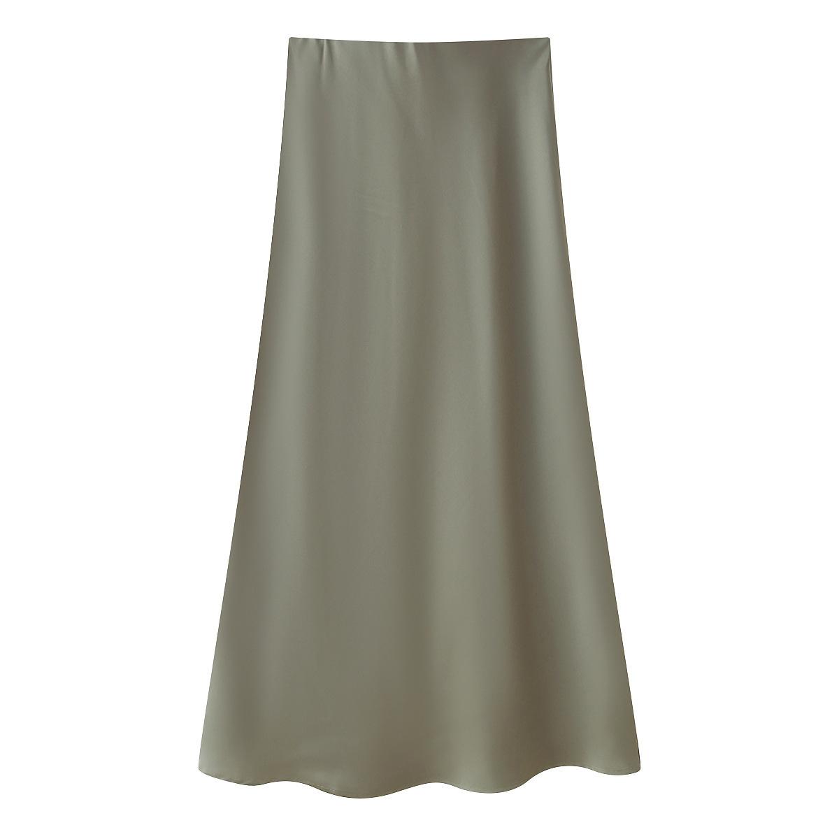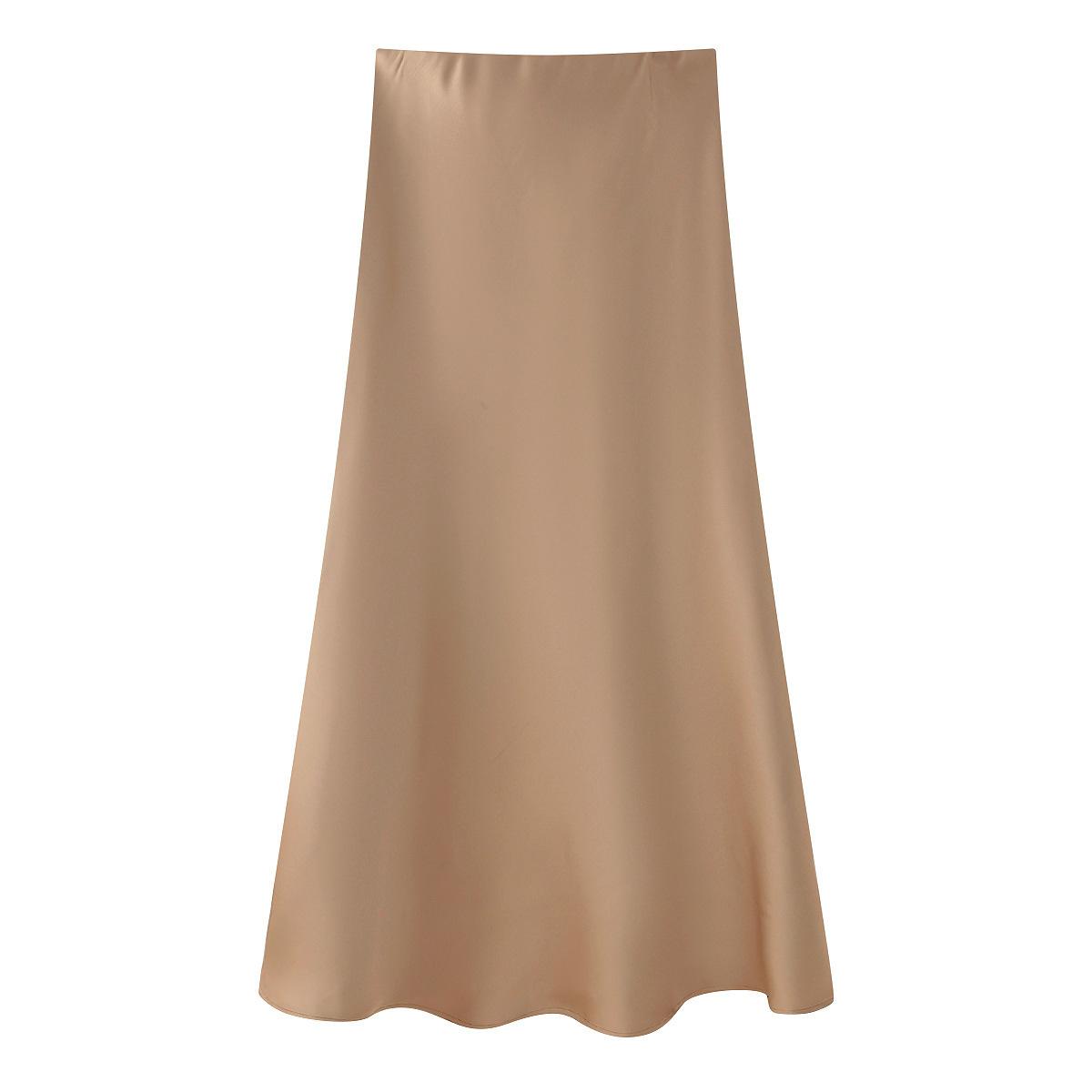 Primavera 2024 Nueva Falda Midi de Media Longitud para Mujer Estilo Europeo y Americano Moda Slim Texturizada Satén de Seda