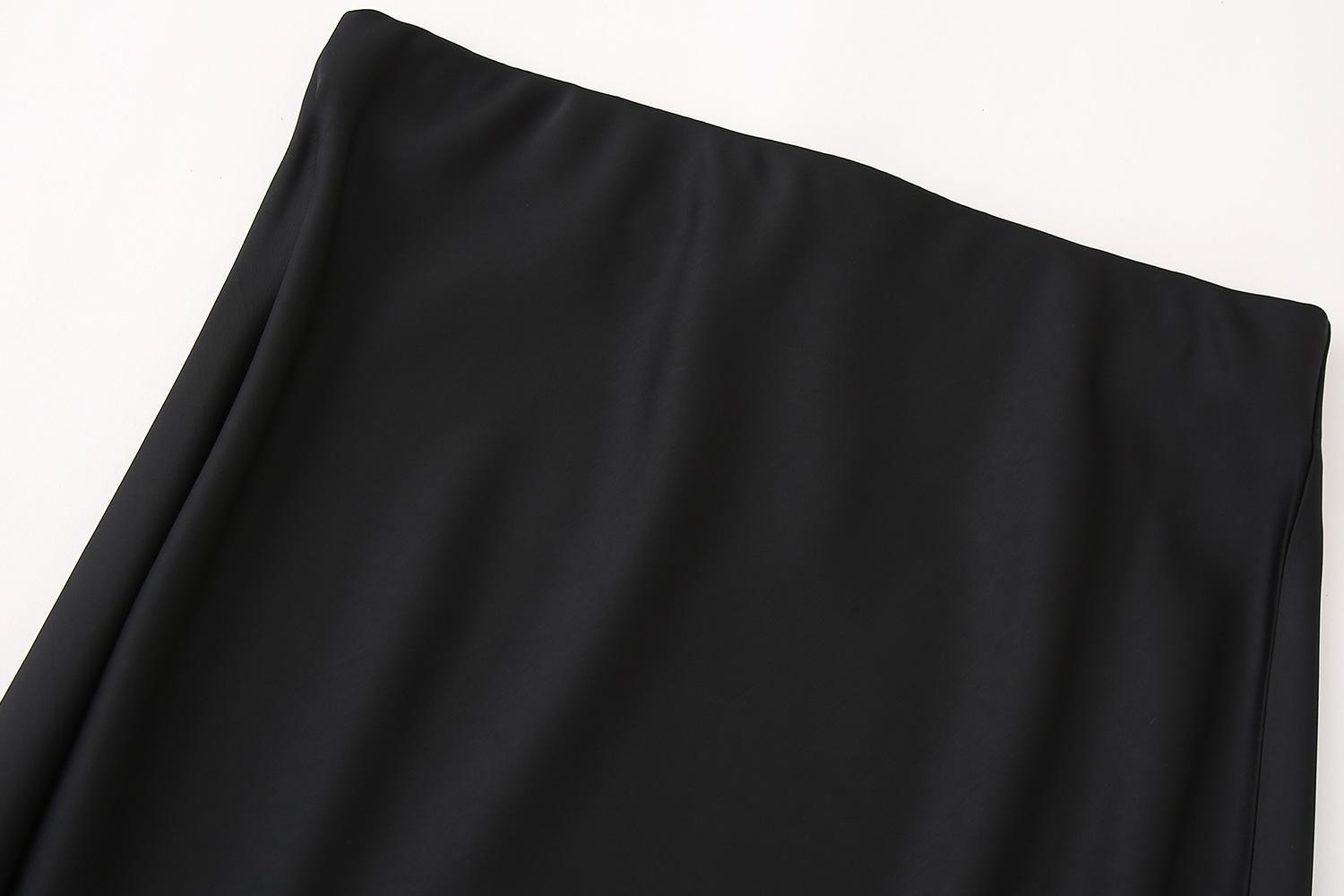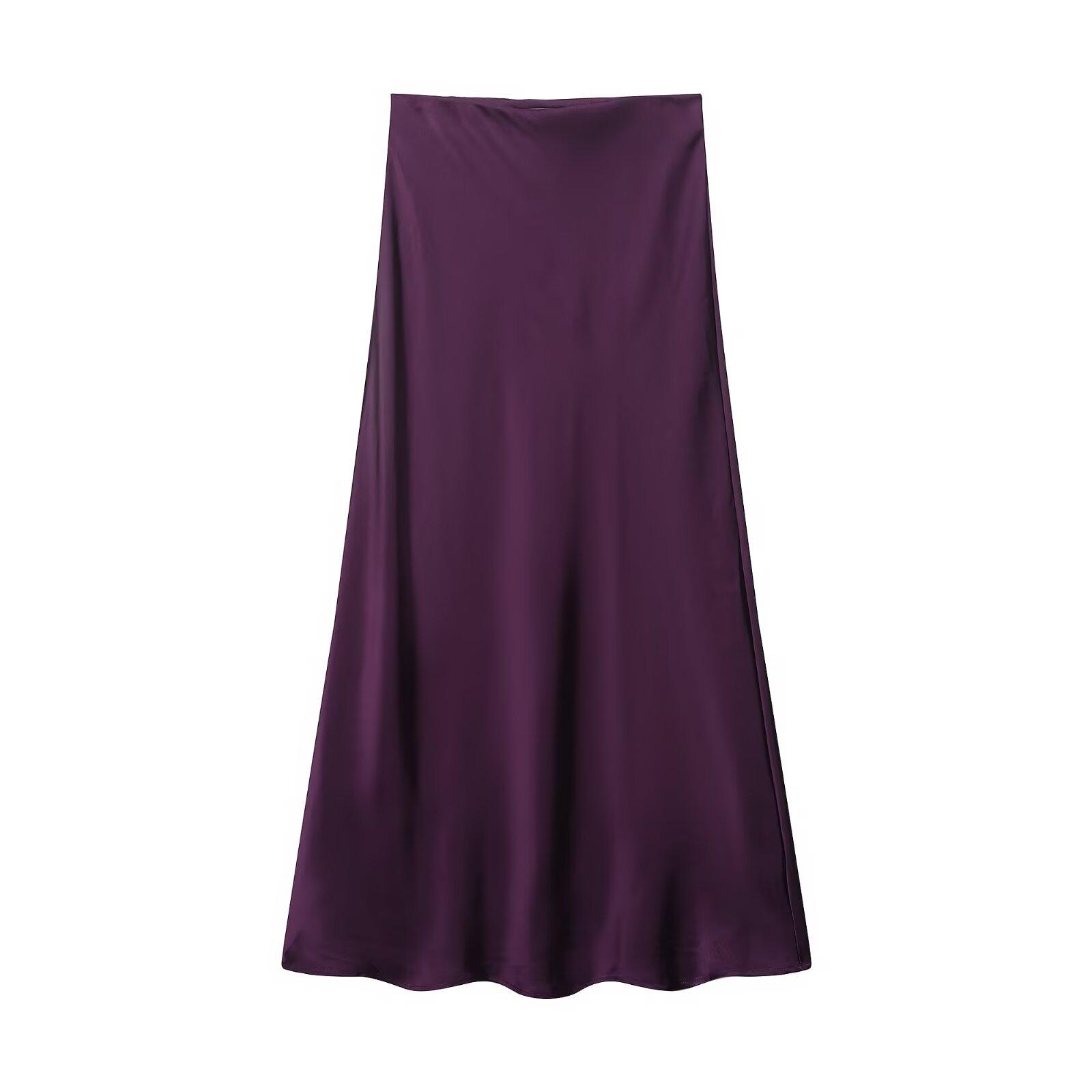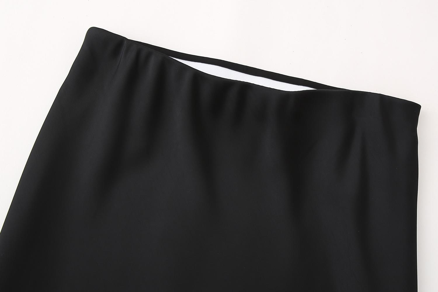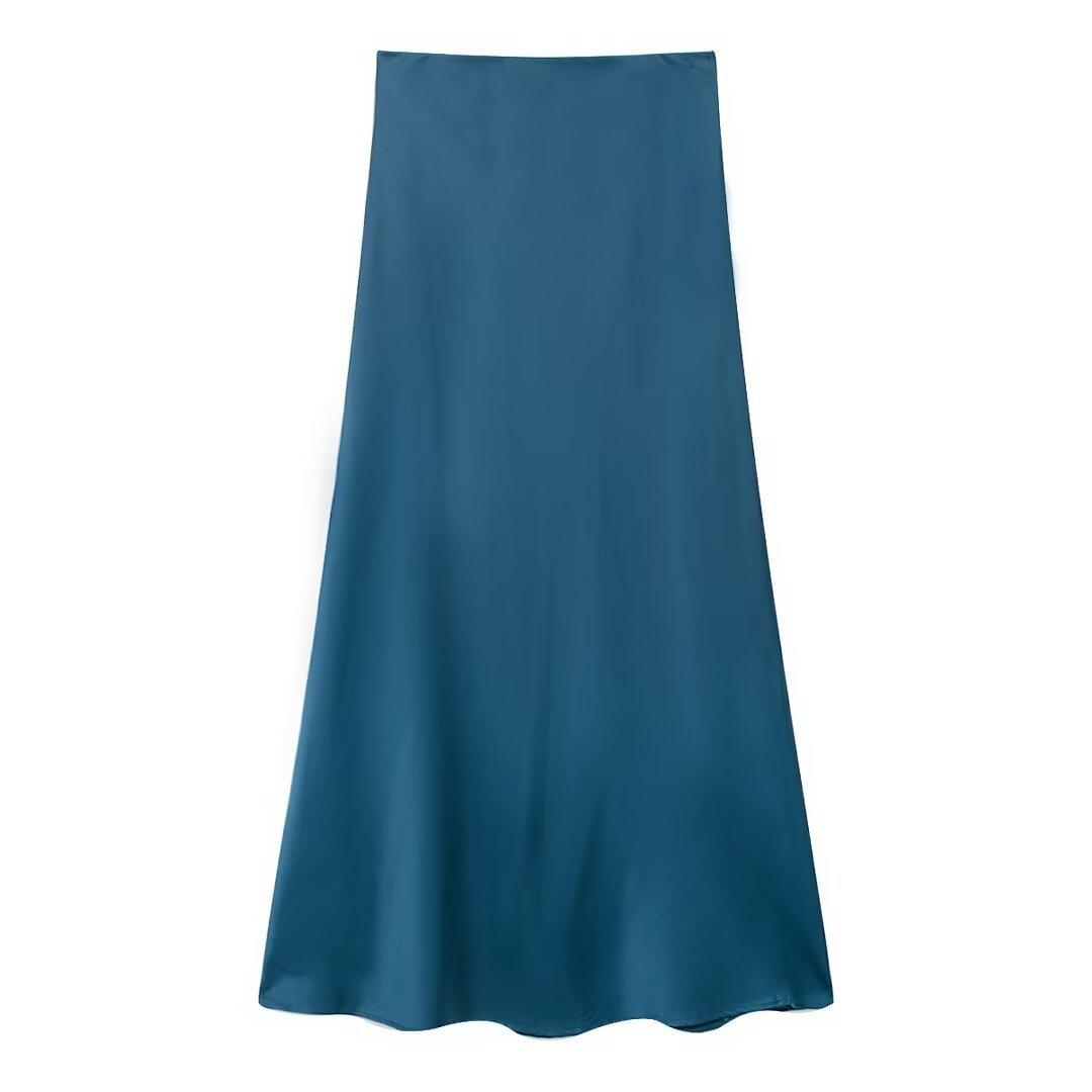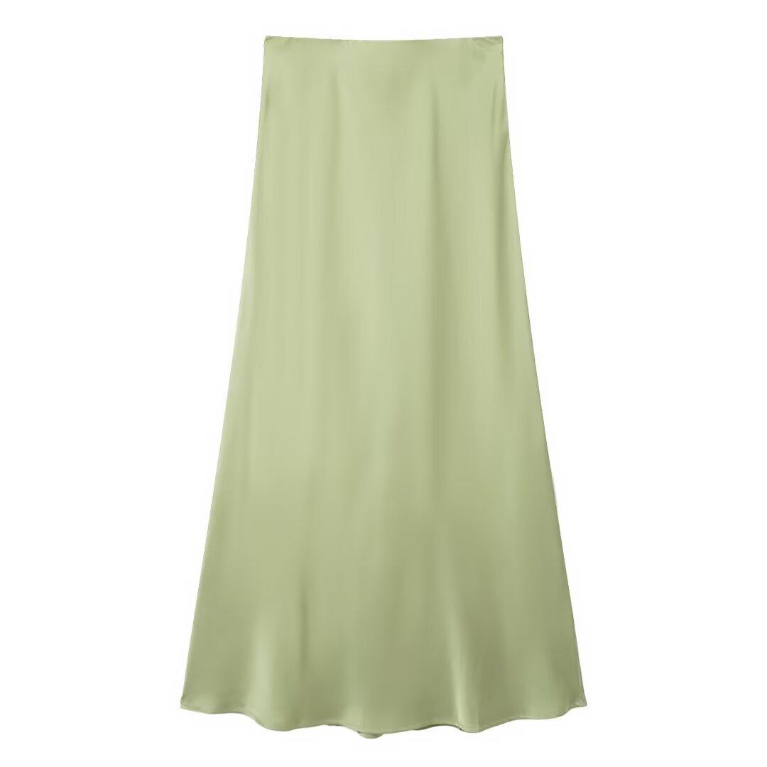 Primavera 2024 Nueva Falda Midi de Media Longitud para Mujer Estilo Europeo y Americano Moda Slim Texturizada Satén de Seda