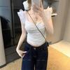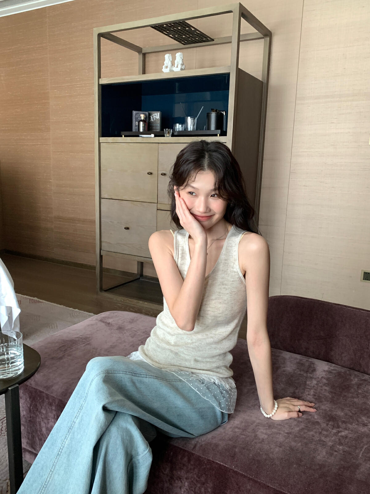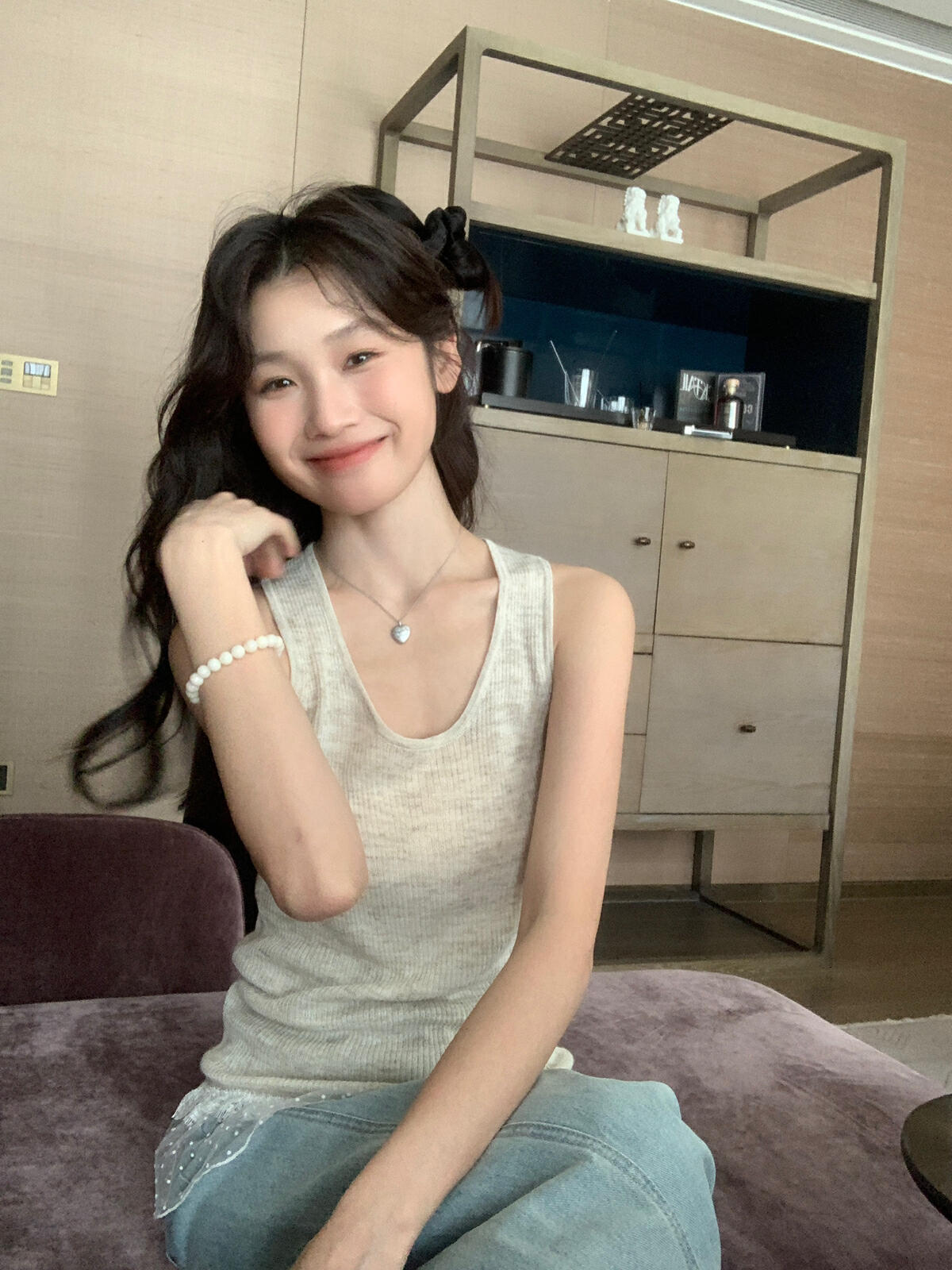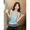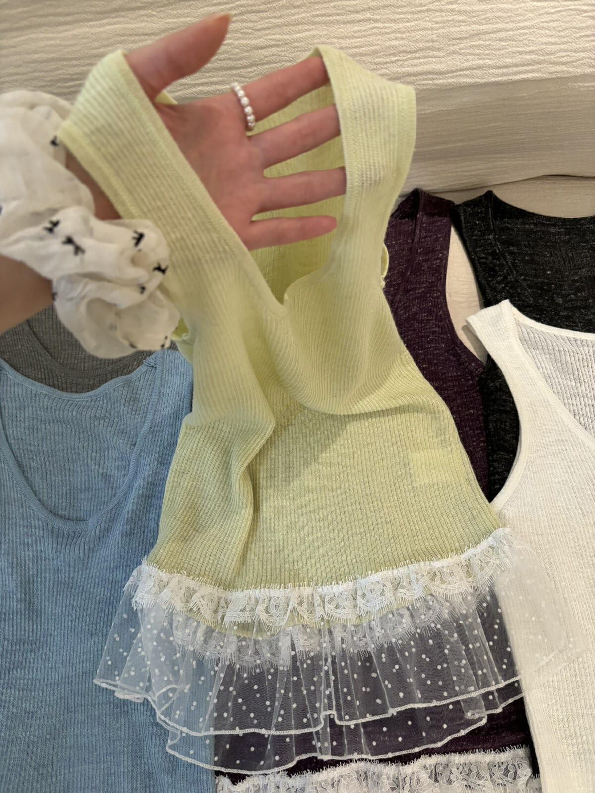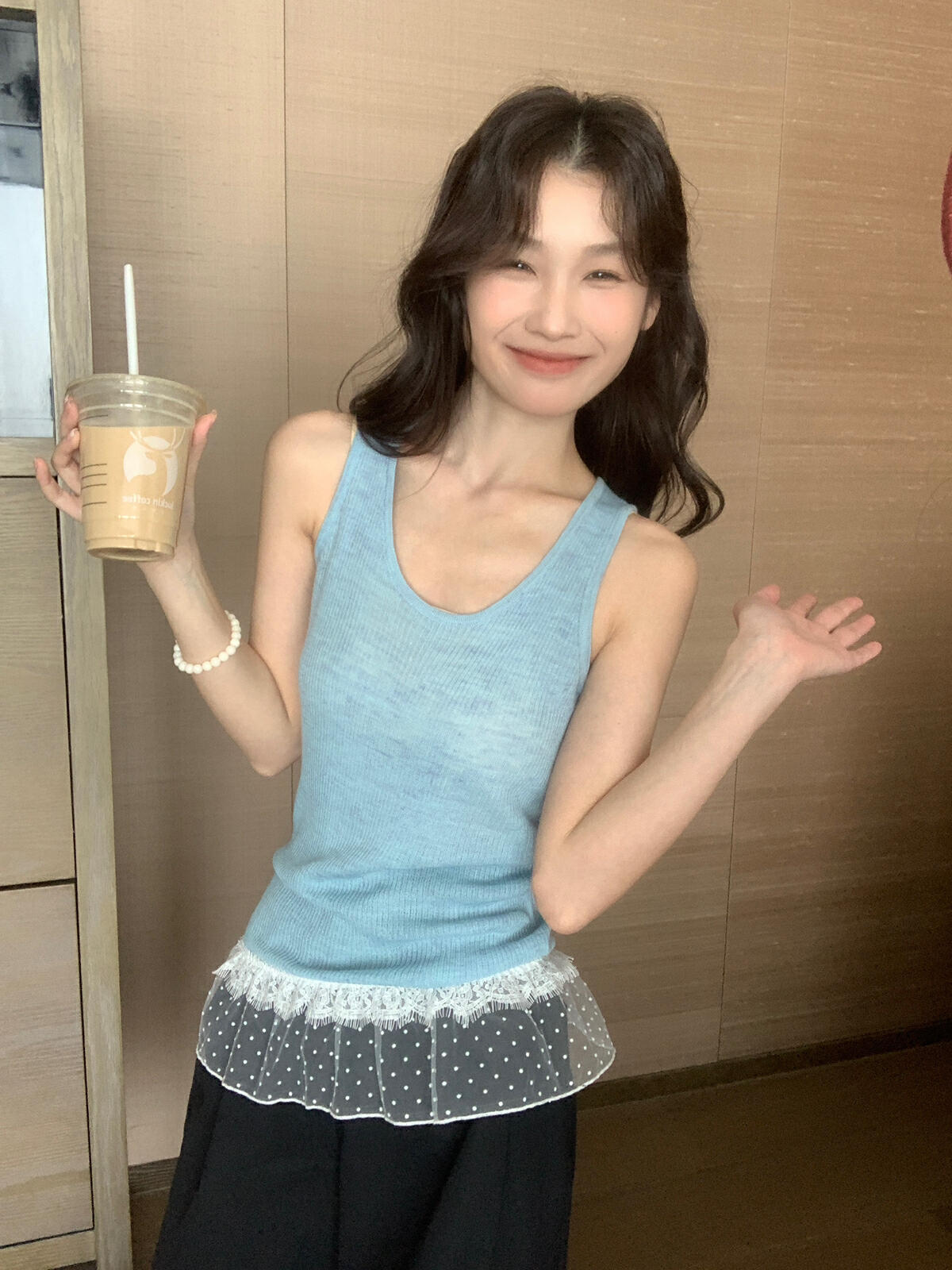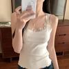Camiseta sin mangas con encaje para mujer, verano, estilo coreano, pequeña, fresca y dulce, para llevar en capas, top básico