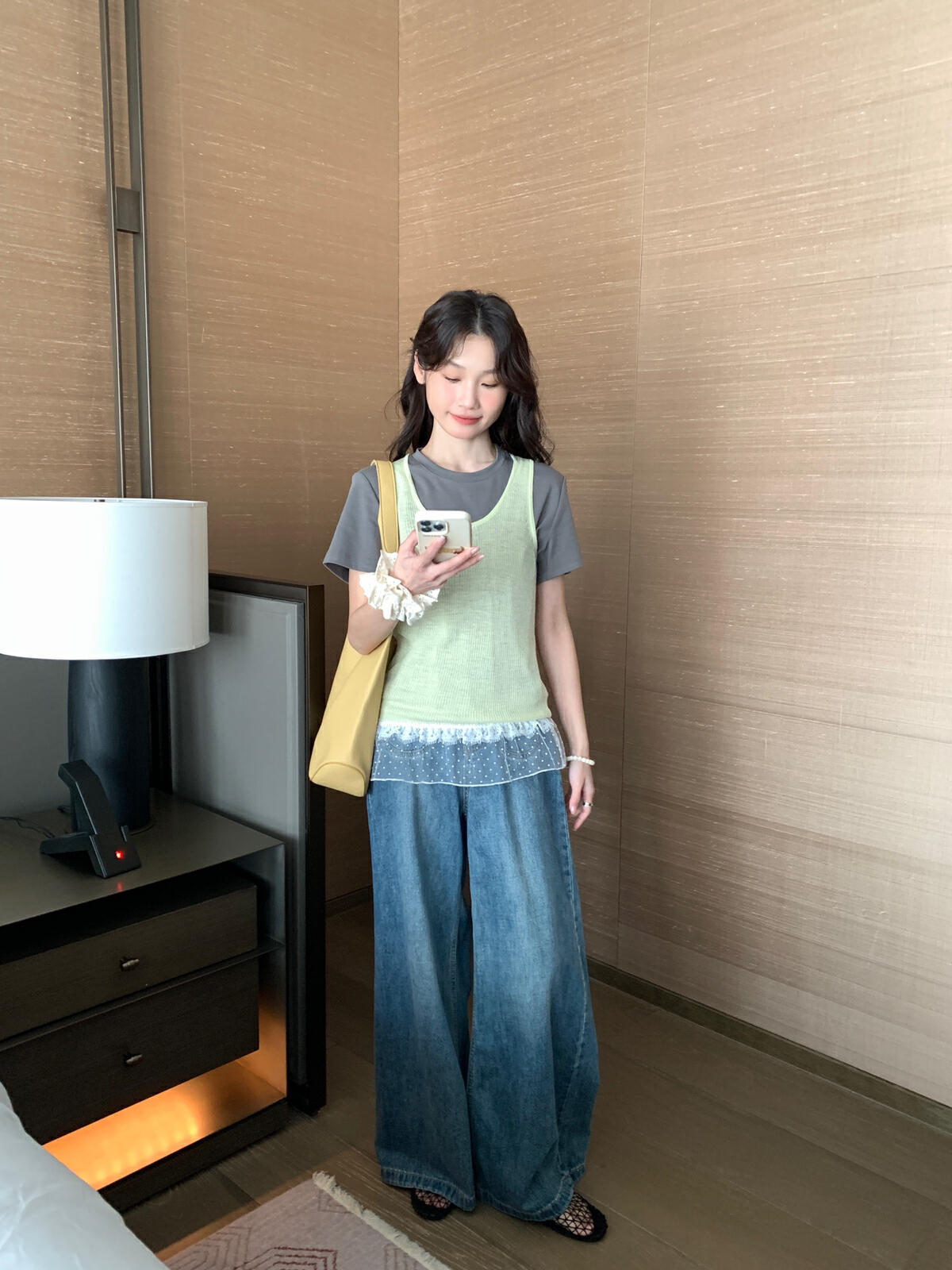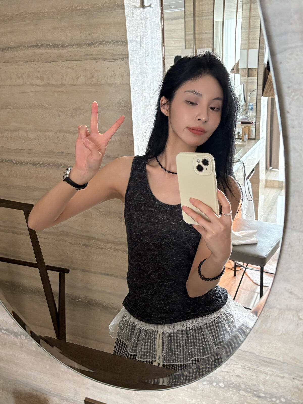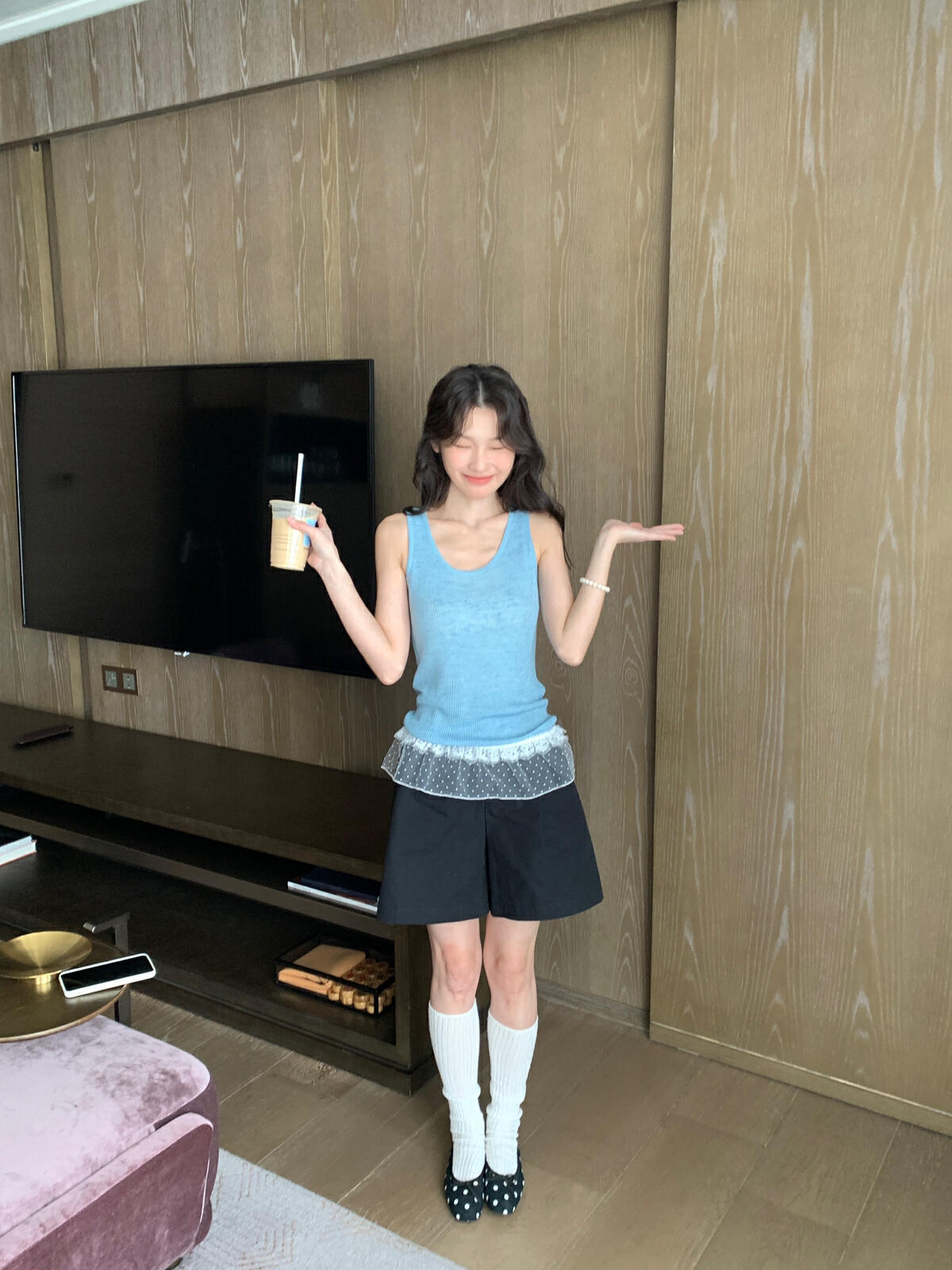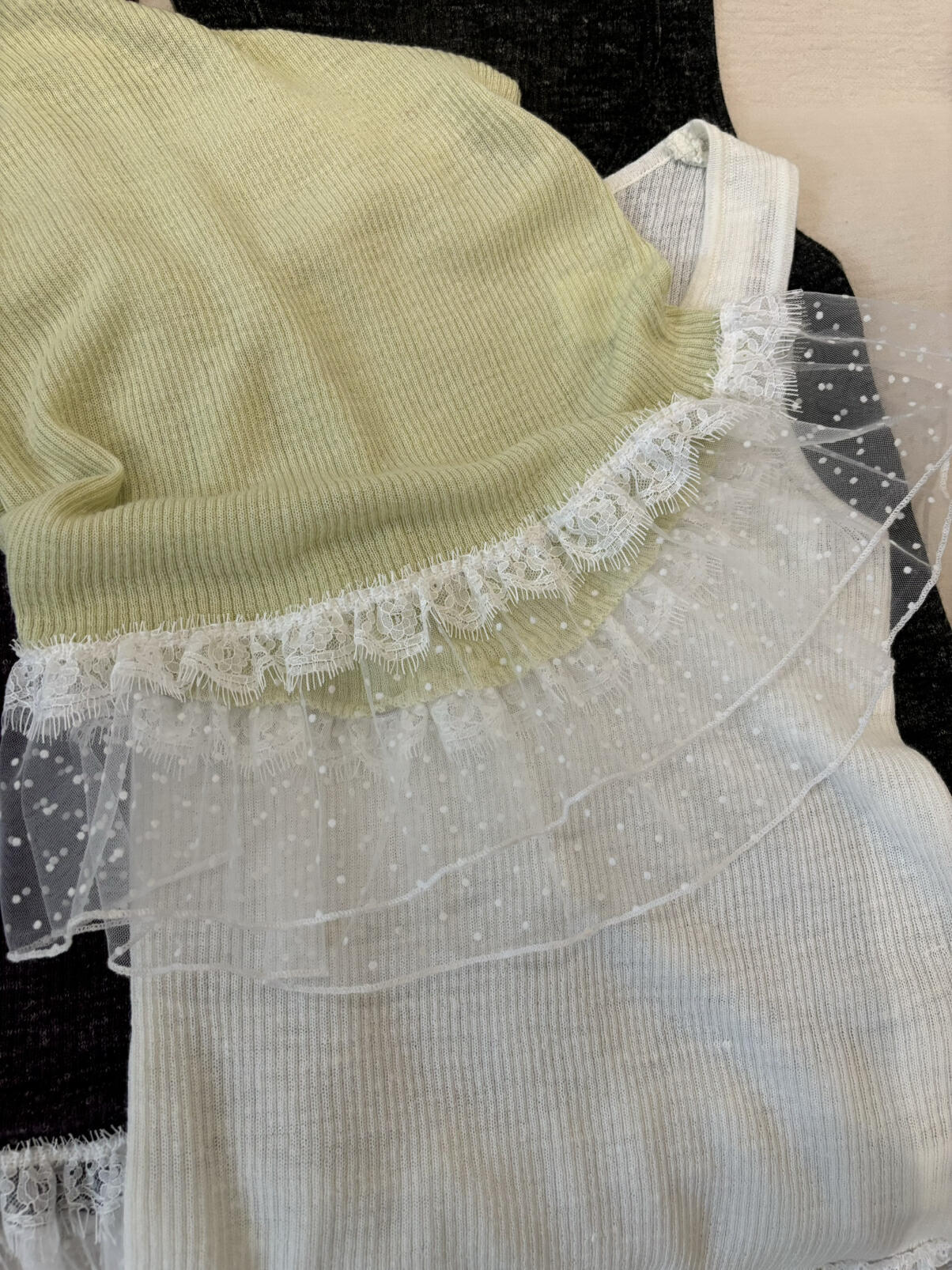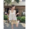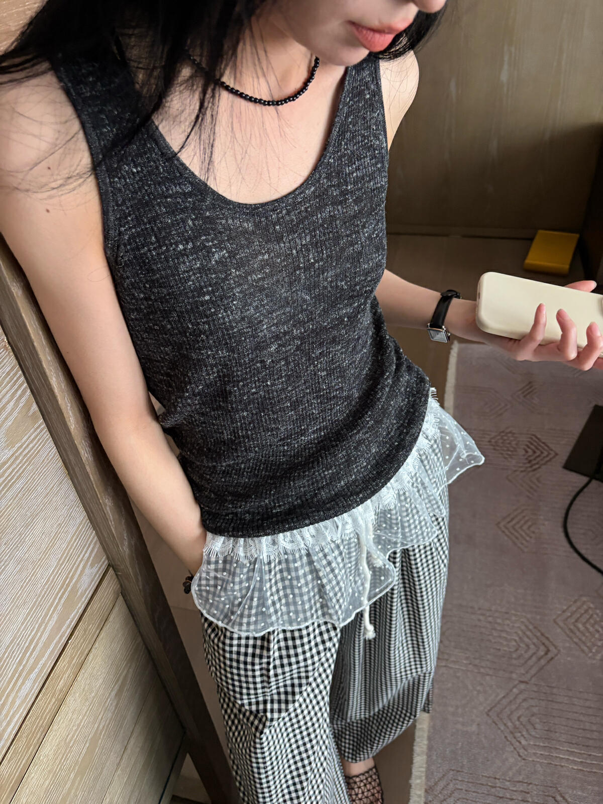 Camiseta sin mangas con encaje para mujer, verano, estilo coreano, pequeña, fresca y dulce, para llevar en capas, top básico