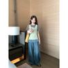 Camiseta de manga corta estilo retro chic americano de algodón puro para mujer en verano, estilo coreano, holgada, de marca de moda, de media manga, con estampado 3D