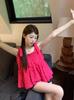 Camiseta rosa de manga corta con cuello en V para mujer, diseño de verano, top plisado con cintura dividida e irregular, 2025
