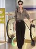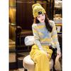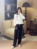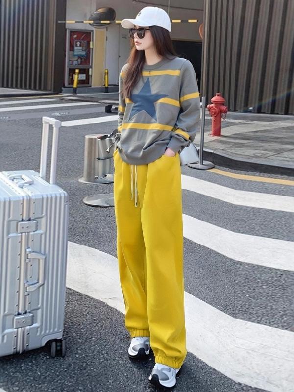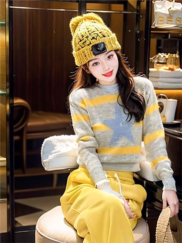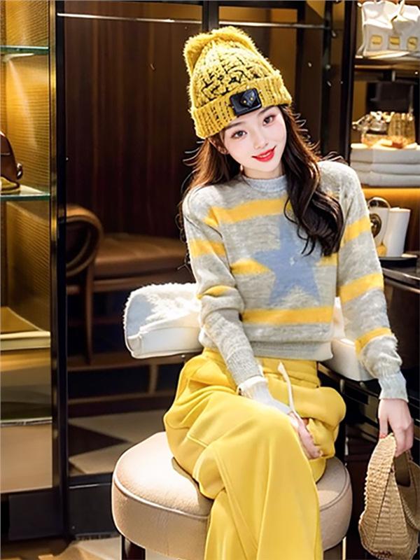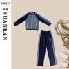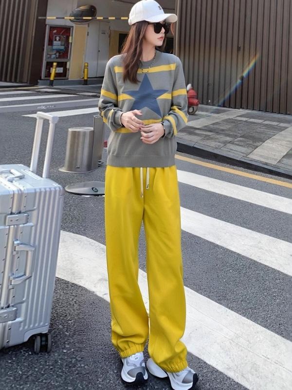 Otoño e invierno reductor de edad usar un conjunto de moda coreana casual frito calle sentido de alta gama suéter a rayas traje de pantalones deportivos mujer
