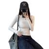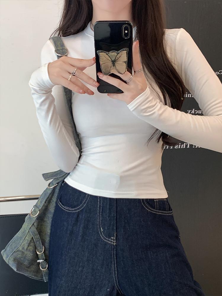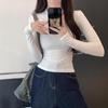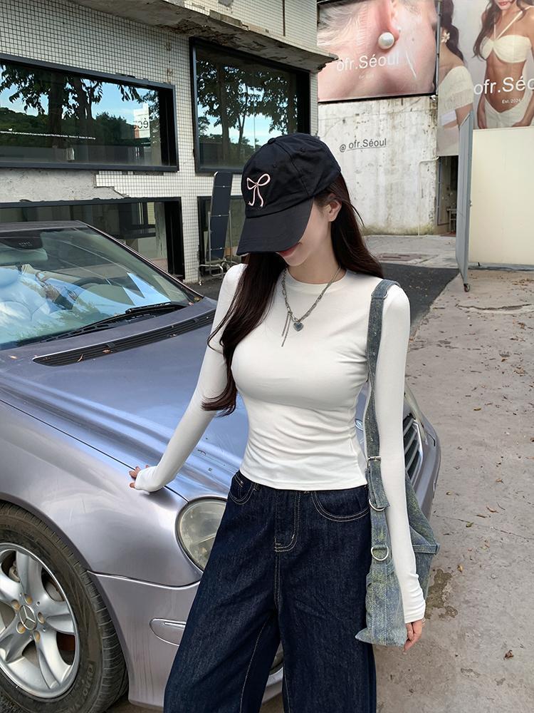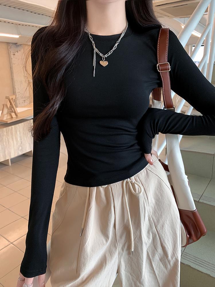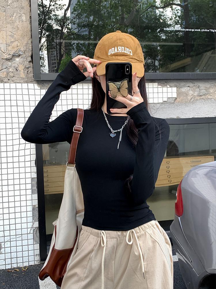 2024 nueva camiseta de manga larga con cintura para chica sexy para mujer, primavera y otoño, color sólido, corte ajustado, delgada, combinable con todo, camiseta básica blanca