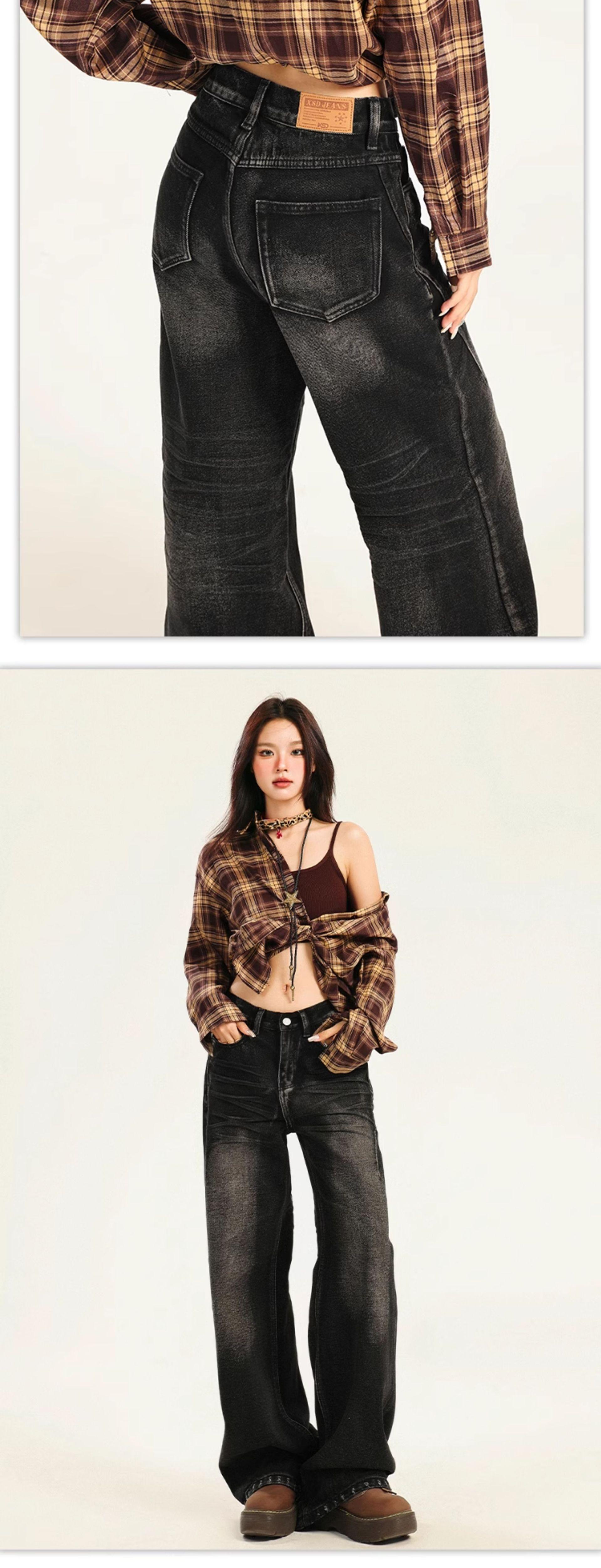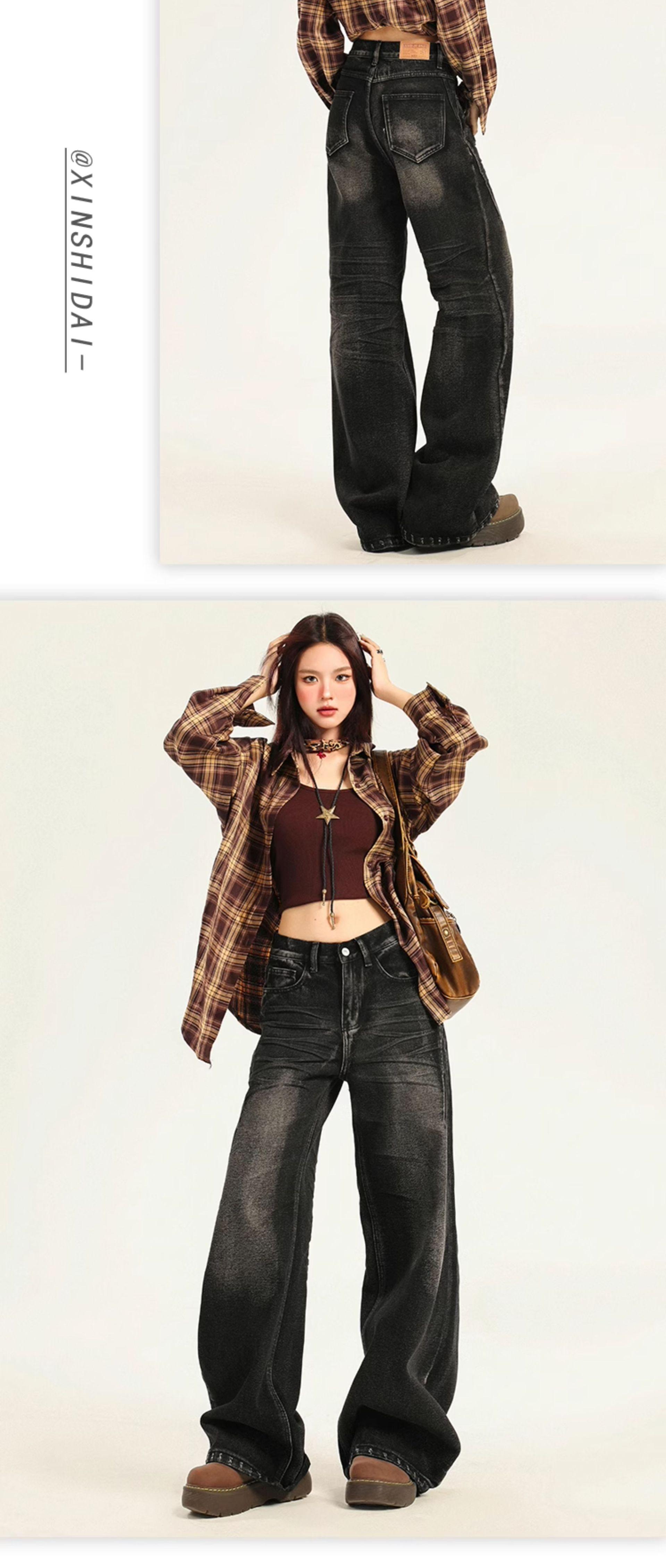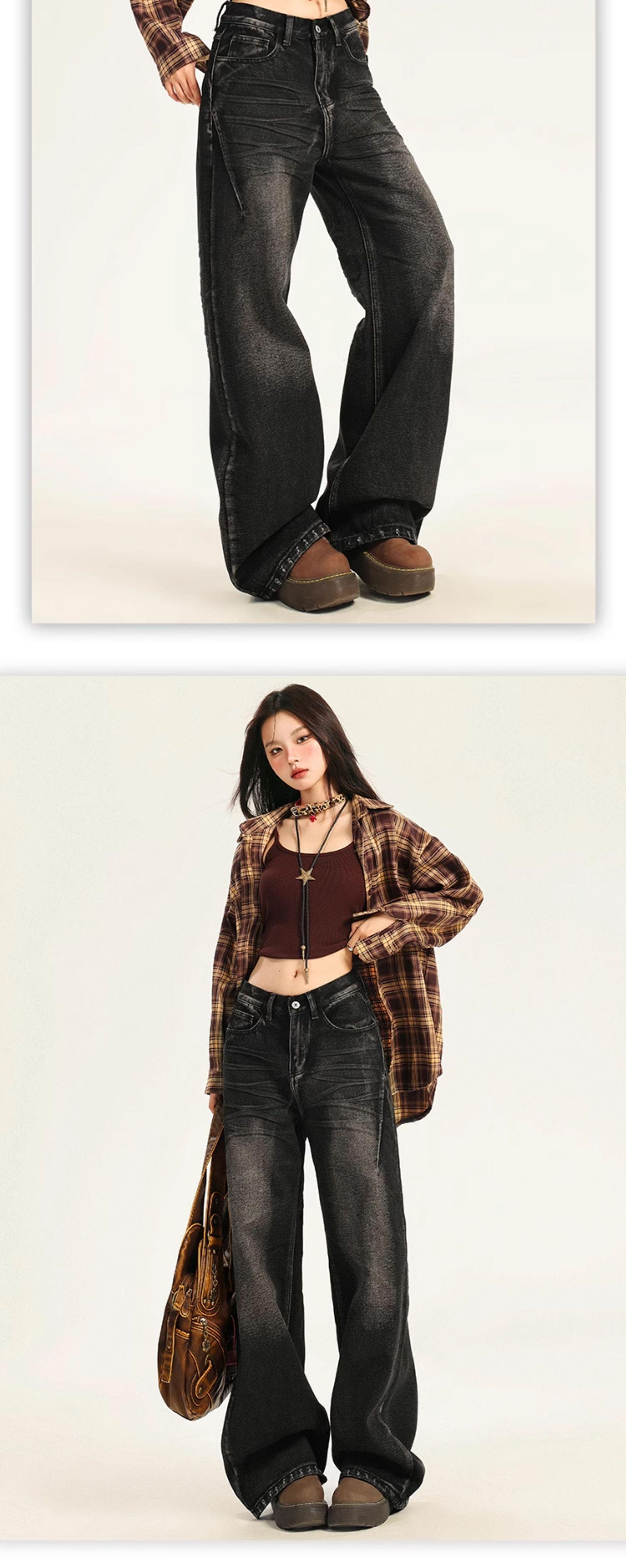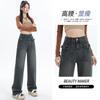 Jeans Americanos Retro Negros para Mujer 2025 Primavera y Verano Nuevo Cintura Alta Slim Pierna Recta Sueltos Pierna Ancha Pantalones Largos hasta el Piso
